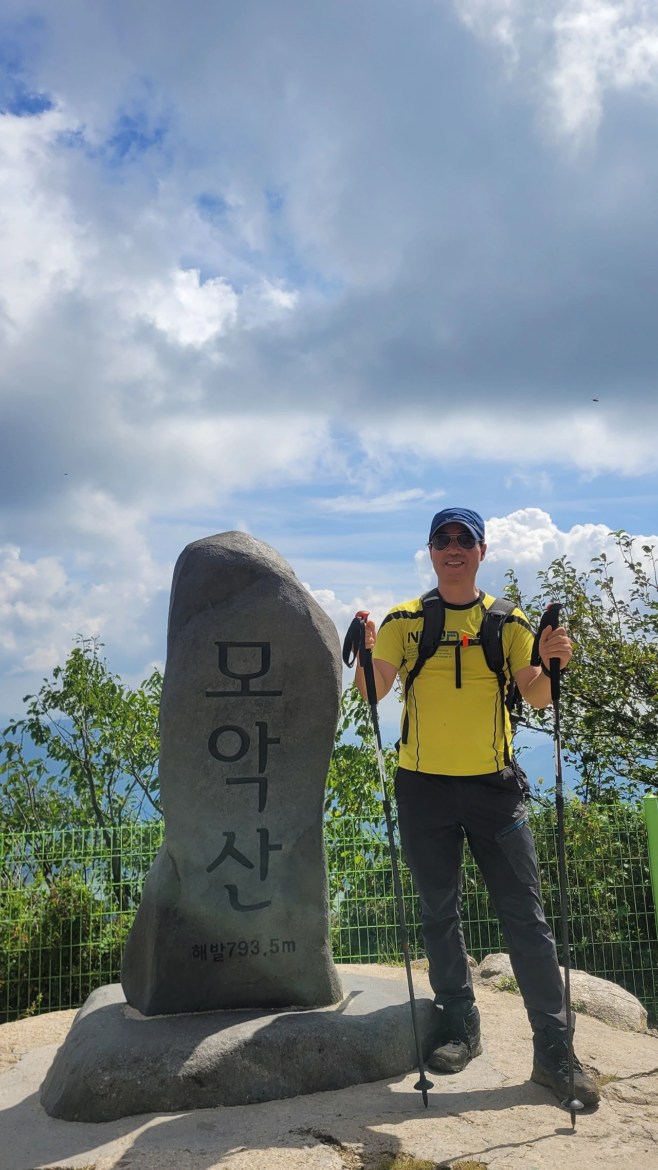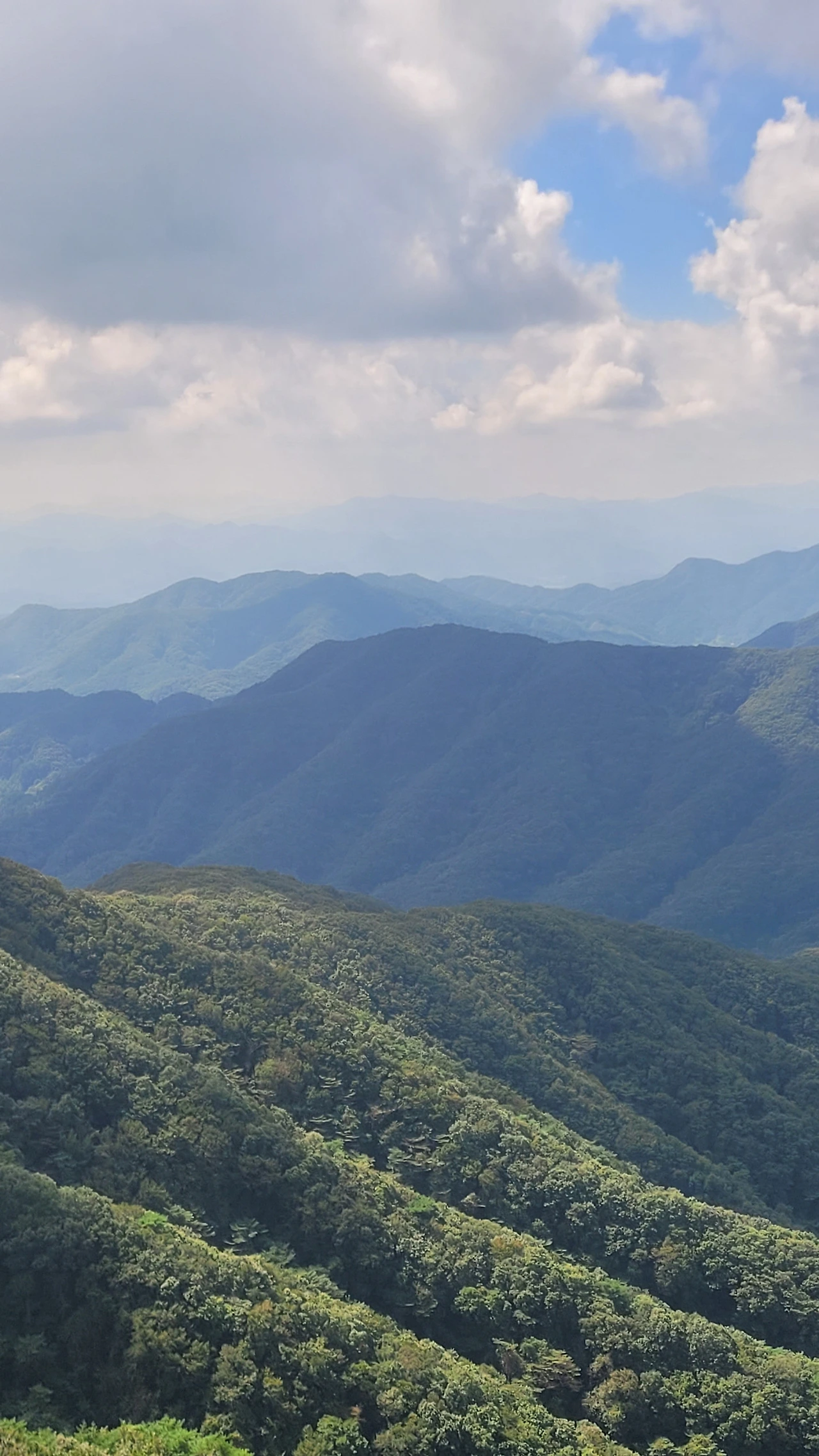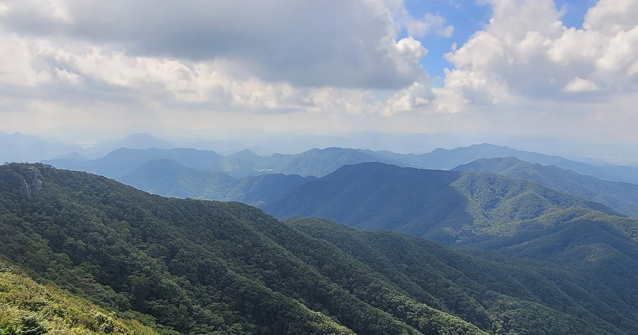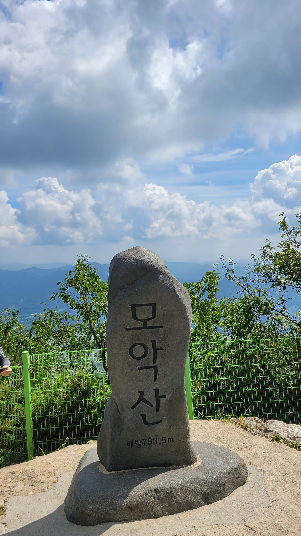 서울에서 버스가 출발할 때 날이 잔뜩 흐렸고 빗방울도 떨어졌다. 비가 오지 않을까 우려했는데 현지에 도착하니 날이 갰다. 그래도 구름이 많이 낀 하늘이라 해가 숨바꼭질을 하듯 간간이 그늘을 드리워 여전히 더운 중에도 산행이 아주 힘들지 않았다.