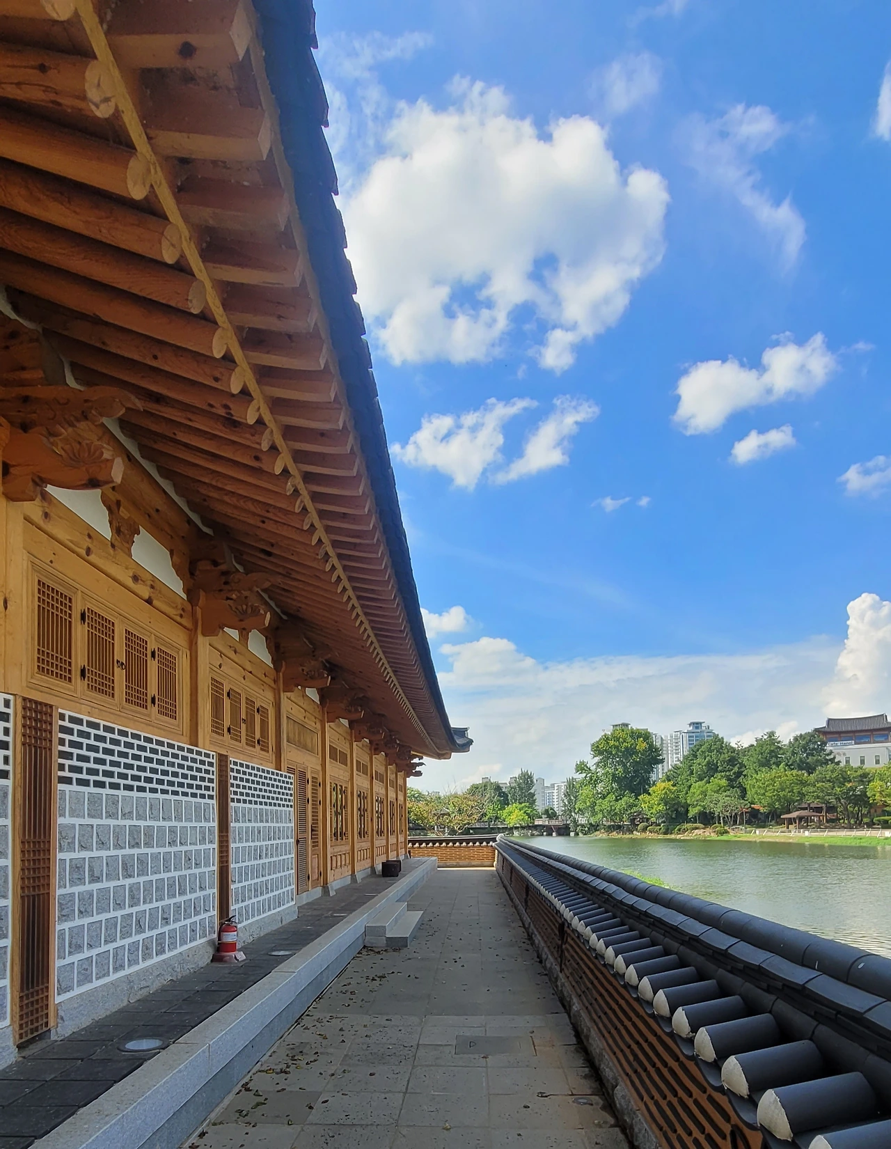 산을 내려와 고풍스러운 전주시내 한옥 식당 덕진헌에서 왕갈비탕을 먹었다. 한우육회와 도토리묵이 함께 나왔다. 남도의 맛은 말해서 뭐 하랴. 배부르게 먹고는 재빨리 근처의 덕진공원을 둘러보았다. 가는 여름이 찬란했다.