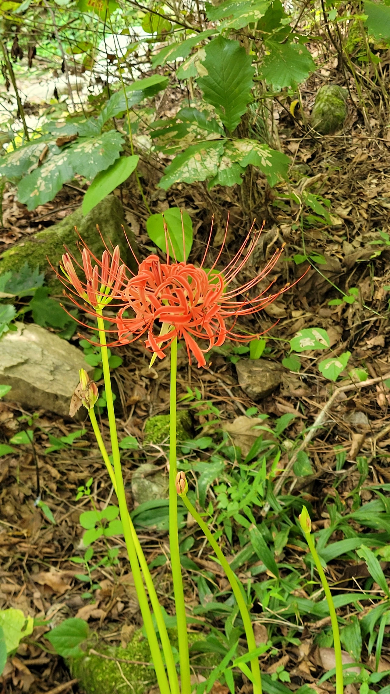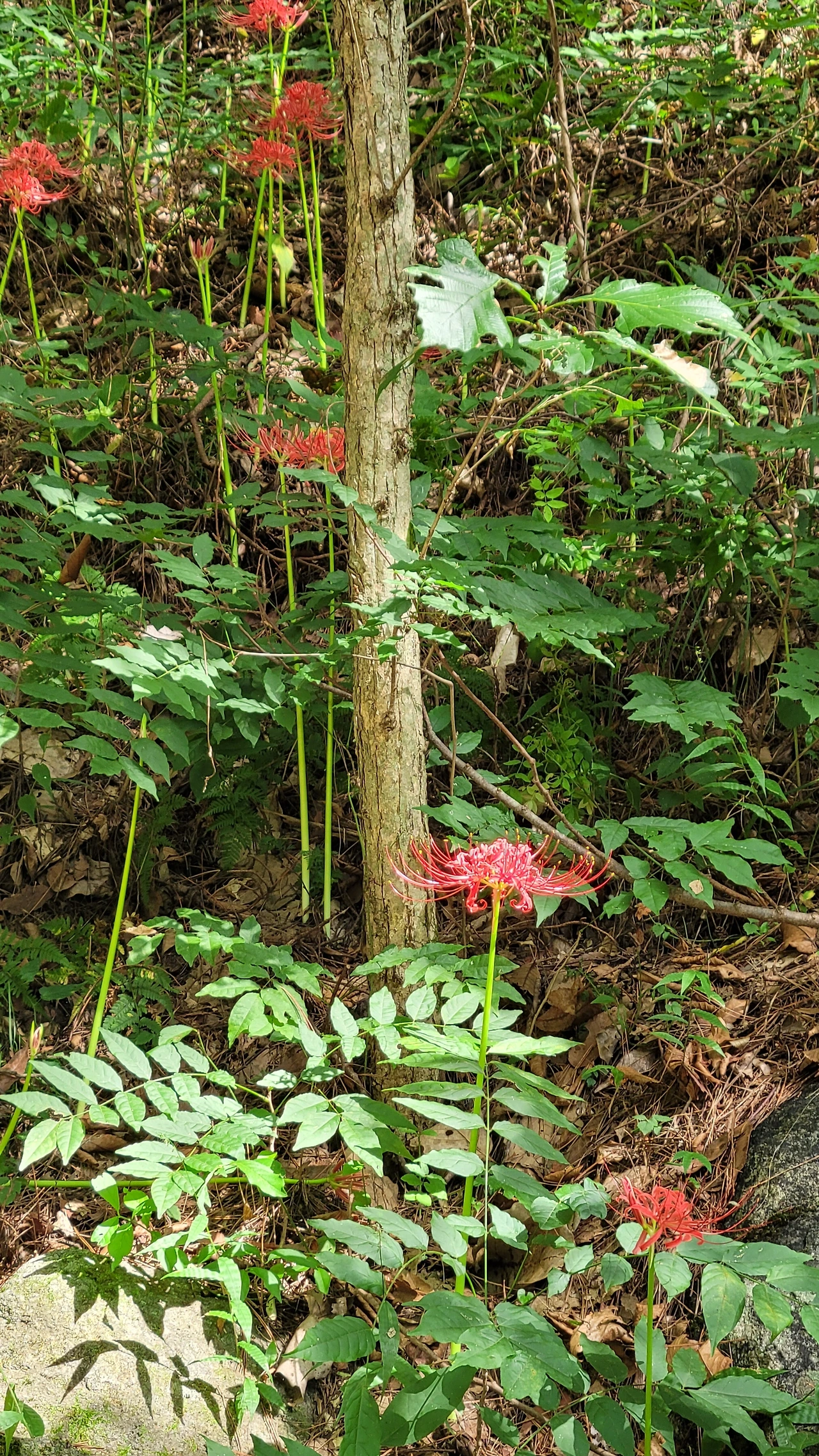 구월 중순이 되어 산을 오르는 숲에 유난히 기다란 붉은 꽃술을 가진 꽃무릇이 피었다. 이제 피기 시작했는지 아직은 꽃보다는 꽃봉오리를 단 가녀린 꽃대가 낯선 풍경이다. 꽃무릇은 꽃과 잎이 만날 수 없어 이어질 수 없는 안타까운 사랑의 상징으로 알려졌다. 화려해도 왠지 외로운 분위기가 풍긴다. 그래서 슬픔을 달래려 무리 지어 피는 것일까? 어울림은 참 아름다운 말이다. 잎이 없이 꽃대만 껑충한 꽃무릇이 함께 모여 온기를 서로 나누는 듯하다.