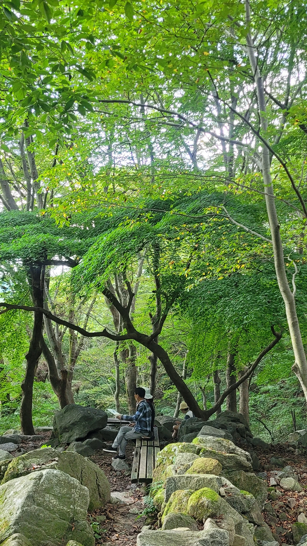 전북에 있는 모악산을 올랐다. 어머니가 아이를 안고 있는 형상의 바위로 이런 이름이 지어졌다고 한다. 어머니라는 이름에서 푸근함이 느껴진다. 꽤 가파른 오르막 길이 정상까지 이어져 쉬운 행로는 아니었다. 산세가 빼어난 산은 아니었고 아주 평범했다. 절경은 아니더라도 자연의 품은 언제나 좋다. 산 초입에 꽃무릇이 반기고 계곡물은 졸졸 흐르고 숲에는 푸른 초목들이 우거진 고즈넉한 길이었다. 도중에 대원사와 수왕사와 더불어 군데군데 정자와 벤치가 놓여있어 어머니 품처럼 편히 쉴 수 있는 곳이었다.