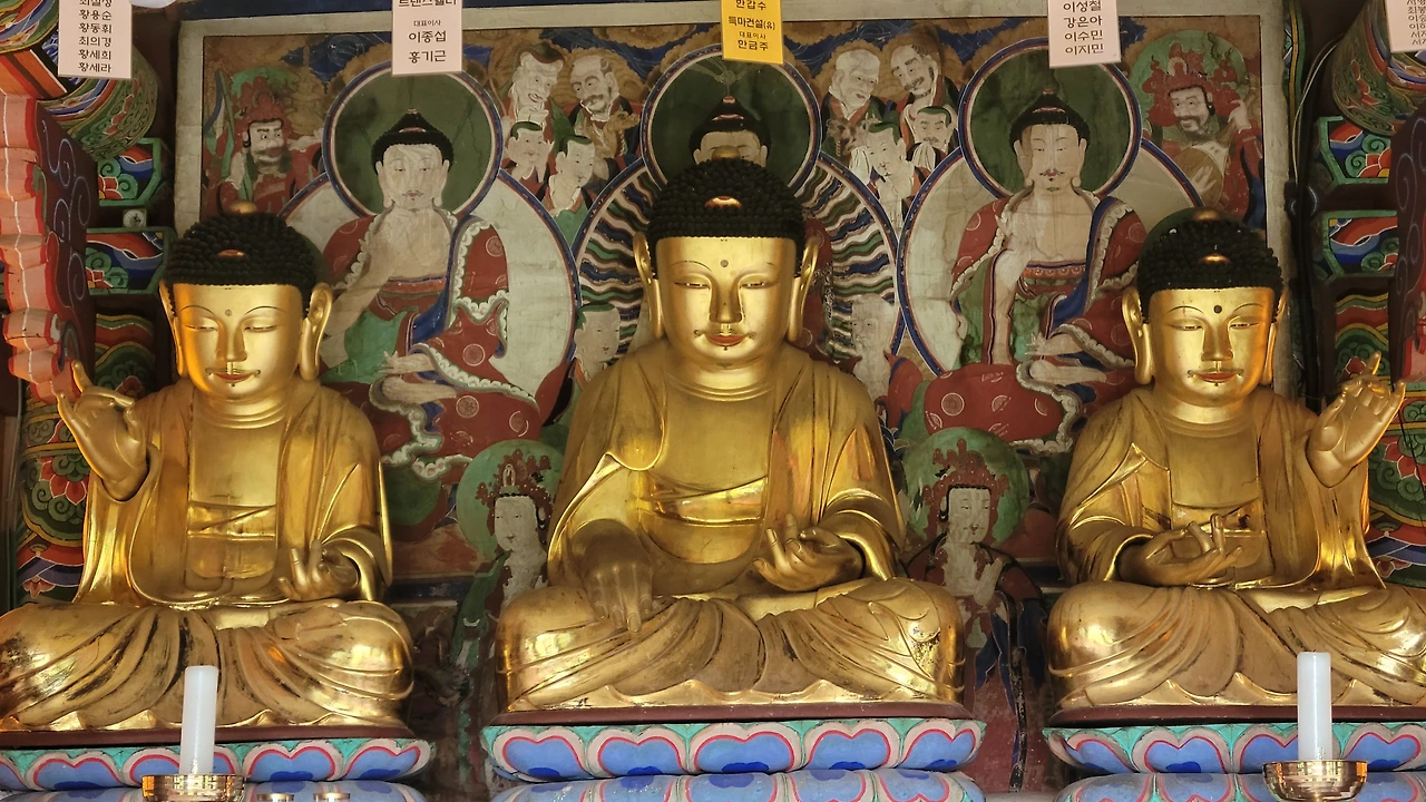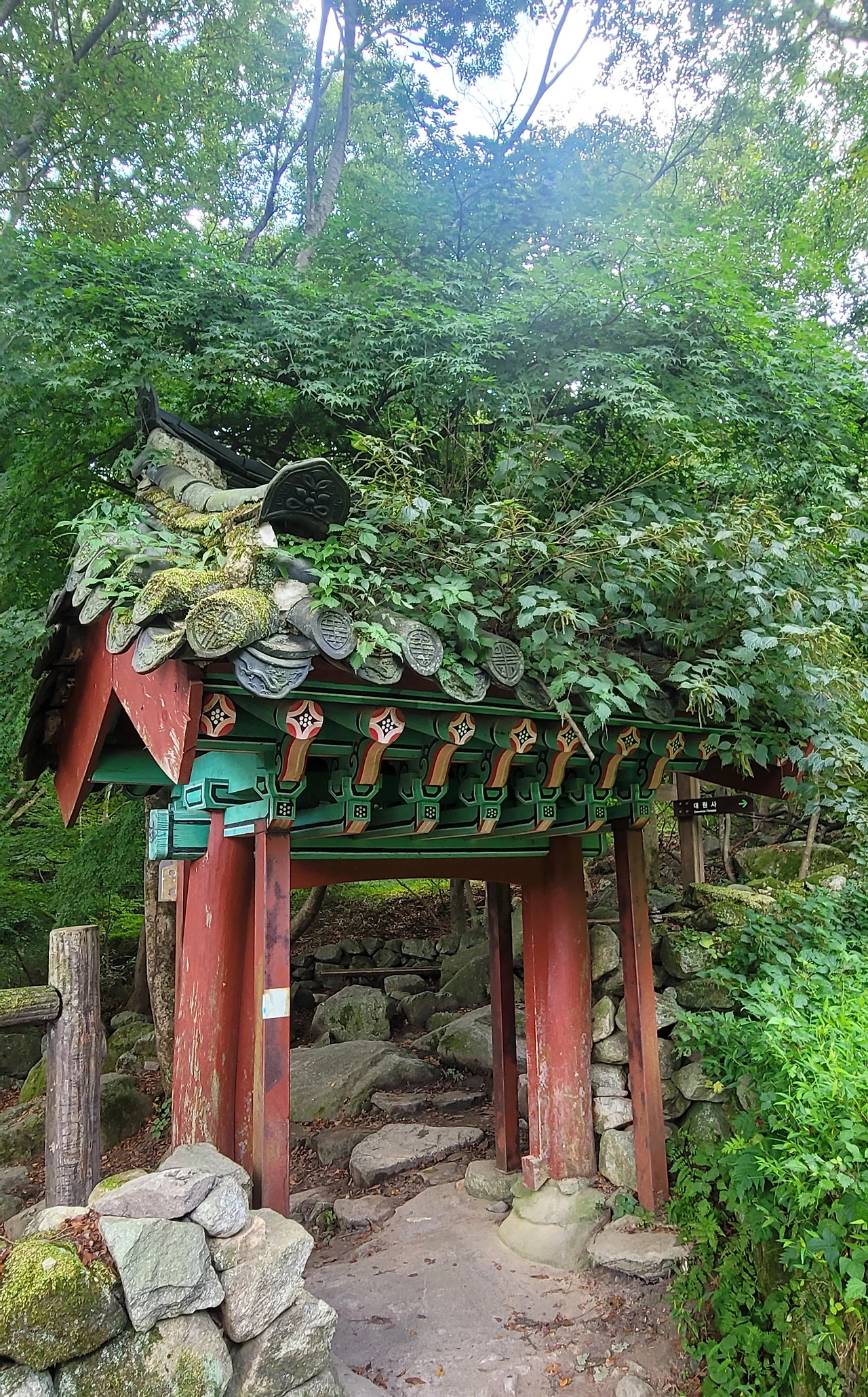 등산을 시작한 지 얼마 되지 않아 대원사가 보인다. 규모가 작은 사찰이다. 전각 창에 걸린 붉은 연등이 눈에 들어 사진에 담았다. 불자는 아니지만오래된 사찰과 유물에 관심이 많다. 본전에는 특이하게 삼세불이 안치되어 있다. 과거와 현재 미래를 상징하는 불상이다. 대개 불상은 지나온 시절만큼 사람들의 신앙대상이 되었을 것이다. 수많은 이들의 염원이 담겼다는 시각으로 보면 꽤 흥미롭다. 산길로 이어진 작은 문이 새로운 세상으로 나가는 출입구처럼 나를 부른다.