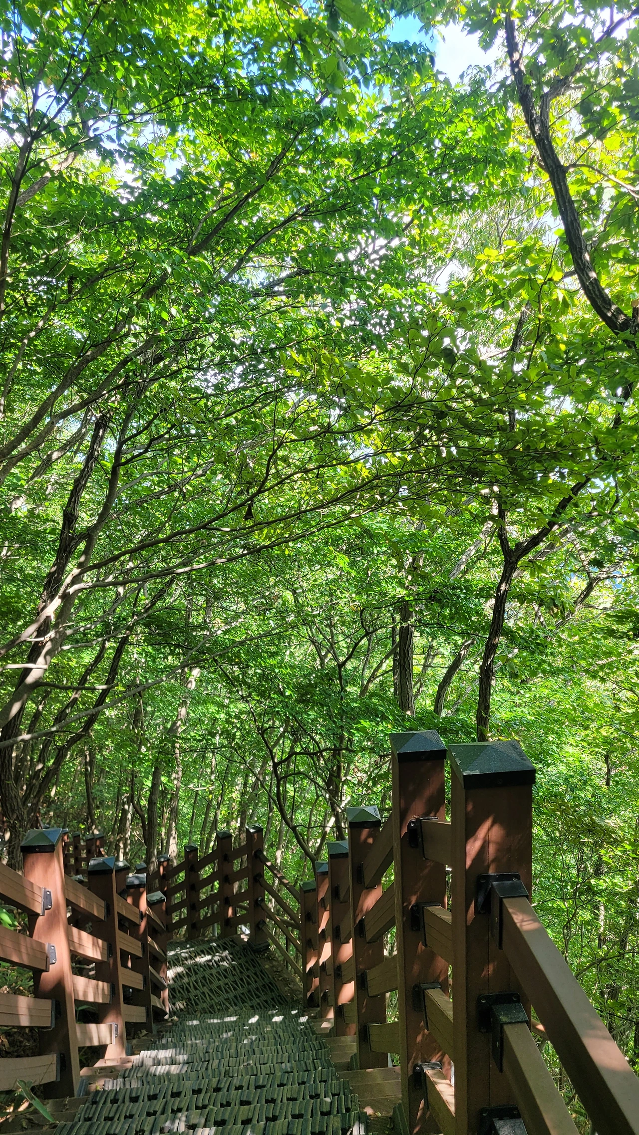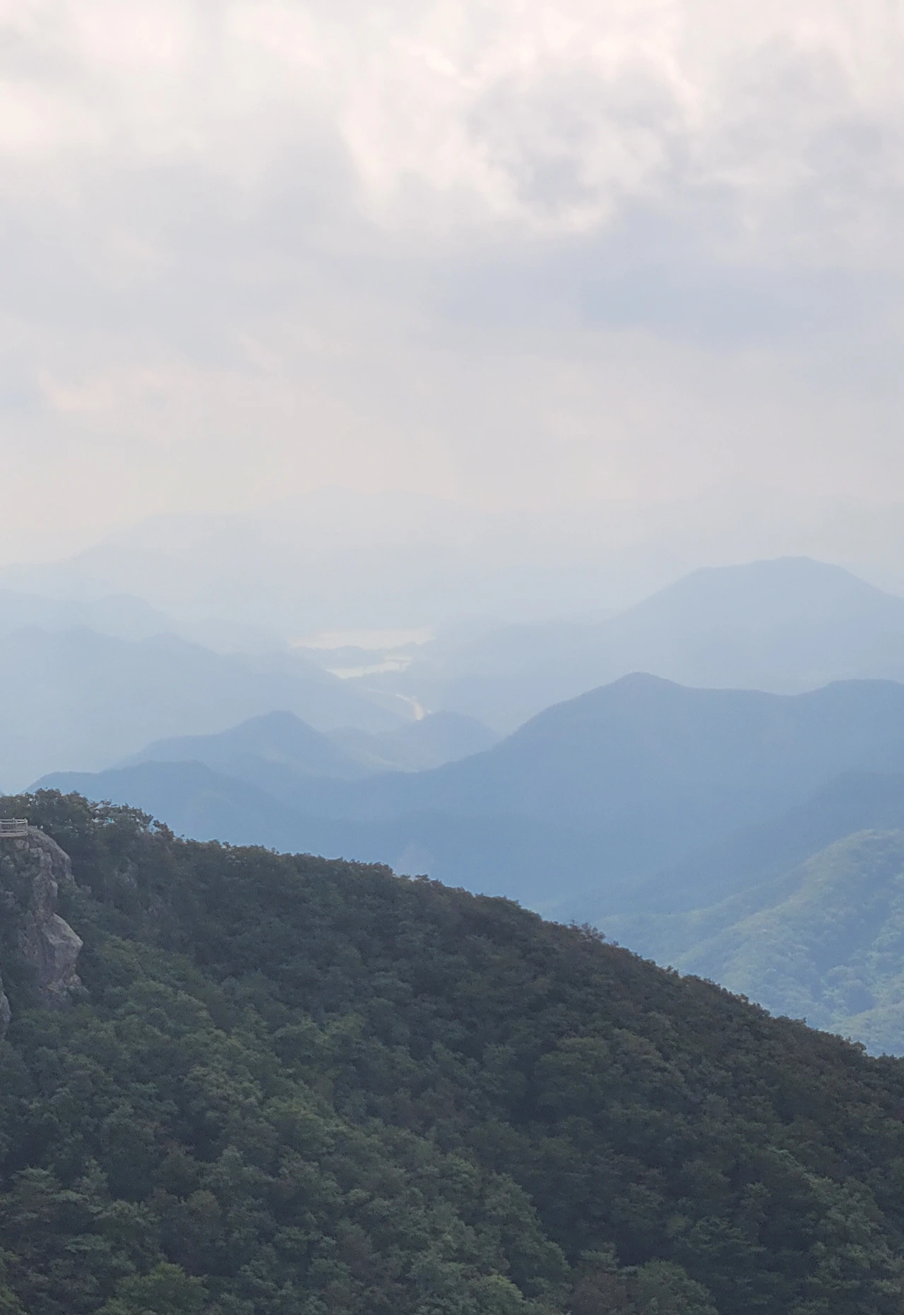 힘이 들어 땅만 보고 걷는다. 하지만 계속 그럴 수는 없다. 머리를 들어 제대로 가는지 가늠이 필요하다. 다리는 문제가 없어도 심장이 무리가 되니 쉬어야 한다. 마침 정자에 앉아 벌렁대는 심장을 진정시킨다. 땀도 많이 흘렸으니 물을 시원하게 들이켠다. 정상까지 다녀와야 하니 마음이 바쁘다. 오래 쉬지 못하고 다신 산을 오른다.