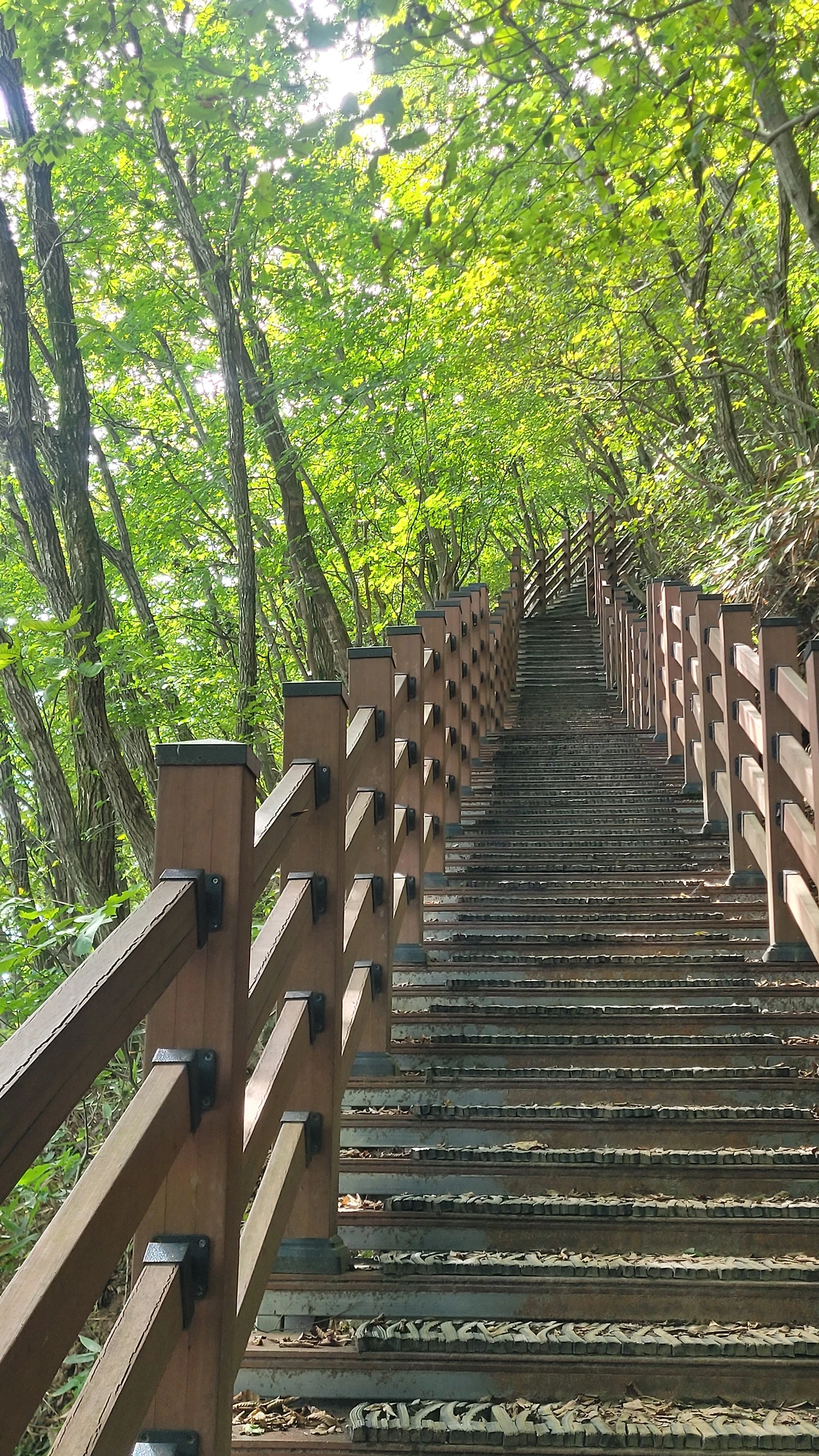 계단이 길게 이어졌다. 보이지 않는 계단 너머가 궁금하다. 우리 삶은 미지로 떠나는 여행이다. 사는 동안 누구나 반드시 떠나야 할 여행이다. 대부분 갈 바를 모르는 여정이지만 나는 기독교 신앙을 가졌기에 천국의 소망이 있다.갈 바를 알고 여행을 떠나는 것은 믿음의 힘이 아닐까?