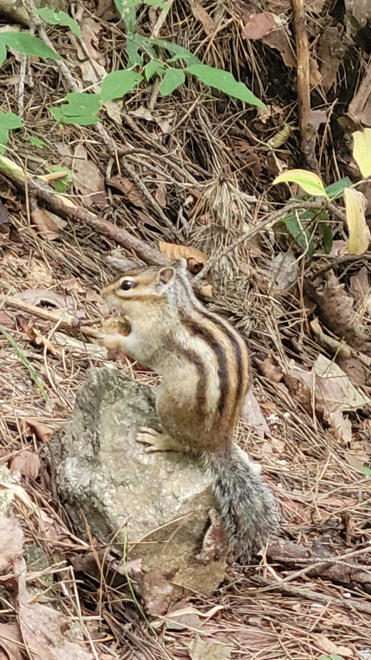 오르기는 힘들지만 내려가는 길은 수월하다. 목표를 이루고야 말겠다는 마음의 짐을 덜었기 때문이다. 미련을 두지 않고 흔연히 내려간다. 가는 길목에 다람쥐가 나타났다. 잠시 후 한 마리가 더 뛰쳐나와 다람쥐들의 달리기 경주가 벌어진다. 그 사이 도토리가 톡 하고 떨어진다. 달리기가 시들해졌는지 도토리 하나를 물고는 정신없이 먹고 있다. 야생의 살아있는 현장을 눈앞에서 누리는 감동을 맛본다.