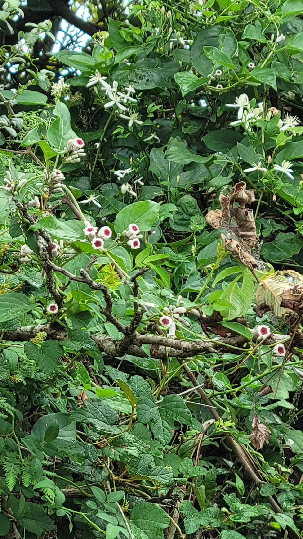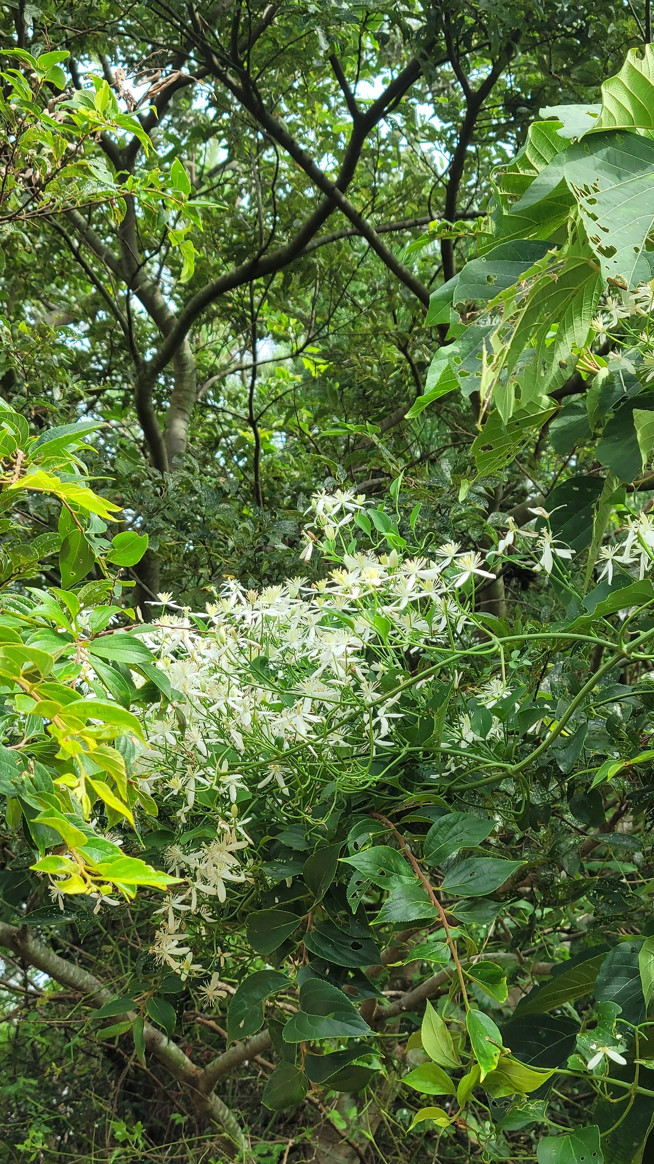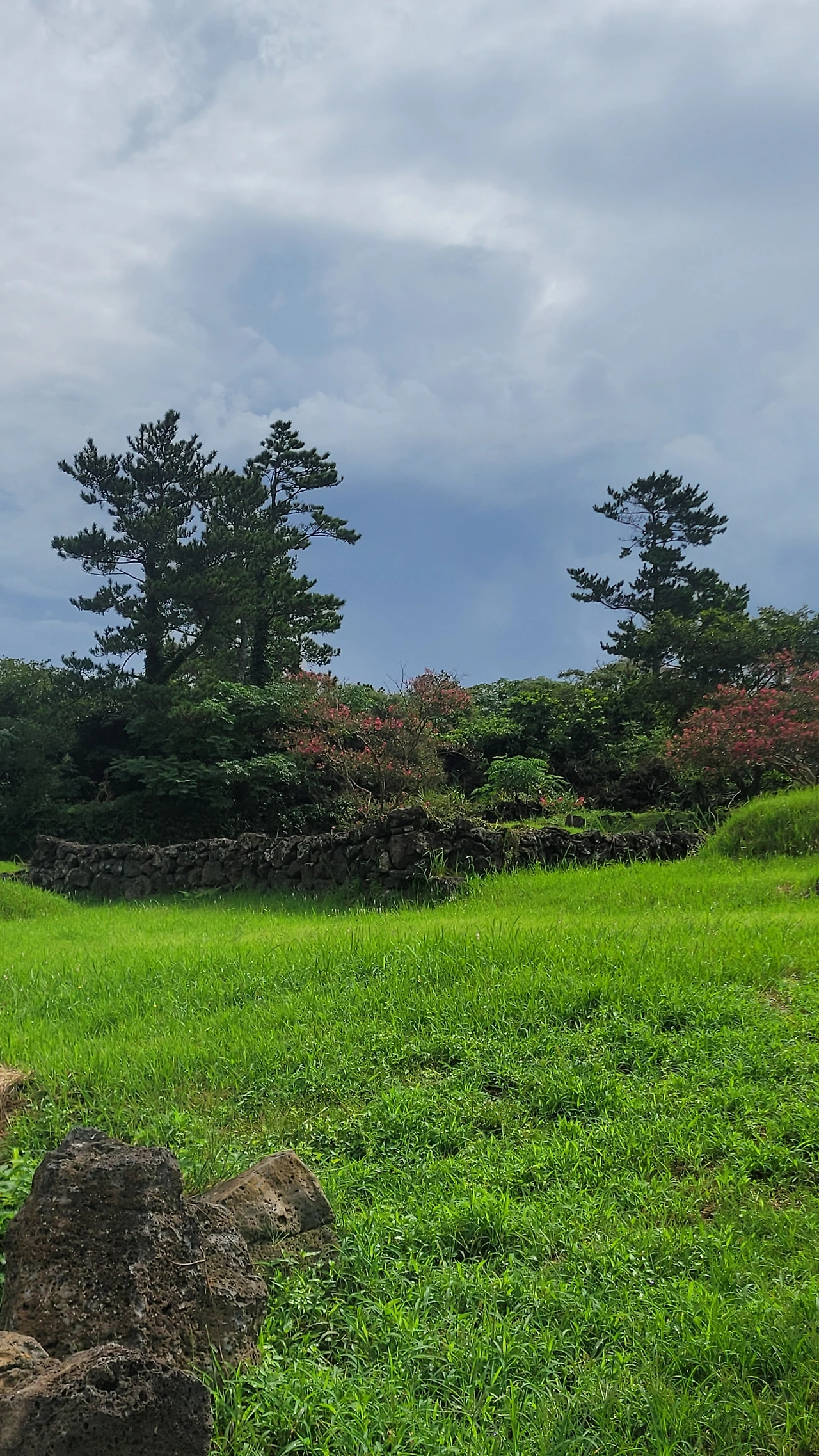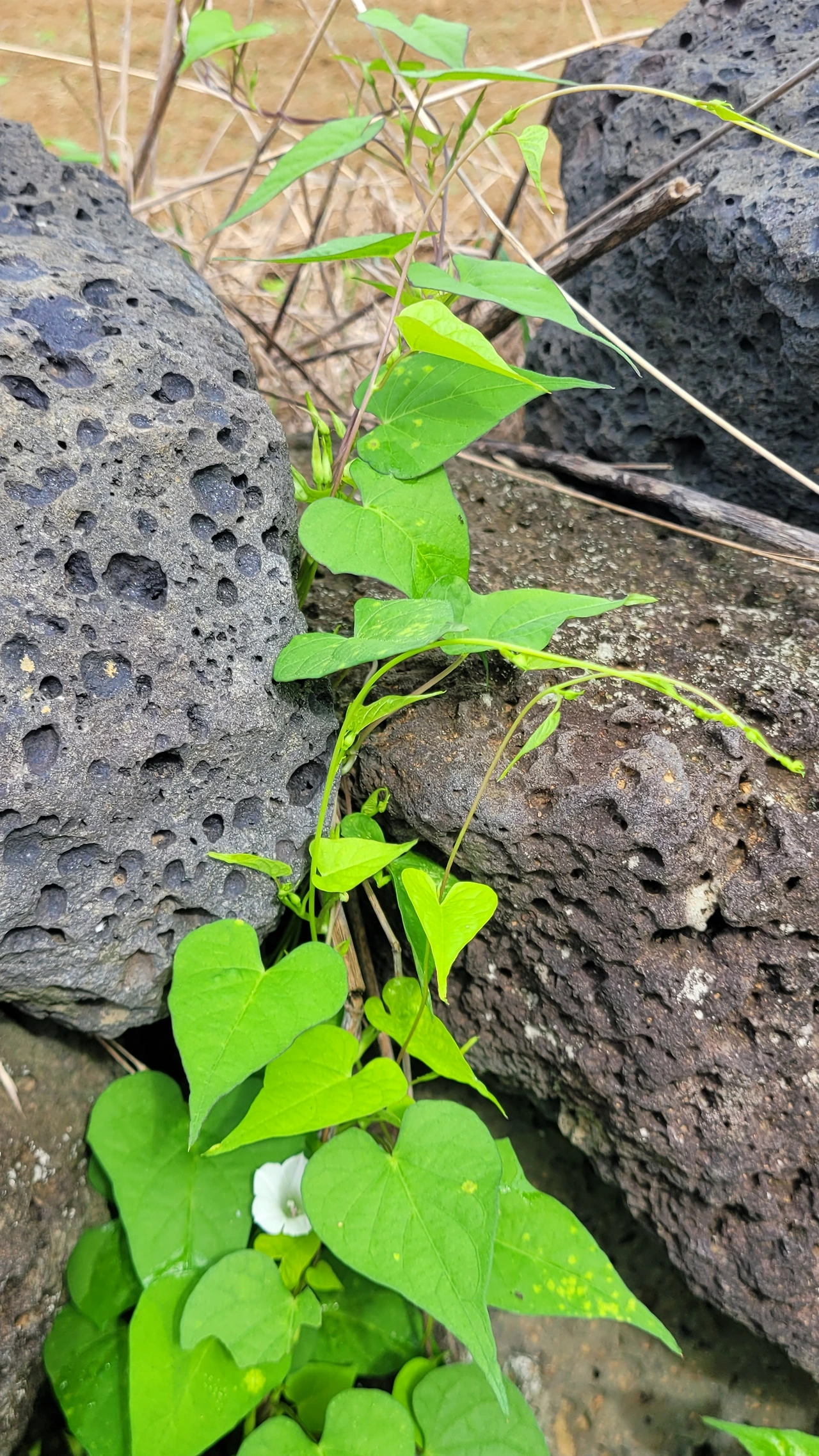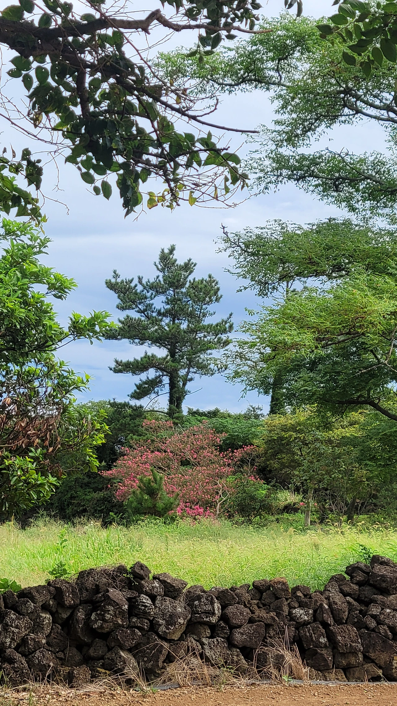 홀로 웃통을 벗은 채로 핸드폰을 들고 어슬렁어슬렁 산책을 나섰다. 인적이 드문 곳이라 다른 사람들의 시선을 전혀 생각할 필요가 없는 그야말로 자유로운 공간이다. 아침의 서늘한 기운이 피부에 닿는다. 첫눈에 달개비꽃이 눈에 들어온다. 신비롭고 매혹적인 남색 빛깔의 꽃이다. 들여다볼수록 매력이 있다. 이곳에 핀 꽃들은 꽃도 크고 색도 아주 진하다. 같은 식물이라도 섬에 자라는 것들은 뭍에 있는 것과는 차이가 있다. 으아리도 보인다. 뭍에서는 보기 힘든 꽃이다. 제주도를 돌아다니다 보니 길가에 으아리꽃이 무리 지어 핀 모습이 많이 눈에 띈다. 순백의 귀여운 꽃들이 다발을 이루어 푸른 숲을 환하게 밝힌다. 꽃에 관심이 많다 보니 풀숲에 자꾸 눈이 간다. 찬찬히 들여다보니 계요등도 피었다. 붉은 점이 선명한 종모양의 꽃이 귀엽다. 돌담사이로는 나팔꽃이 피었다. 흔하지 않은 흰색 나팔꽃이다. 꽃구경을 하며 조금 더 걸어가니 배롱나무 꽃이 피었다. 돌담사이로 강아지풀이 그득하고 주위에 나무들이 자라나 한 폭의 그림을 선사한다. 꽃구경에 시간 가는 줄을 모른다.