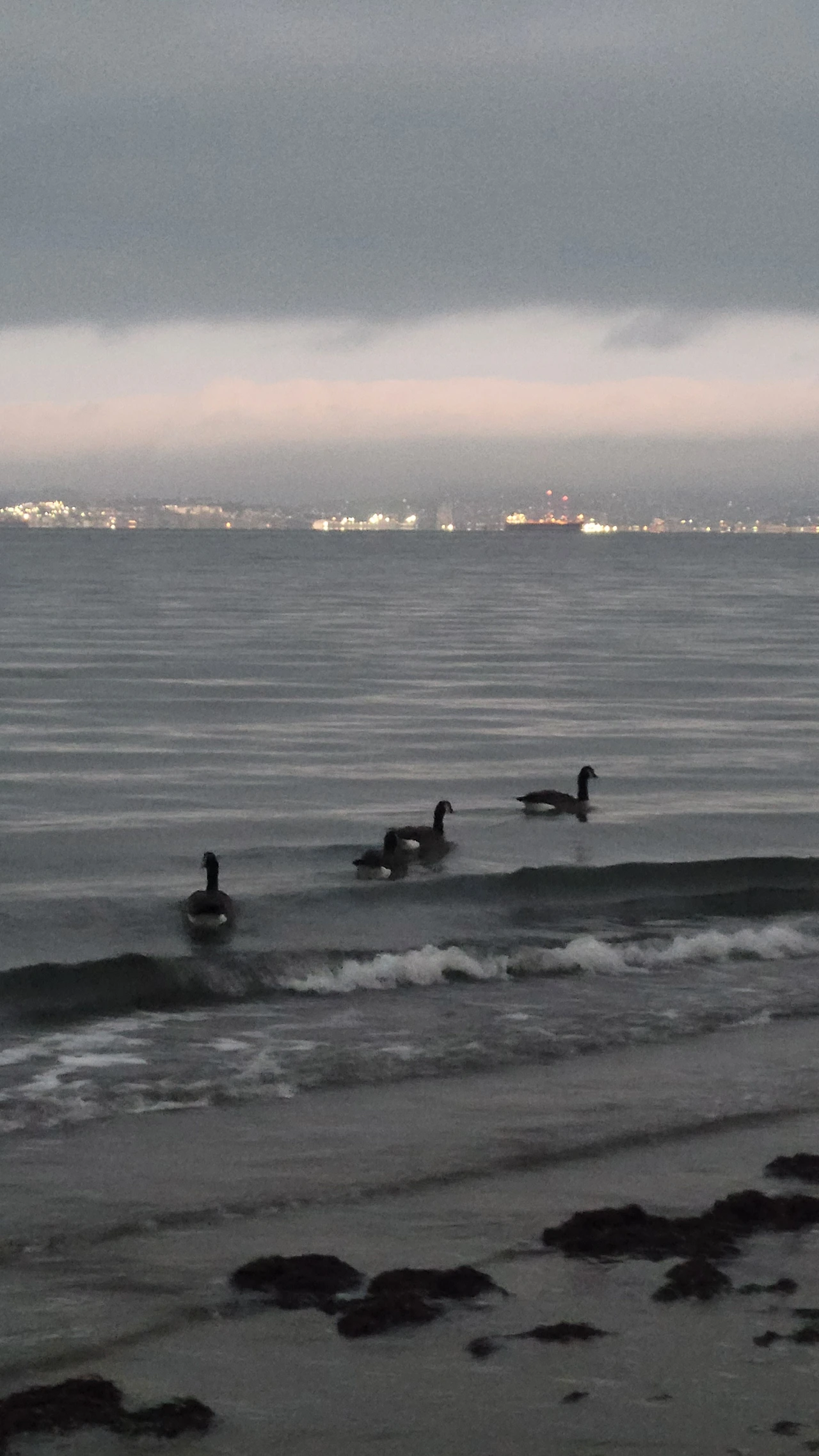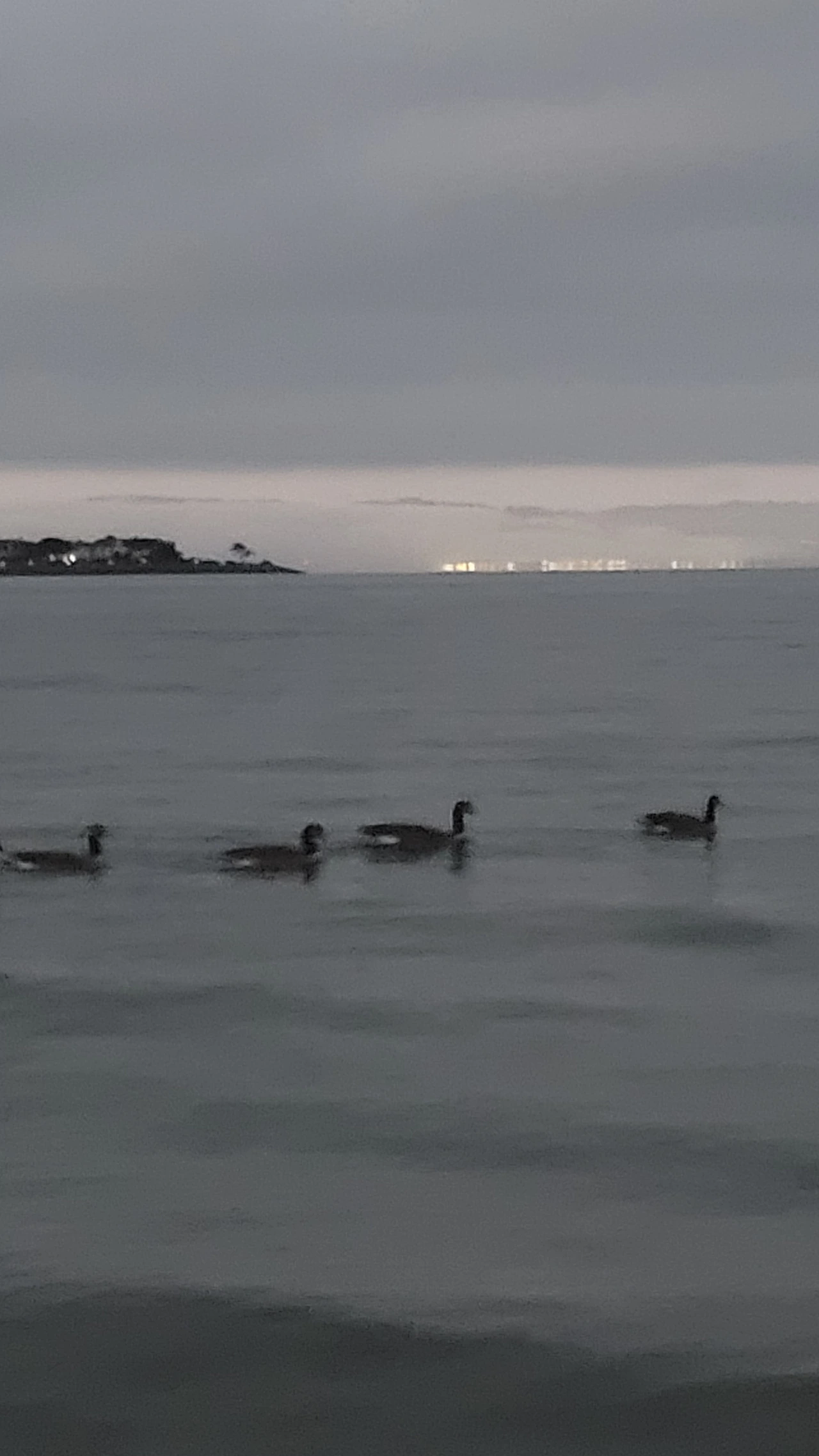 해변을 맨발로 걷는다. 해변의 모래 입자가 곱다. 부드러운 모래의 차가운 촉감이 몸을 깨운다. 물이 뭍으로 들어와 몸을 푼 바다는 잔잔하다. 어둠을 헤치며 캐나다 거위 서 너 마리가 물을 지친다. 평온한 풍경에 마음도 편안해진다. 여전히 반짝이는 건물 불빛이 아직은 아침이 밝지 않았다고 나직이 읊조리는 것 같다.