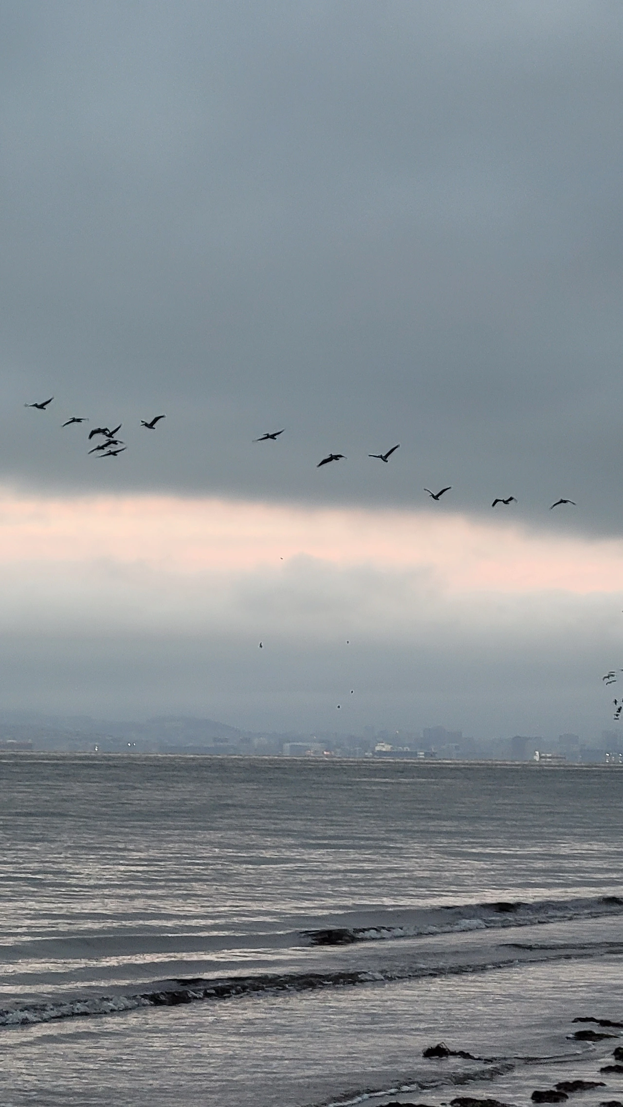 무리를 지어 하늘을 나는 새들이 꼬리를 물고 지나간다. 생각보다 많은 조류들이 해변 주위에 서식하고 있는 것 같다. 펠리컨, 거위, 갈매기, 기러기들이다. 작게는 다섯 마리, 많게는 십 수 마리가 떼를 지어 난다. 야생이 살아있는 현장이다. 자주 볼 수 없는 생생한 광경에 눈을 뗄 수가 없다. 대도심 곁인데도 이렇게 많은 새들이 오가는 것이 경이롭다. 그만큼 자연이 살아있고 건강하다는 방증이다.부러운 마음이 인다.