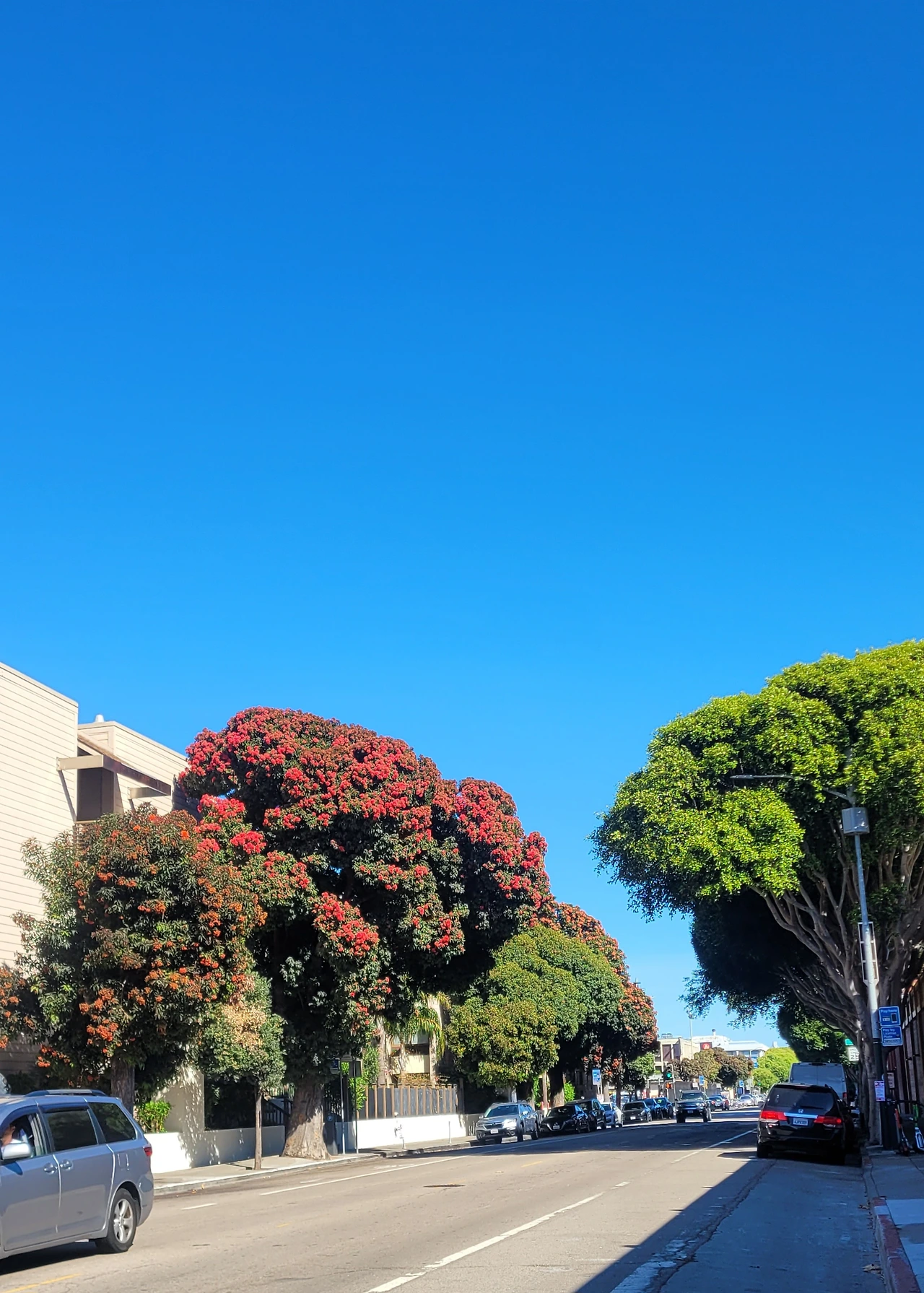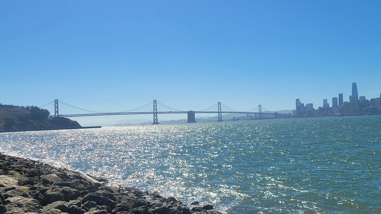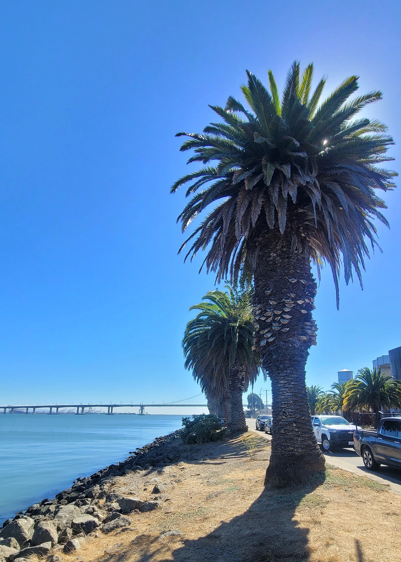 첫 장소는 샌프란시스코와 오클랜드 사이에 있는 작은 섬인 트레져 아일랜드다. Bay Bridge를 건너와 섬에서 바라본 대교가 장관이다. 근처 레스토랑에서 파티를 여는 사람들의 밝은 모습이 전형적인 미국의 풍경같 다. 옛이야기를 한 아름 담고 있는 듯한 마당의 큰 닻이 인상적이다. 바닷가에는 군함이 떠 있고 멀리 금문교도 보인다. 아이들이 노는 모습이 평화롭다. 도심에는 야자수가 가로수로 많이 심어졌다. 우람한 야자수가 늘어져 있는 풍경은 언제나 봐도 남국의 향기를 풍긴다. 바닷빛을 닮은 꽃이 눈길을 끈다. California blue blossom이다. 아이리스도 곱다.