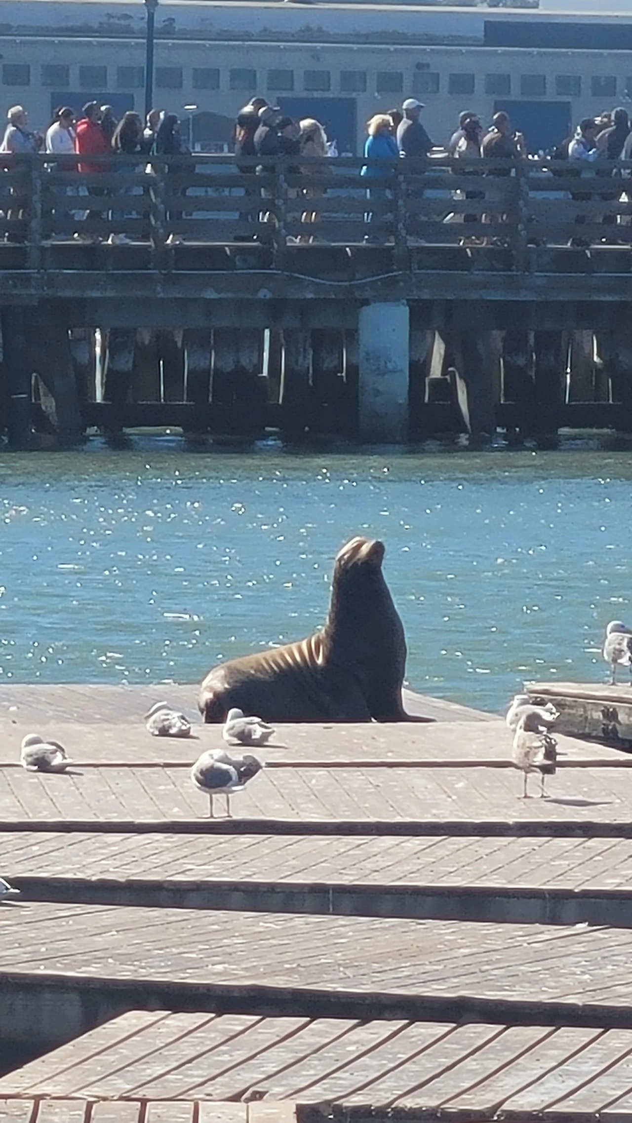 부두구경을 하면서 바다사자를 보러 갔다. 길거리에는 스파이더맨 복장을 한 버스킹이 한창이었다. 유머 스러 한 몸짓에 행인들이 발길을 멈춘다. 아쉽게도 바다사자는 한 마리만 보였고 두세 마리가 물속에서 잠깐씩 나타났다. 많을 때는 수 십 마리가 모여있다고 한다. 바다사자는 사람들을 개의치 않고 느긋하게 퍼질러 있다. 굉장히 클 줄 알았는데 막상 보니 달랐다.