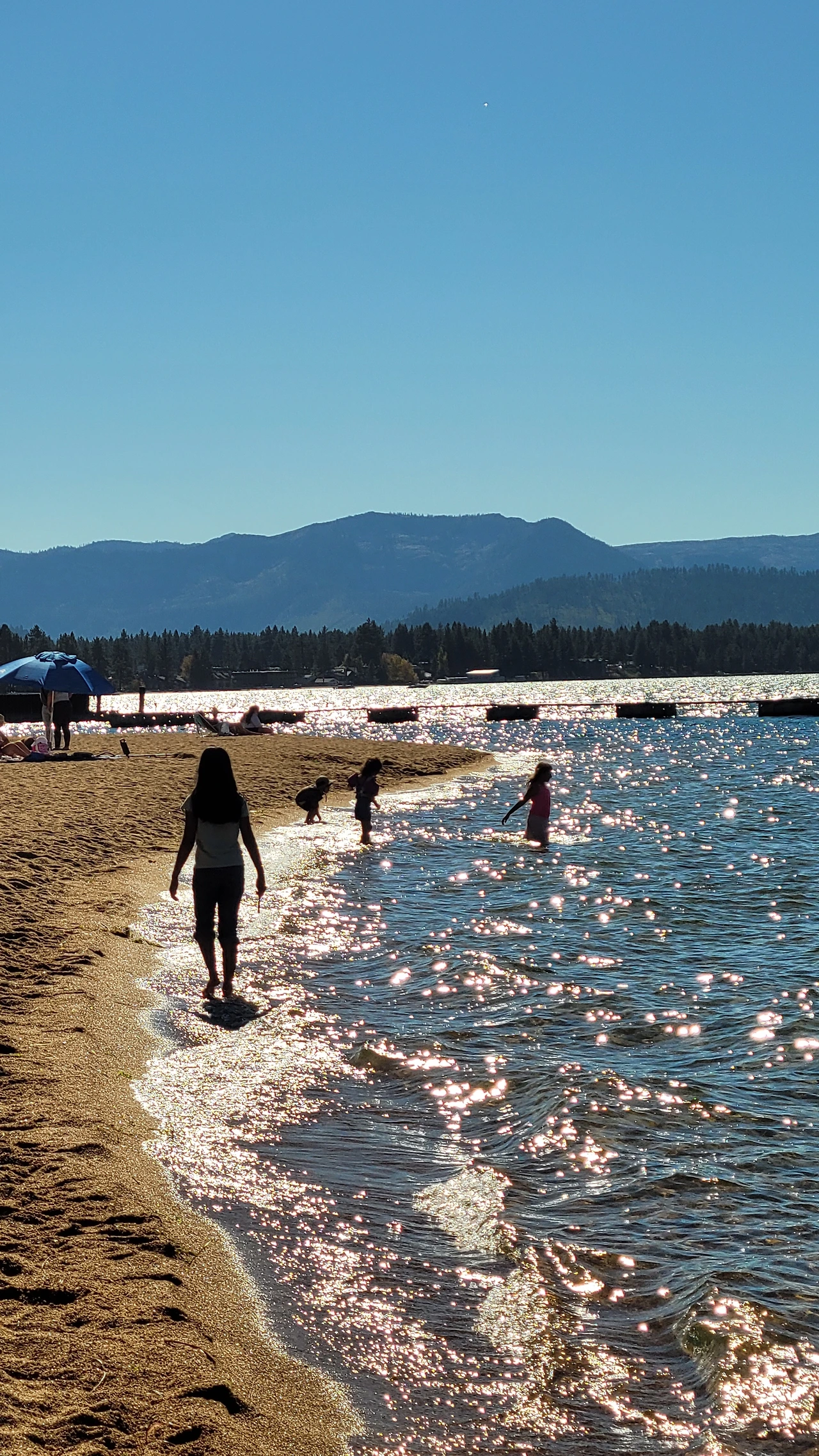 고도가 높아서인지 바람도 차다. 모두 두꺼운 옷을 껴입었다. 수온이 차가운데도 이곳 사람들은 개의치 않고 수영을 즐긴다. 수영복 차림과 두꺼운 옷을 입고 있는 이들의 대비가 묘하다.아이들도 신나게 논다. 개도 사람처럼 물속을 첨벙첨벙 뛰어다닌다. 패들보트가 물 위를 노닌다. 윈드서핑을 즐기는 이도 있다. 미국인들에게는 명소로 각광받는 장소 같다.