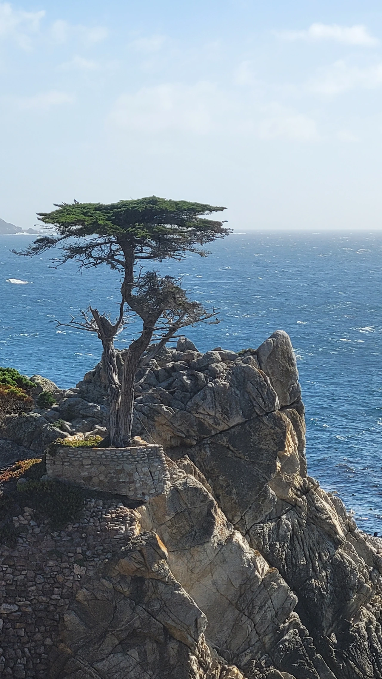 페블비치의 로고로도 잘 알려진 이 나무는 250년 이상의 수령을 지닌 세계 최고로 유명한 사이프러스 나무다. 바위 위에 우뚝 서서 태평양을 바라보는 자세가 의연하다. 고고한 나무가 독보적인 자태를 뽐낸다.