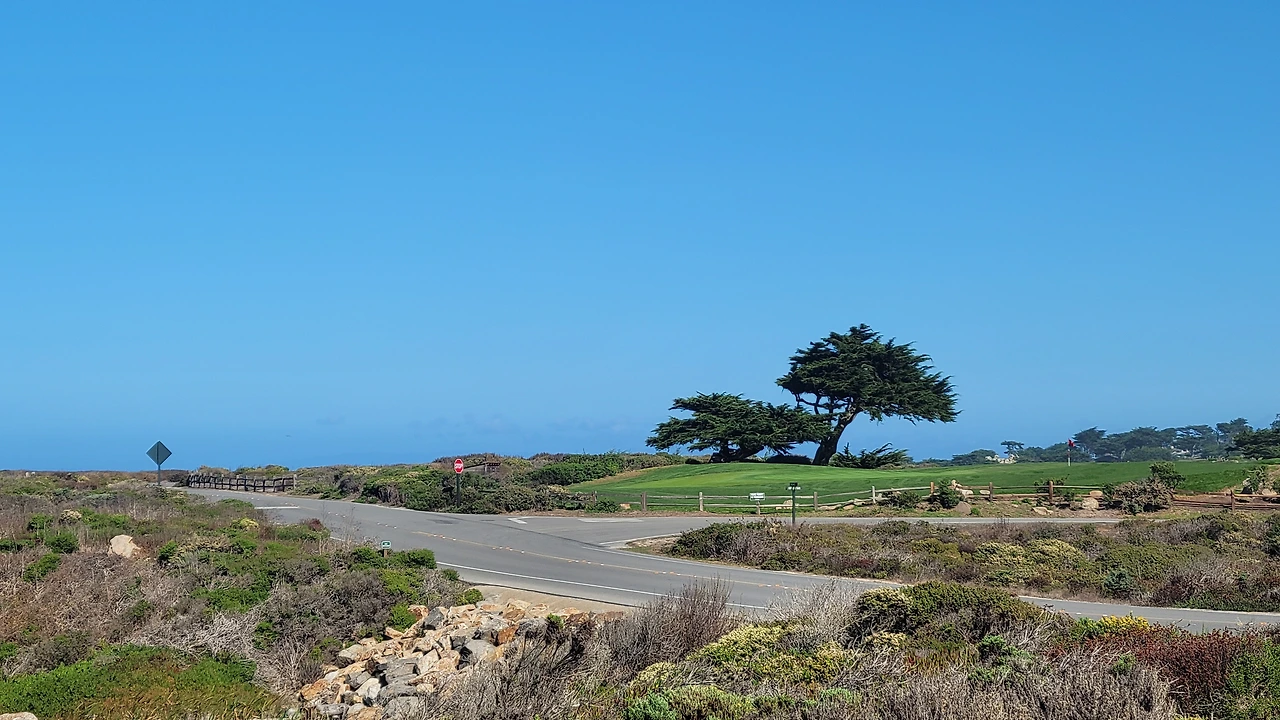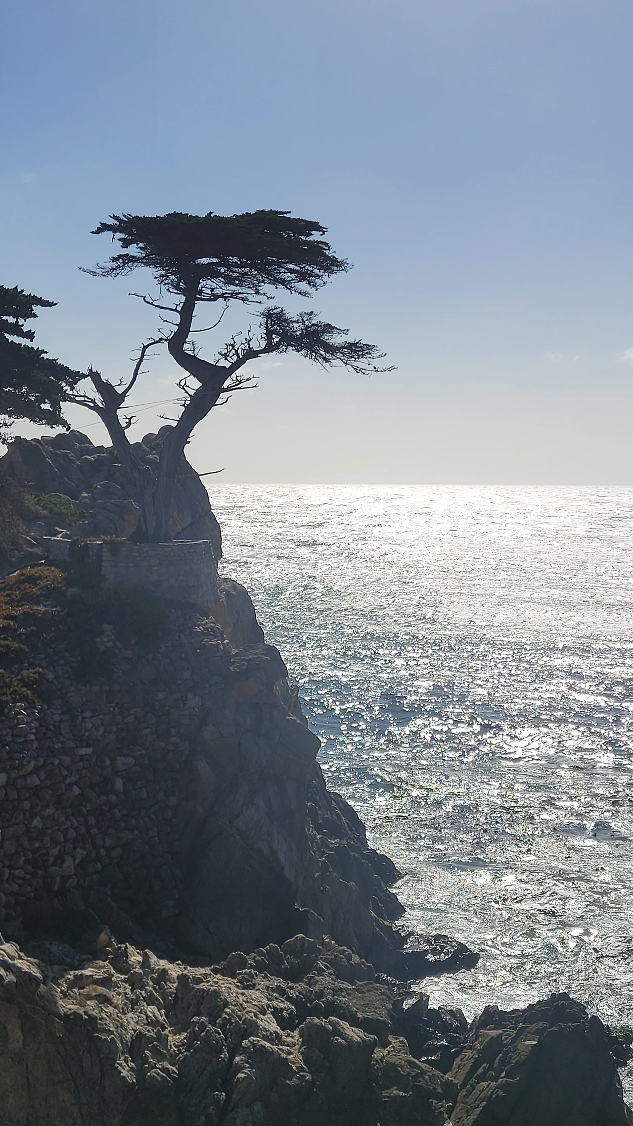페블비치 상징인 The Lone Cypress 나무가 있는 해변이다. 윤슬이 빛나는 바다는 광휘의 빛으로 넘친다.
