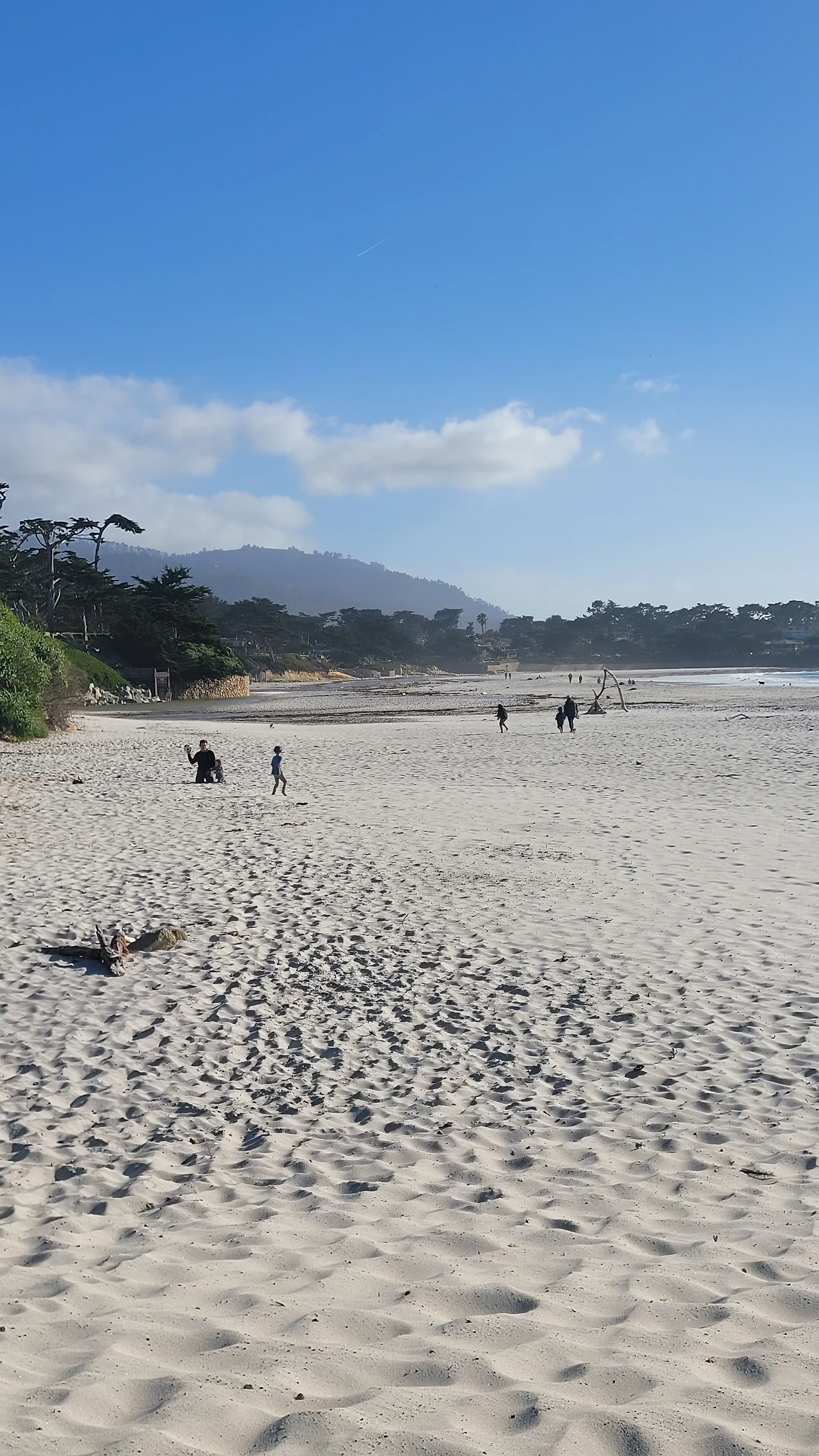 이곳의 마지막 해변 카멜비치다. 고운 하얀 모래가 깔린 백사장이 드넓다. 해변을 내려가는 길부터 깨끗하고 하얀 모래길이다. 아름다운 해변을 계속해서 봐서 질릴 법도 하건만 페블비치는 여전히 마음을 움직인다. 누이들은 지친 몸을 이끌고 내러 가 새 힘을 얻은 듯 감탄 연발이다.
