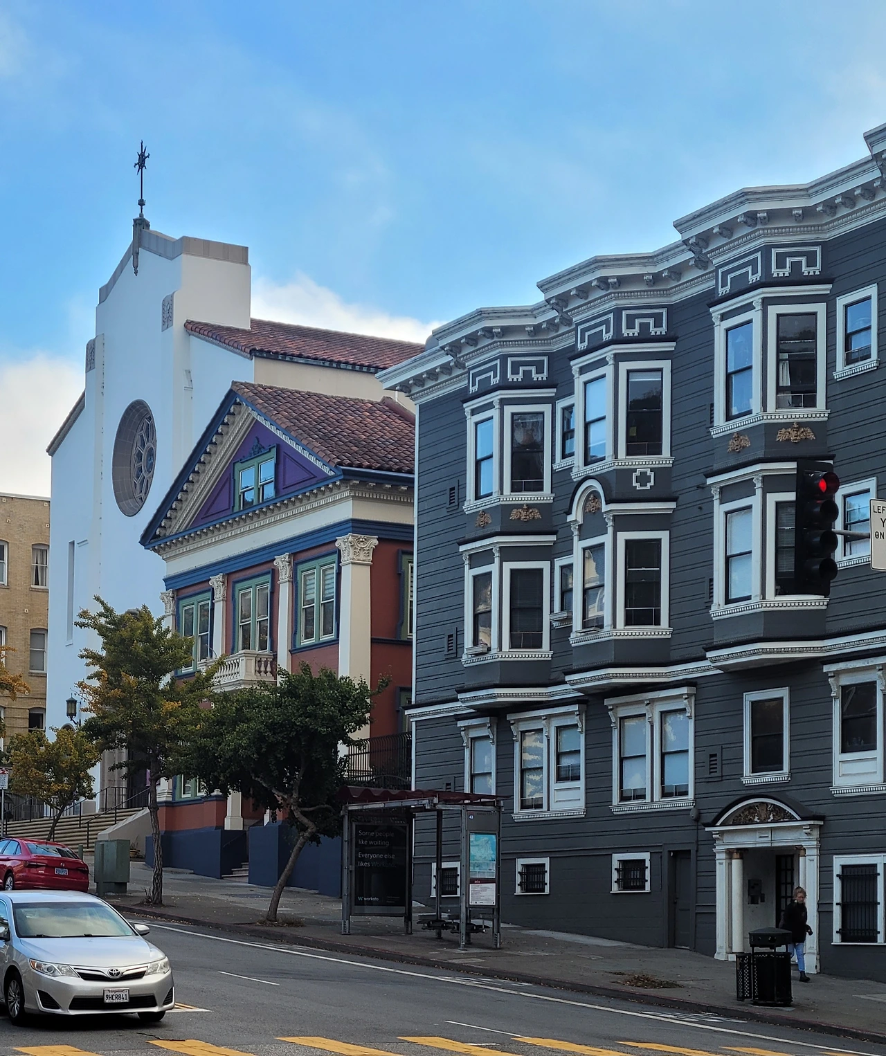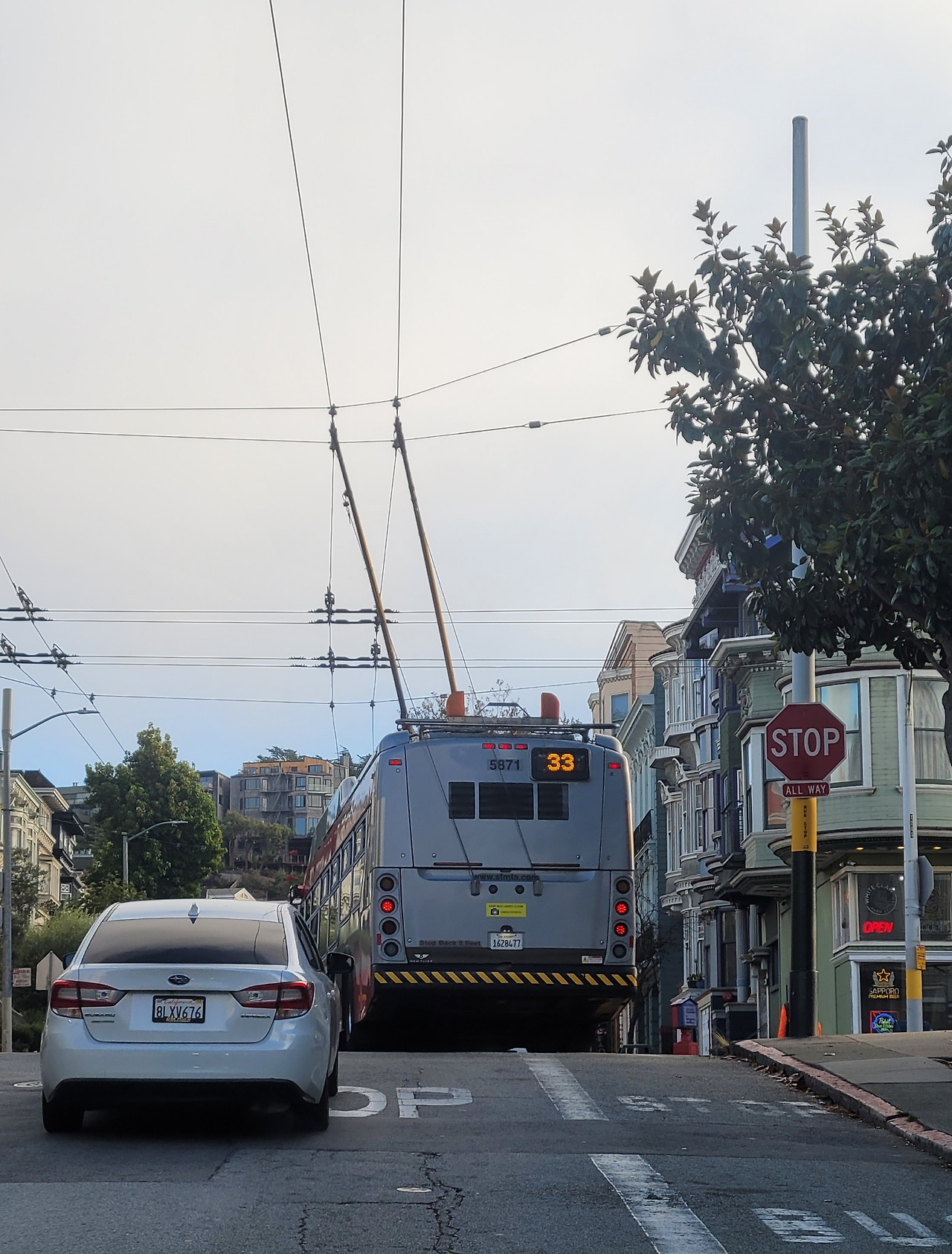 공원 주변에는 고풍스러운 주택가다. 특색 있는 개인 주택들이 연이어 있다. 동네가 깔끔하고 고급스럽다. 미국에서는 아파트가 드물고 대부분 단독주택이다. 너른 땅을 가진 큰 나라가 지닌 여유다. 도로에 전차가 다니는 것도 신기한 광경이다. 일반 차량이 지나는 길에서 전기선을 달고 달린다.