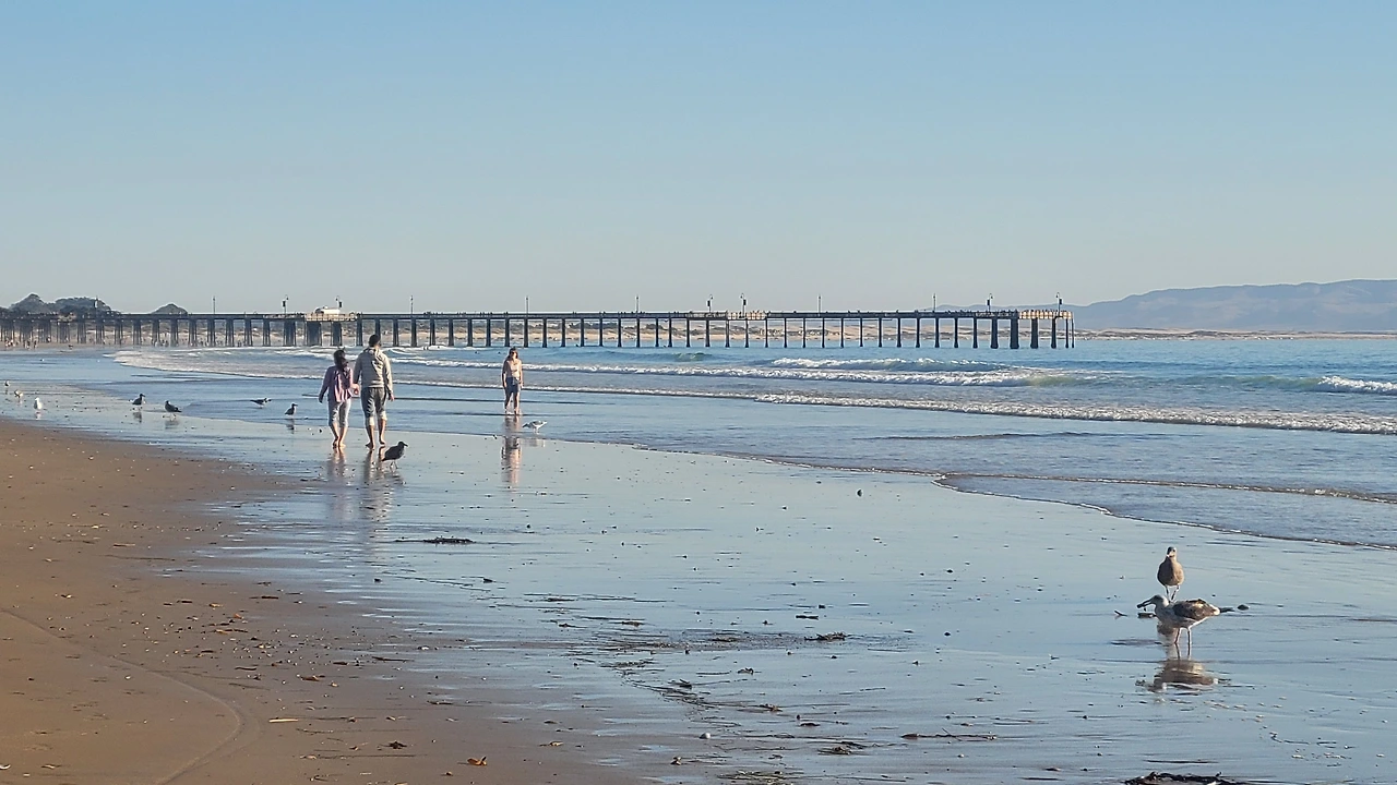 LA를 향해 달려가다 우연히 들른 해변 Pismo Beach! 캘리포니아의 작열하는 태양 아래 끝 모를 수평선의 바다 태평양이 있다. 윤슬이 휘황찬란하다.