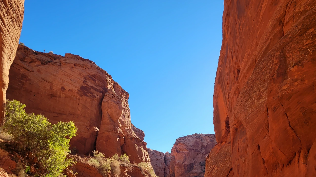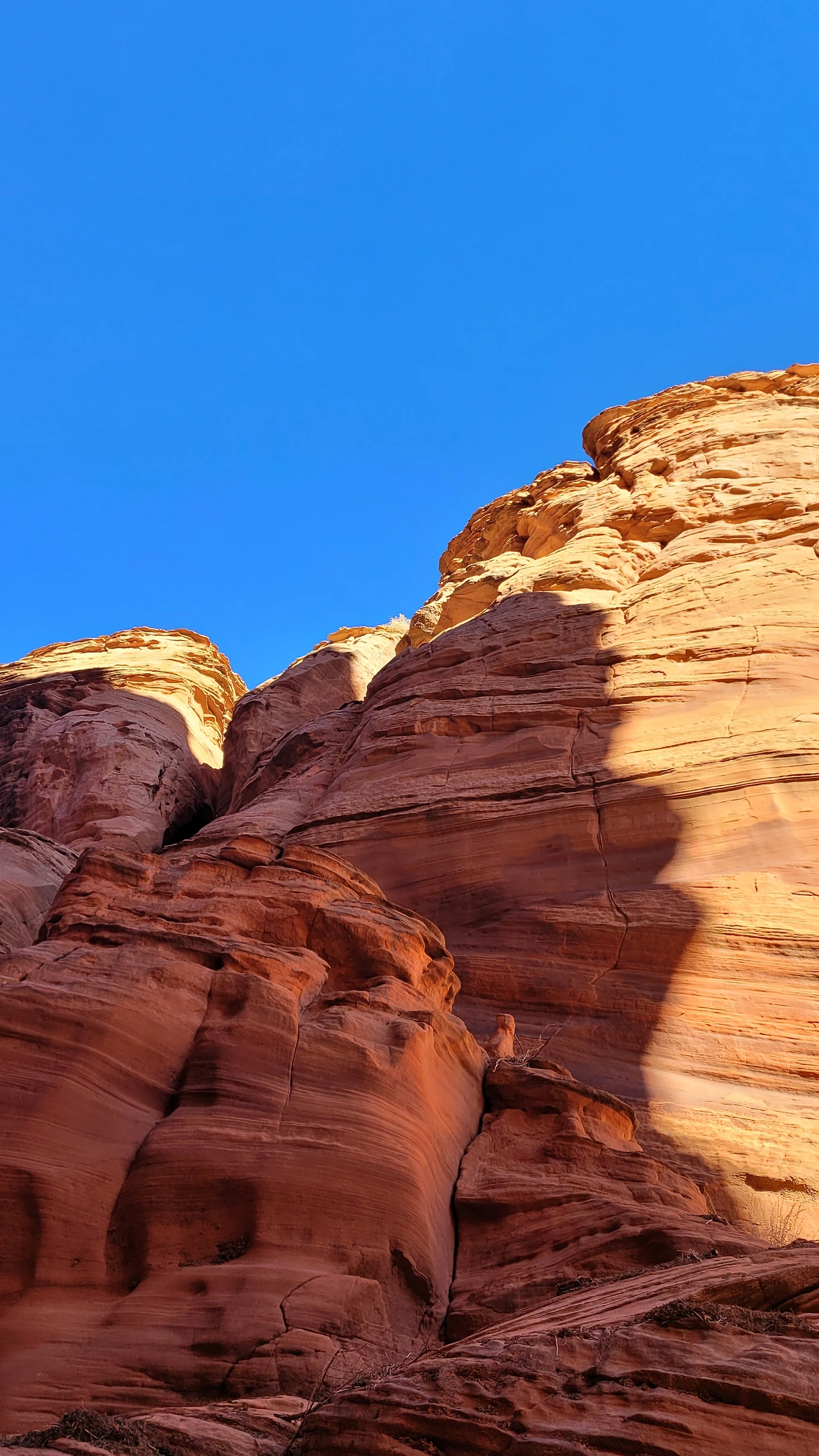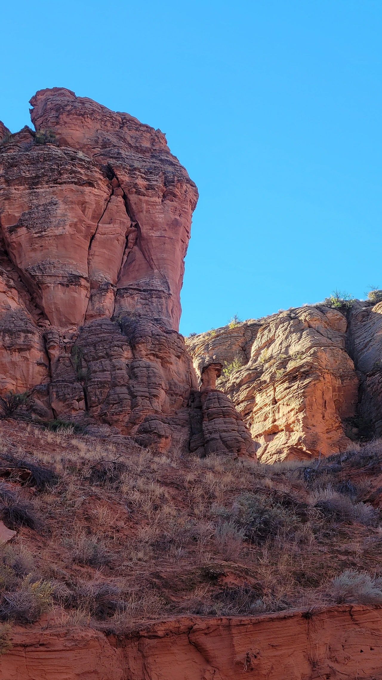 풍경을 구성하는 주요한 한 가지는 파란 하늘이다. 주연은 아니지만 감칠맛 나는 연기로 분위기를 이끌어 가듯 하늘이 있어 완벽한 배경이 된다. 가을 하늘이라 더 깊고 선명해서 강렬하다. 파란 하늘과 붉은 암석의 대조가 채도를 확 끌어올린다. 전구를 다 켜 놓은 듯 밝고 환하다.