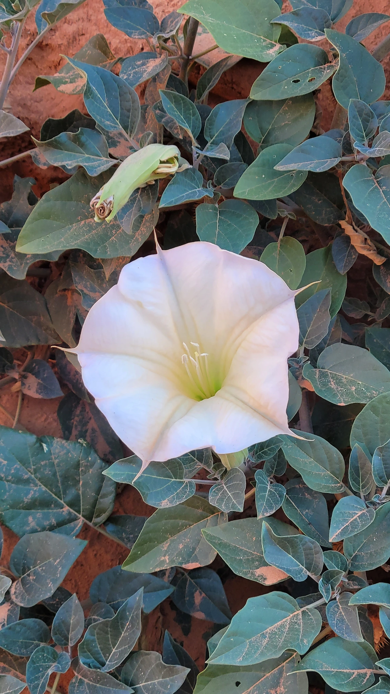 협곡은 거친 황무지와 다르게 색조가 달라진다. 붉은빛이 감도는 암석들의 세상이다. 여름에는 홍수처럼 물이 흐른다고 한다. 내려가는 길가에 독말풀 꽃이 피었다.