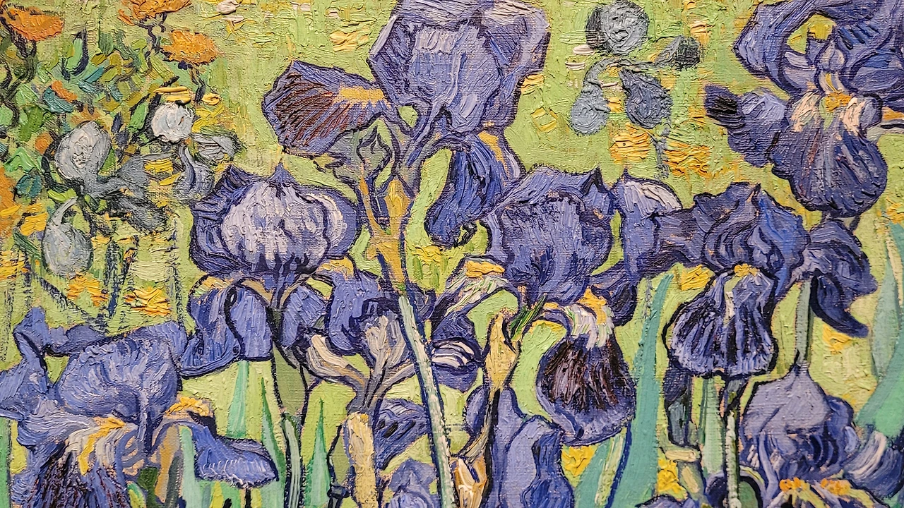 게티센터의 대표적인 수장품을 만났다. 고흐의 아이리스다. 싱싱한 남색의 붓꽃 꽃송이가 생동감이 넘친다. 일본 화풍이 묻어있는 느낌이다.