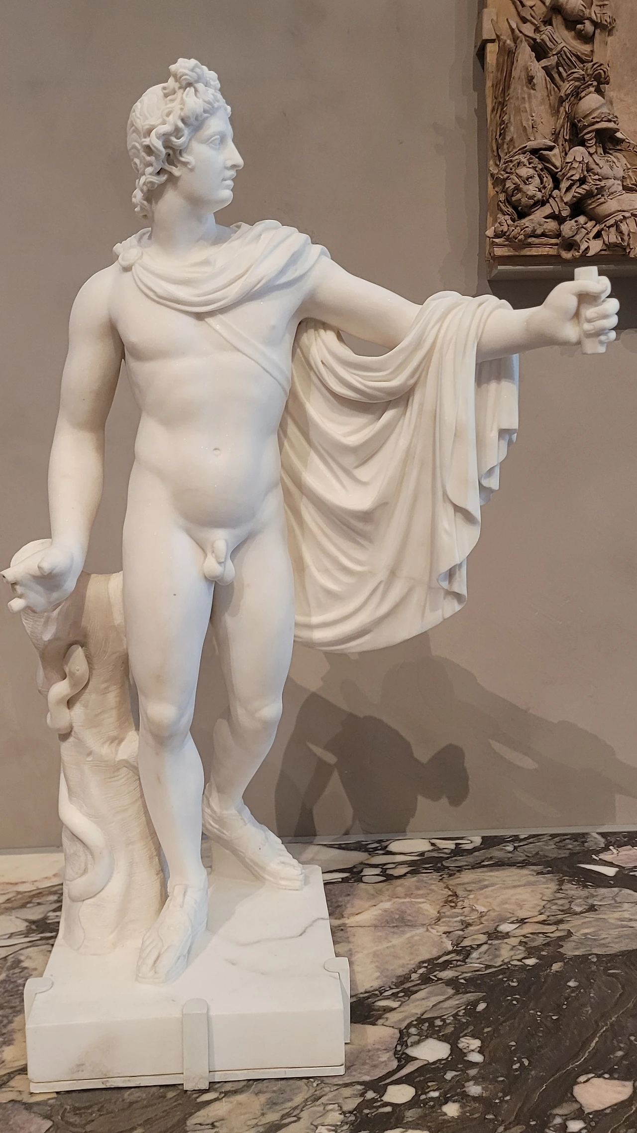 대리석 조각들은 완벽한 인체의 아름다움을 구현한다. 고대 그리스의 조각을 모티브로 제작된 조각들은 대부분 그리스 신화에 등장하는 신이다. 아폴로, 쥬노, 아프로디테로 이들은 모두 완전무결하다. 돌이라고 전혀 느껴지지 않는 부드러운 질감을 보인다. 걸치고 있는 옷자락은 만지면 출렁일 정도로 조각은 섬세하다.완전한 나신이지만 속됨이 없이 우아하다.여성보다 남성들의 나신상이 많은 것도 흥미롭다.