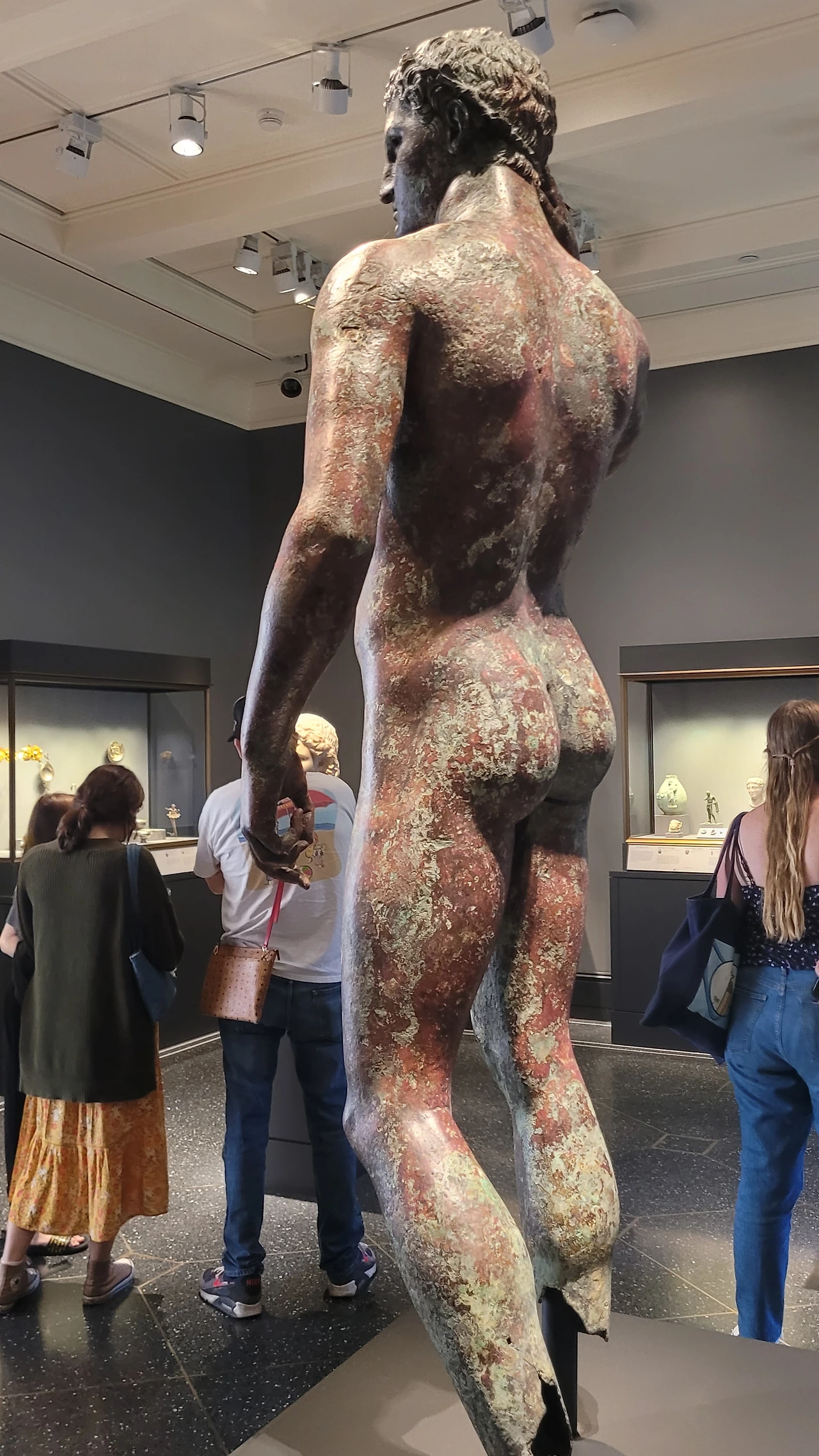 C 300년에서 BC 100년 사이에 제작된 그리스 청동 조각인 Victorious Youth다. 헤라클레스의 힘과 경기에 우승한 젊은이의 당당함이 잘 표현되어 있다.