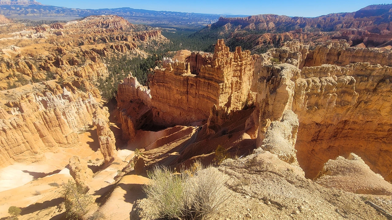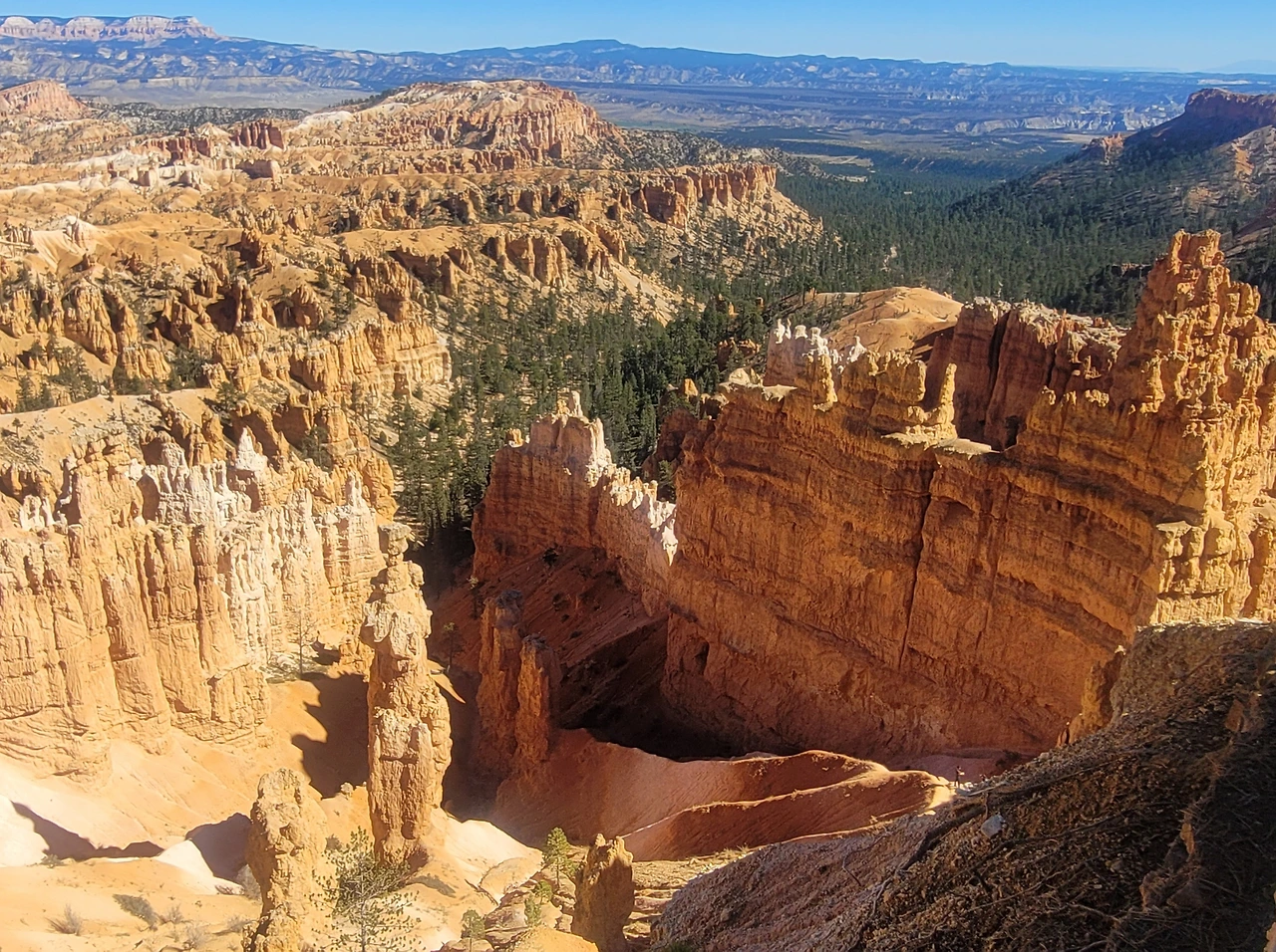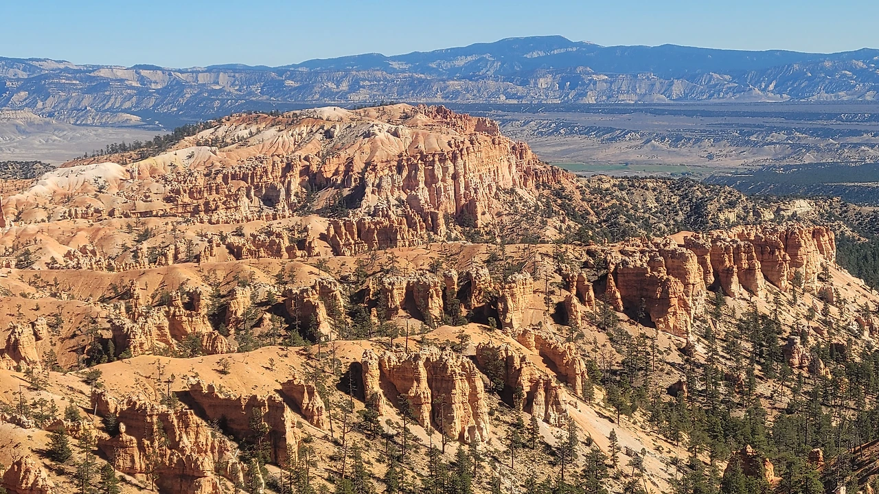 달라진 풍경을 지나 마침내 브라이스 캐년에 도착했다. 어디서도 볼 수 없는 희귀한 광경이 펼쳐졌다. 광활한 협곡에는 셀 수 없는 많은 돌기둥들이 밀림처럼 빼곡하다. 중국의 장가계와 유사한 풍경이다. 이곳에서도 얼마든지 SF 영화가 탄생할만한 신비로운 공간이다. 자연의 경이는 끝이 없다. '돌에 쓴 시'라는 리플릿의 타이틀이 너무도 잘 어울린다.
