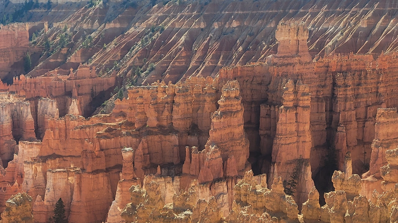 브라이스 캐년은 해발 2400미터에서 2700미터 높이의 계단식 협곡이다. 8 천 개나 되는 후두가 서있는 원형극장이라 할 수 있다. 후두의 높이는 아파트 10층 정도다. 흙과 바위의 중간정도 견고함을 지녔다. 토사가 암석처럼 굳어져 입상붕괴 현상(화강암 같은 조립질 암석이 풍화작용으로 점토로 변화해 기반암에서 떨어져 나오는 형식으로 암석이 부서지는 현상)이 일어난 결과다.