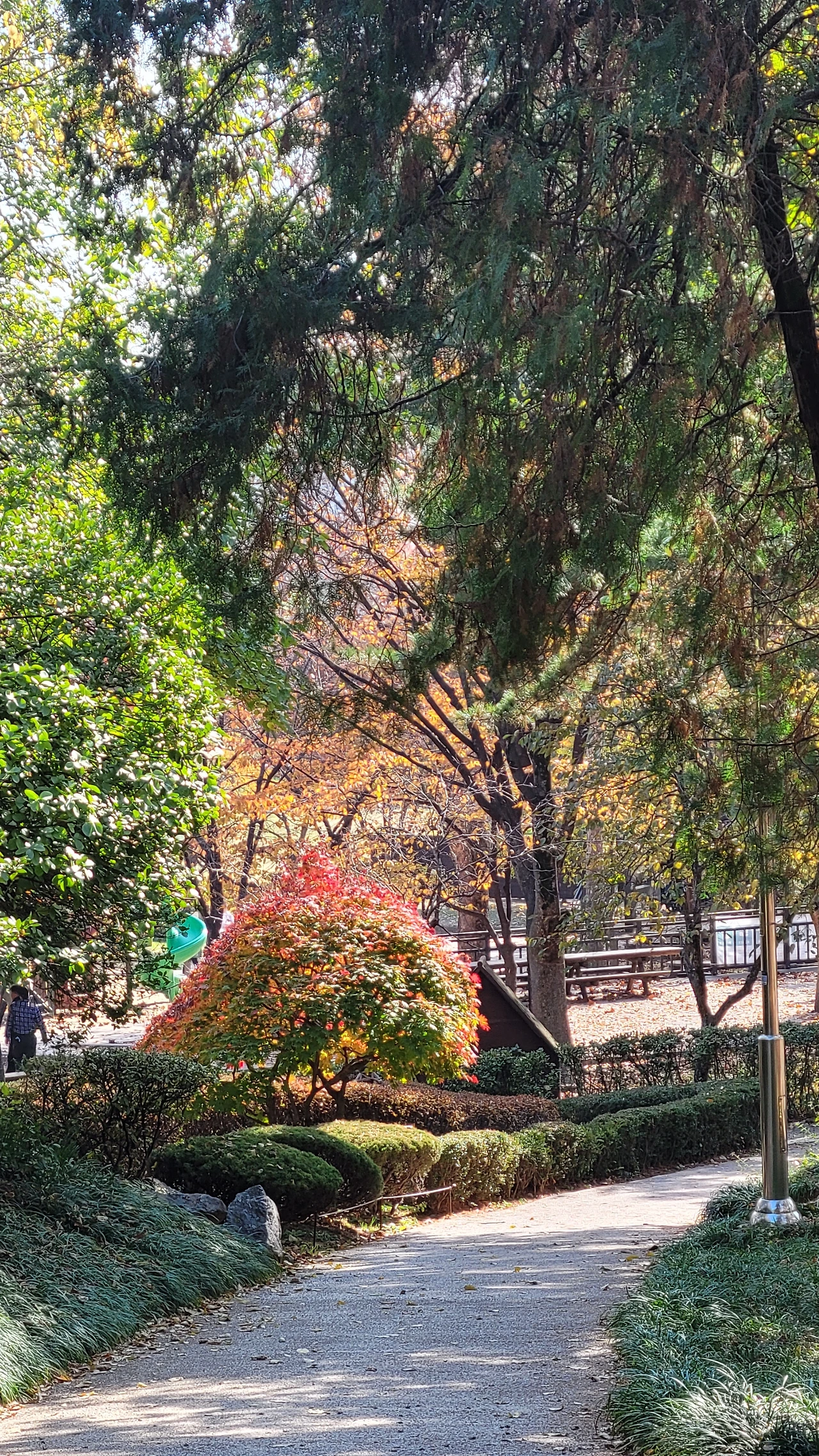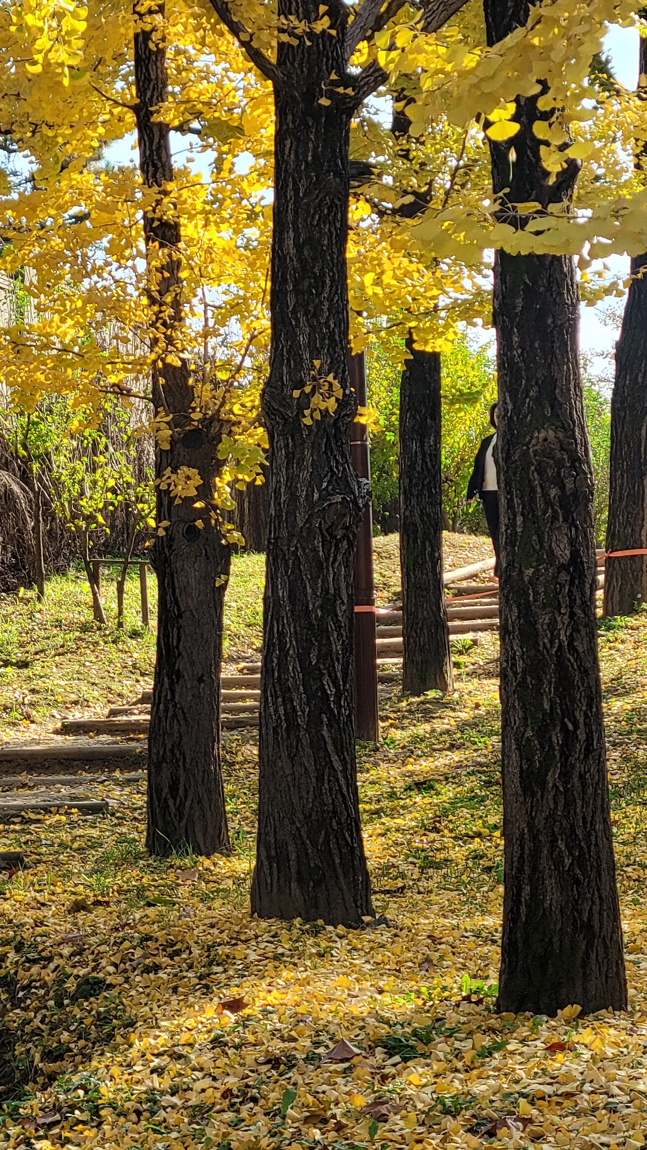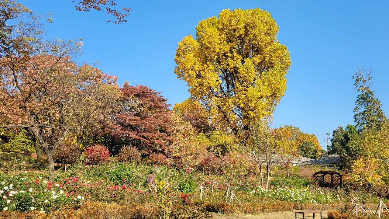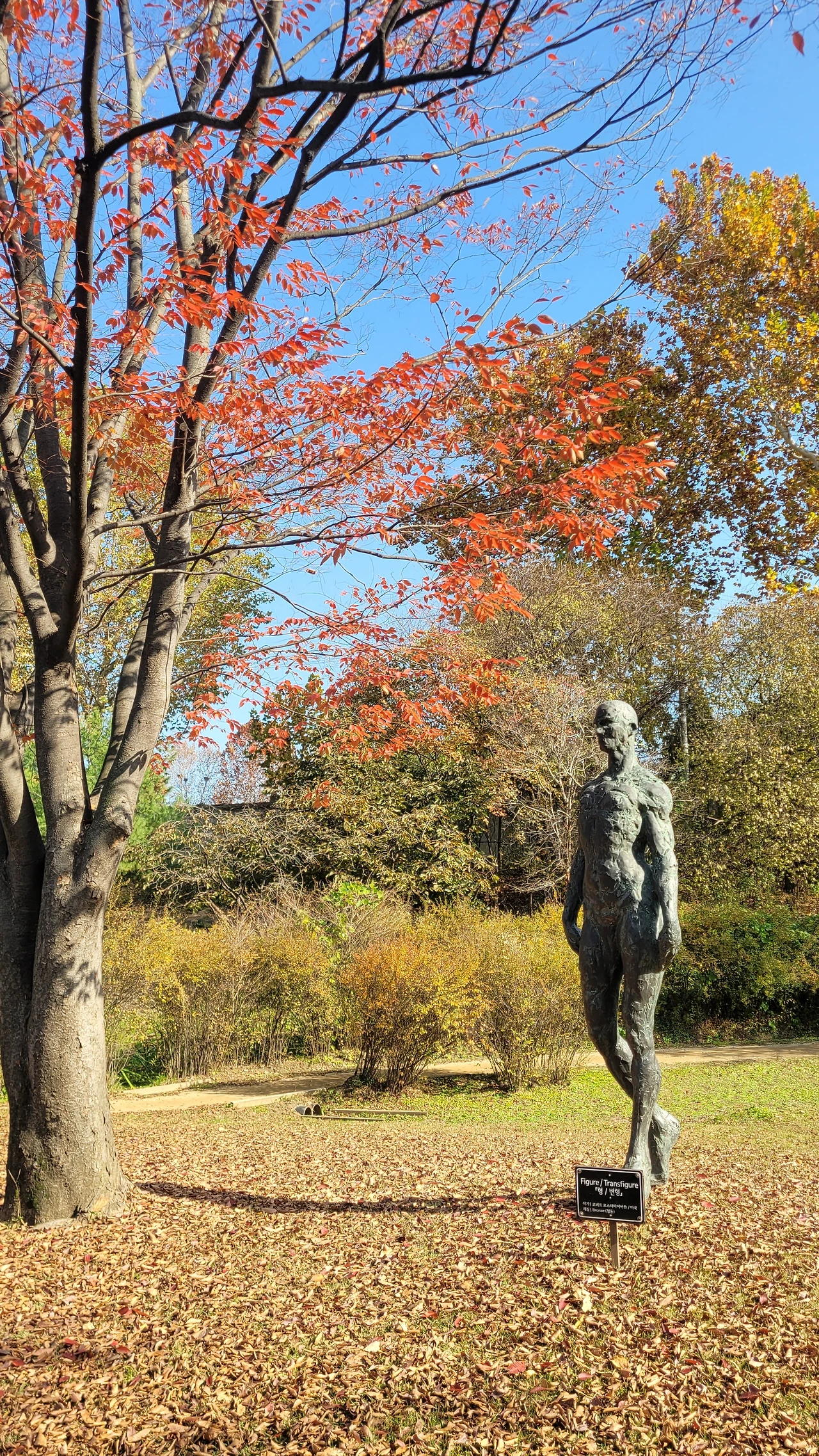 같은 느티나무라도 햇볕에 따라 다채로운 단풍을 선보인다. 조각상과 함께 물든 단풍이 멋진 풍경을 연출했다. 좀작살나무와 계요등은 결실이 한창이다. 보랏빛 구슬과 금빛 구슬이 햇살에 빛난다. 은행나무도 빠질 수 없다. 샛노란 은행잎들이 피고 지고 있다.