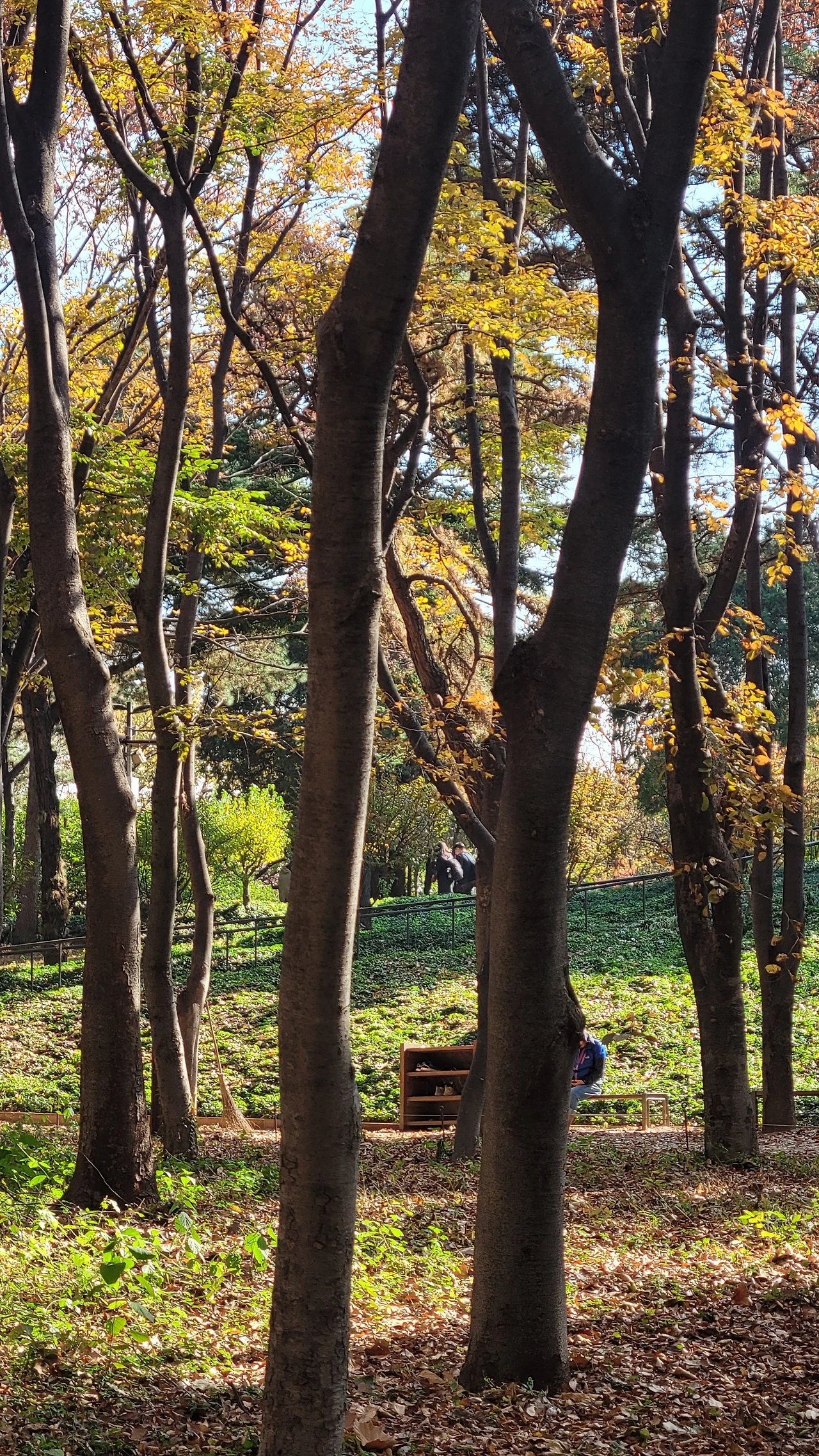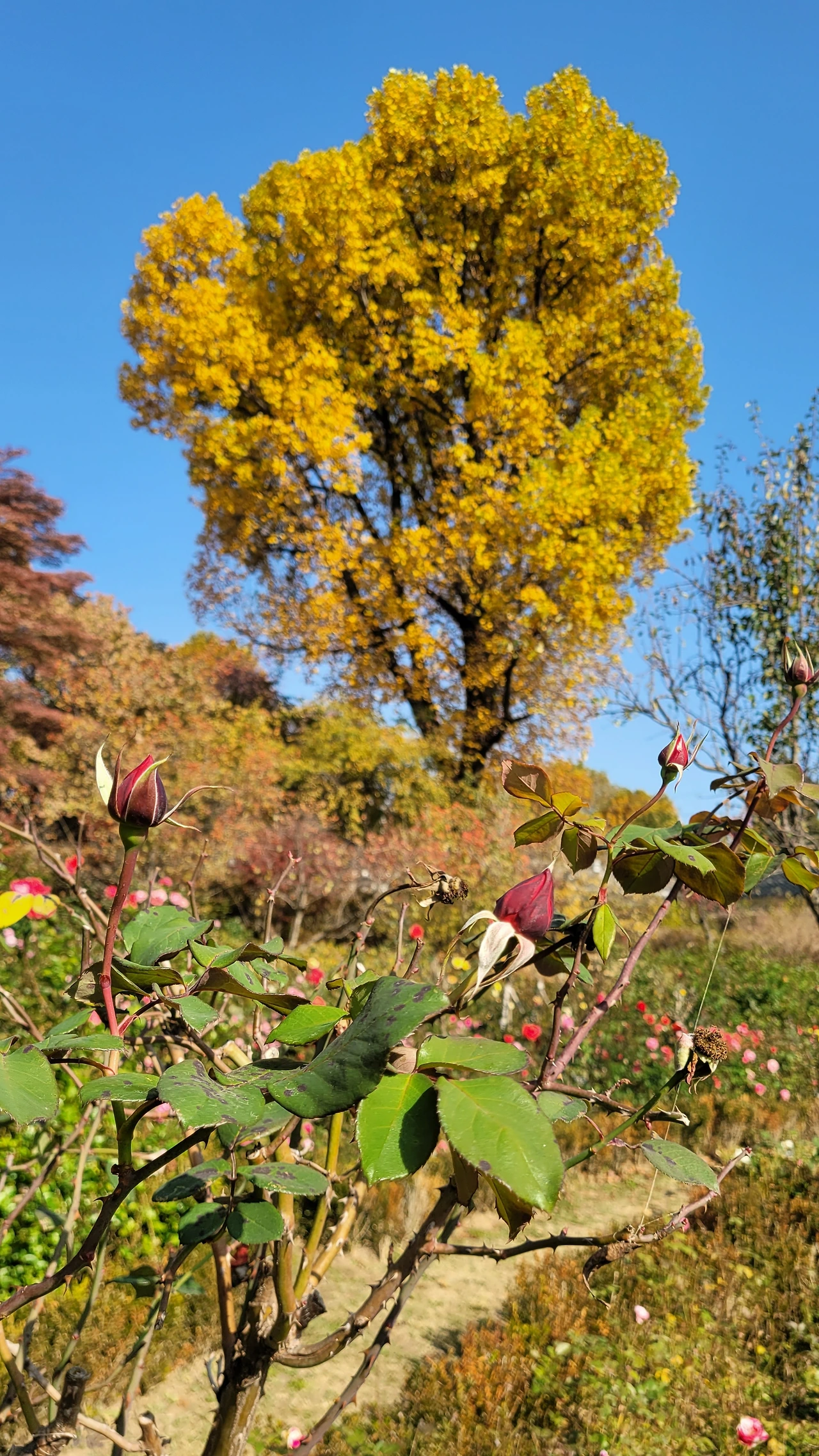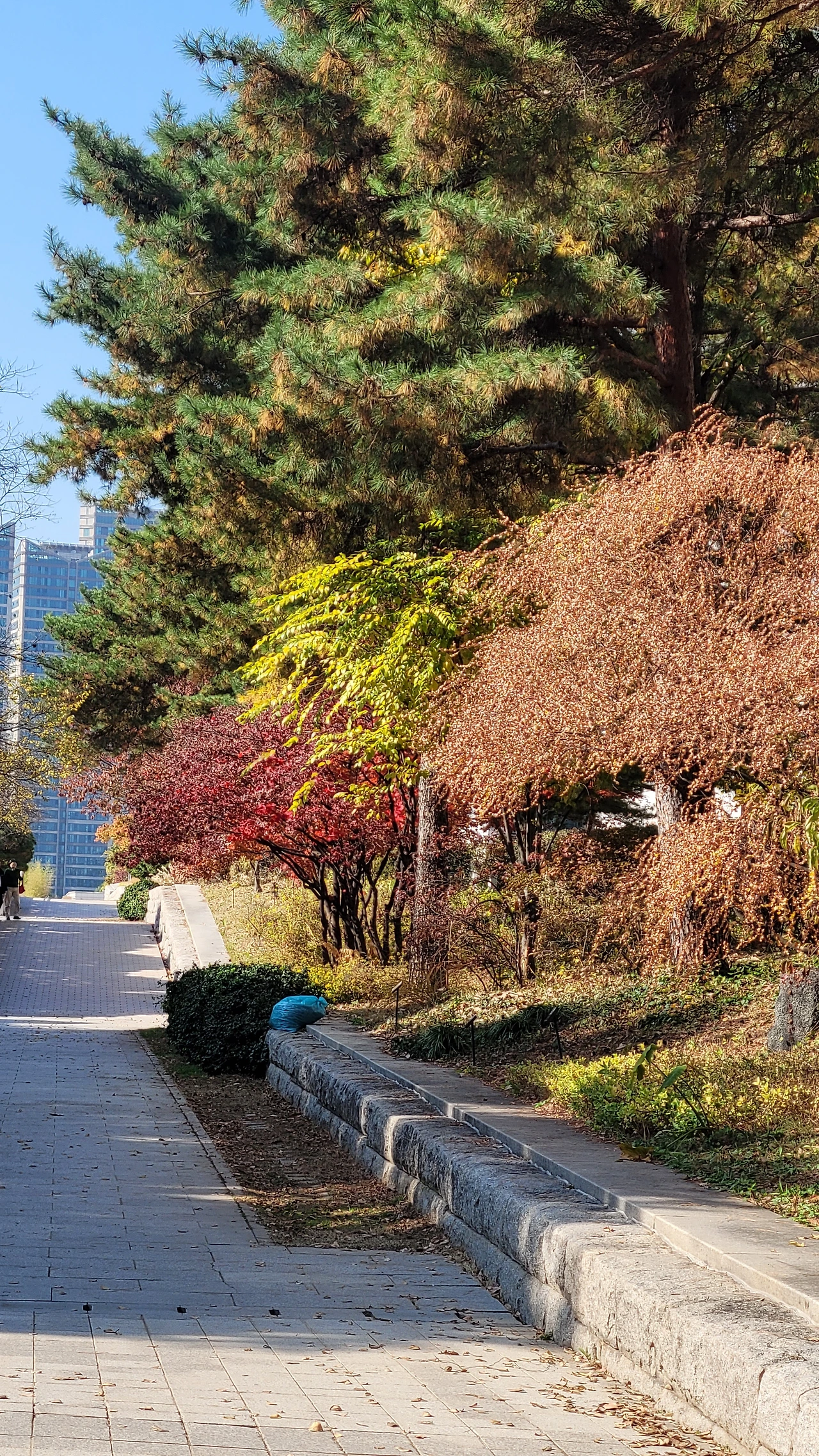 같은 느티나무라도 햇볕에 따라 다채로운 단풍을 선보인다. 조각상과 함께 물든 단풍이 멋진 풍경을 연출했다. 좀작살나무와 계요등은 결실이 한창이다. 보랏빛 구슬과 금빛 구슬이 햇살에 빛난다. 은행나무도 빠질 수 없다. 샛노란 은행잎들이 피고 지고 있다.