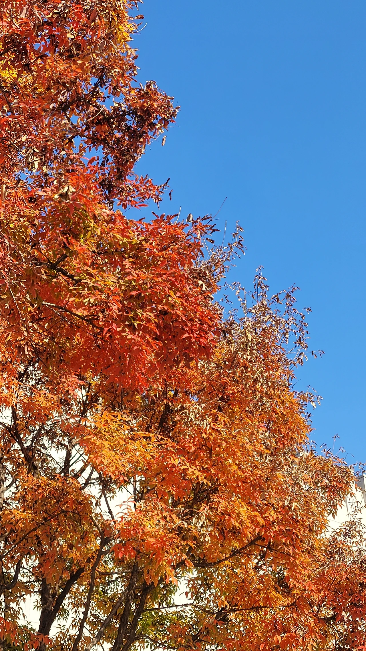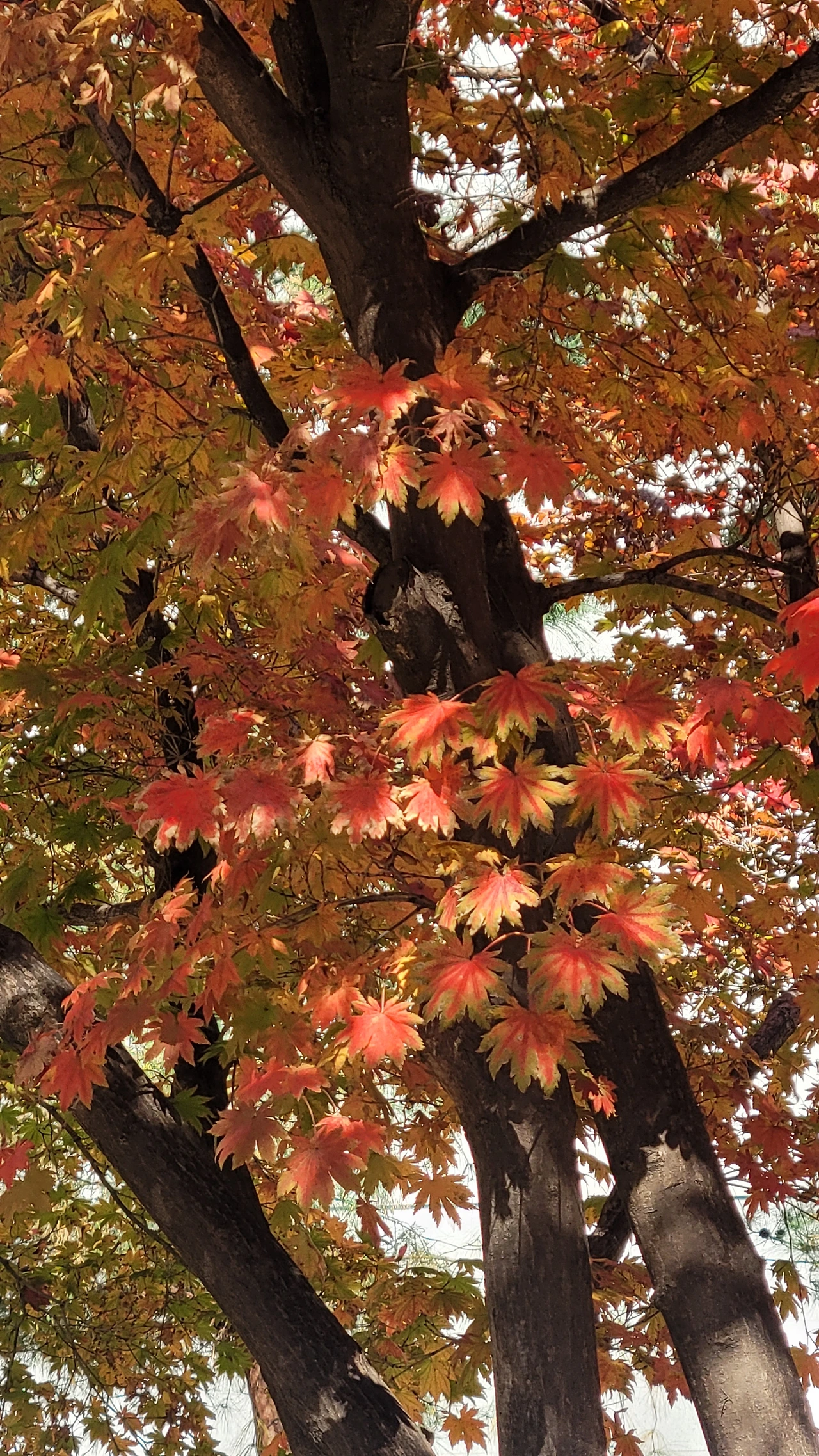 용산가족공원으로 향하는 길에 가을이 무르익었다. 실한 모과들이 주렁주렁 열려 익어가고 복자기 나무는 화려한 단풍이 절정이다. 구름 한 점 없는 쾌청한 날에 제대로 가을 나들이를 즐긴다. 담쟁이덩굴도 이에 질세라 진한 화장으로 맵시를 뽐내는 중이다. 우리나라 고유 단풍인데도 당단풍으로 불리는 나무에도 고운 물이 들었다. 따스한 가을볕에 검은 고양이가 졸고 있다.