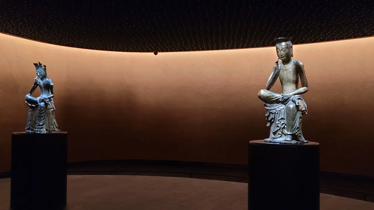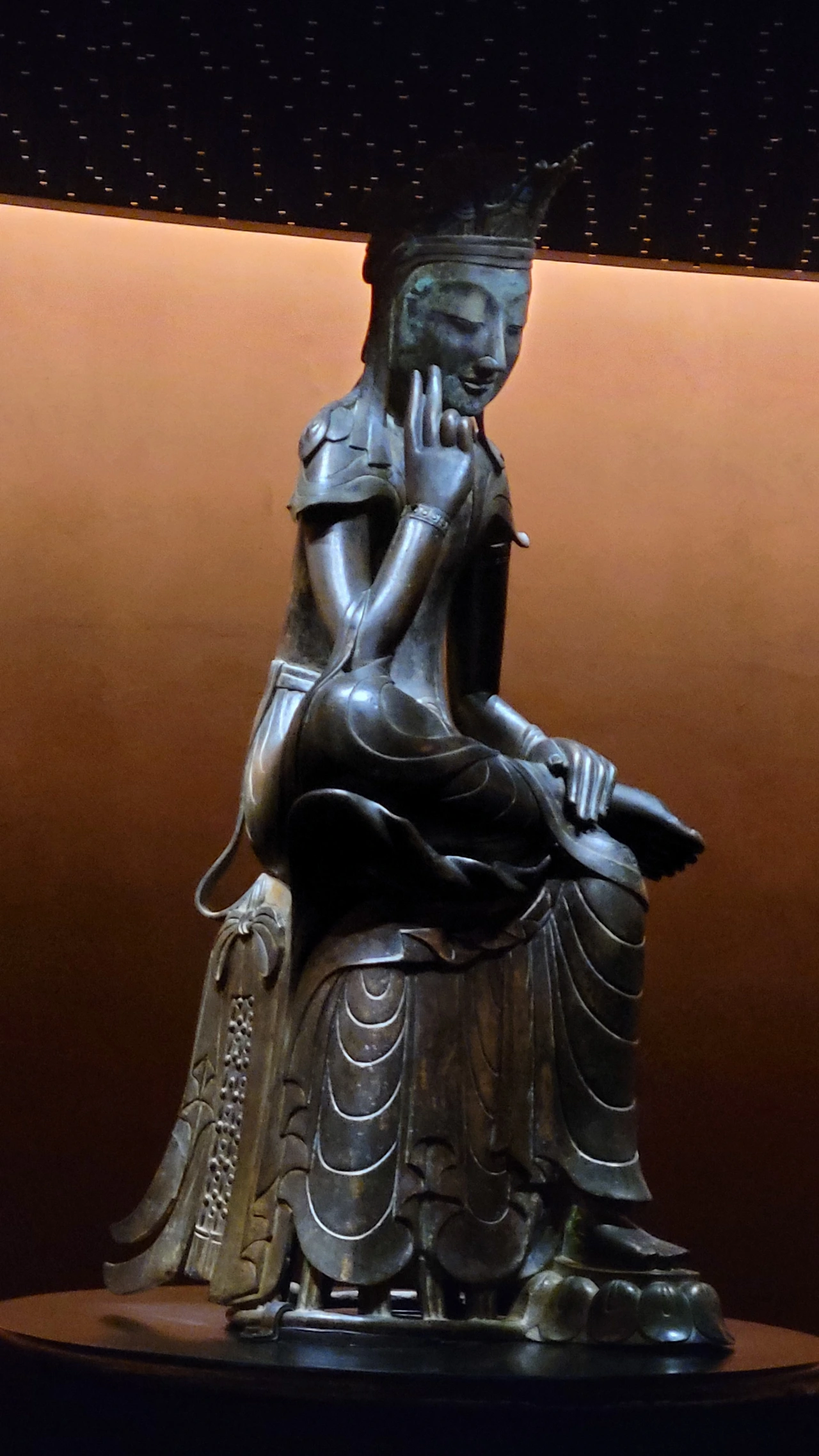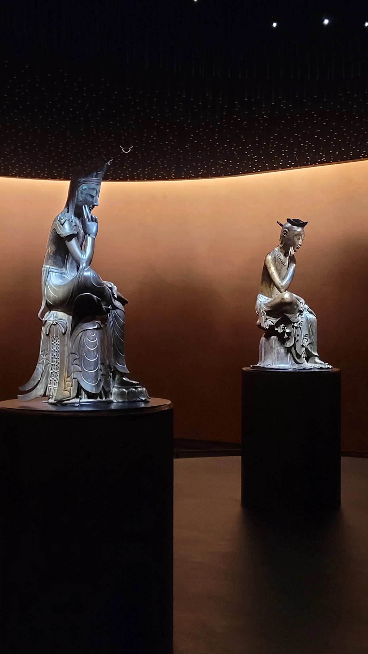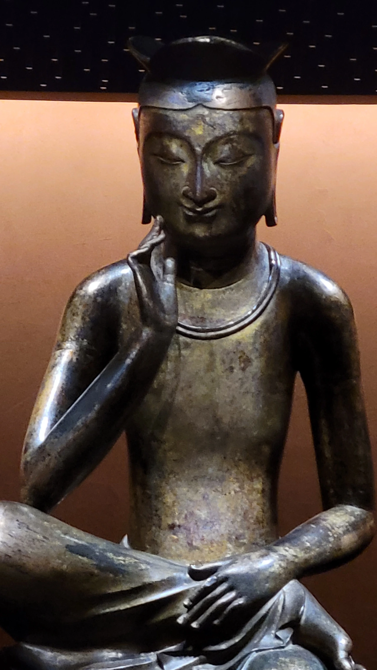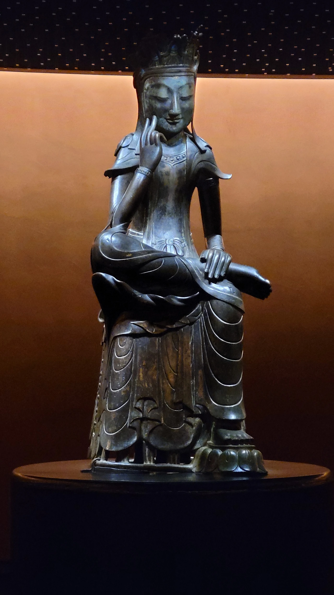 사색할 수 있는 분위기를 최대한 살린 공간에 두 점의 반가사유상이 전시 중이다. 삼국시대 후반에 제작된 우리 문화재의 백미라 할 수 있는 국보다. 다행히도 관람객은 많지 않았다. 지그시 눈을 감고 한 손으로 턱을 괸 채 깊은 사유에 빠져있는 모습은 이미 피안을 향하고 있는 듯하다. 비슷한 것 같지만 다른 분위기다. 마음이 바빠 정신없이 사진을 담고 나왔다. 여유를 가지고 다시 와야겠다는 마음을 품었다.