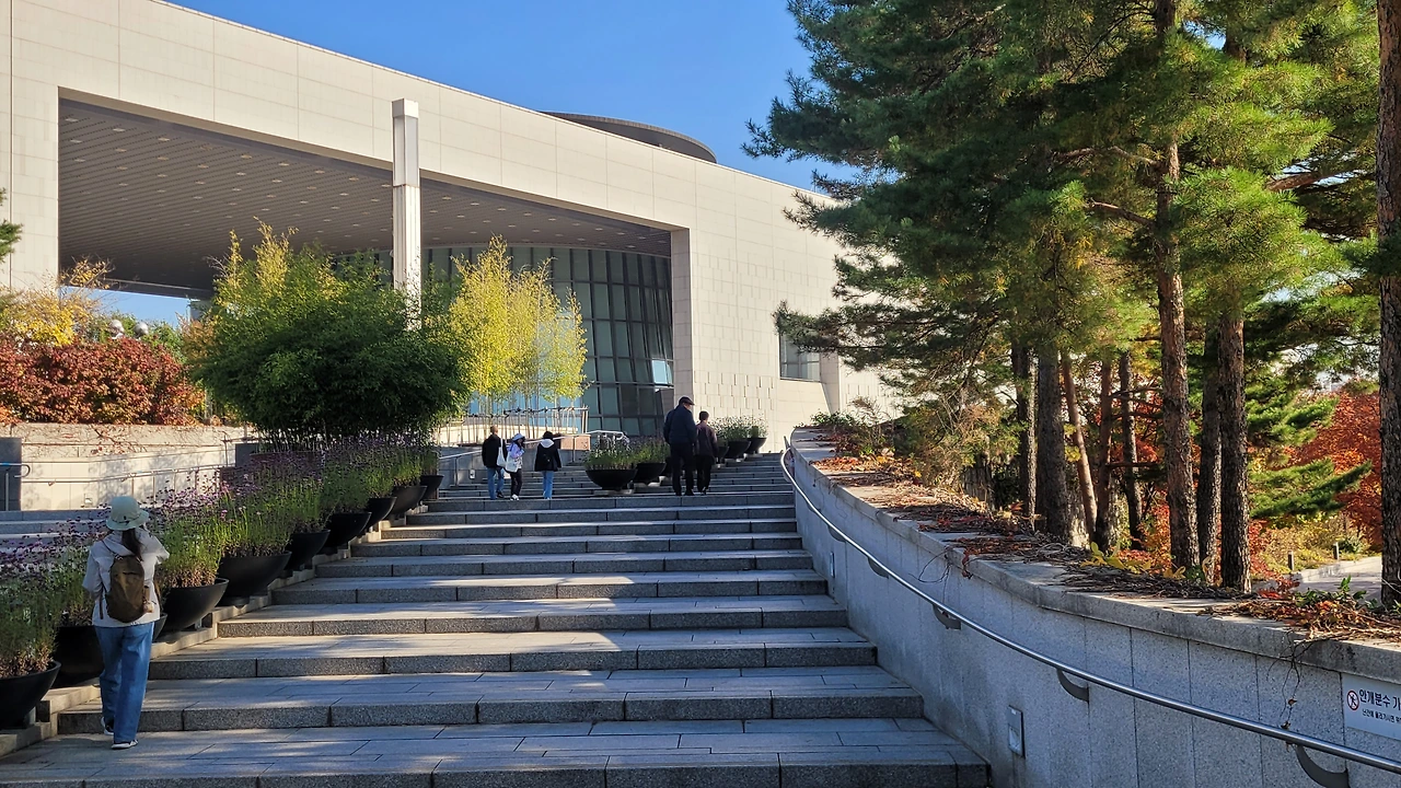 처음 와본 국립박물관 위용이 대단하다. 모던한 디자인과 웅장함을 함께 갖췄다. 입구에는 아직도 꽃이 지지 않고 우리를 반긴다. 버들마편초에 멋쟁이 나비도 남은 가을을 즐긴다. 학생들이 단체로 박물관 견학을 왔다. 소란스럽지만 활기가 넘친다.