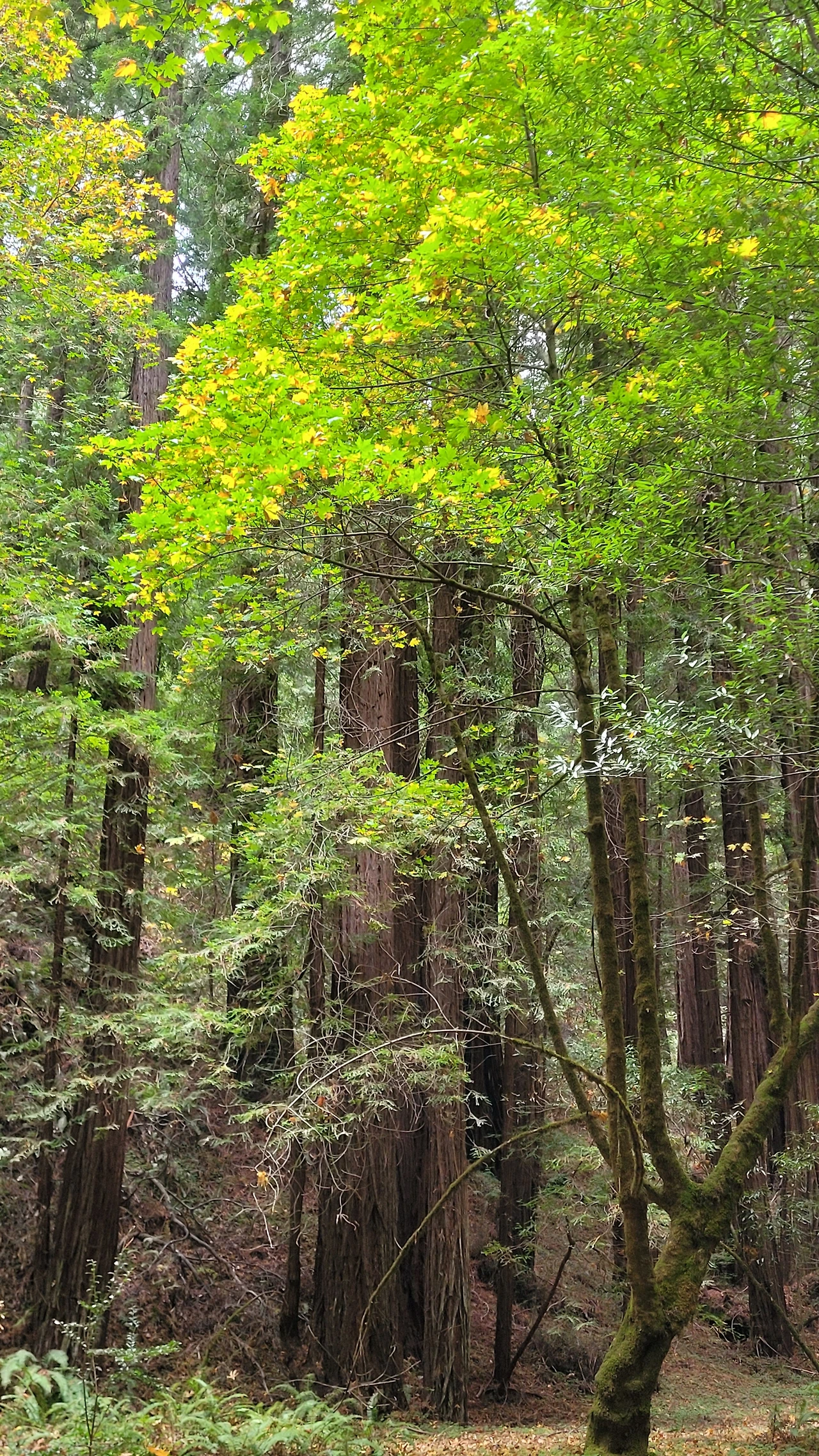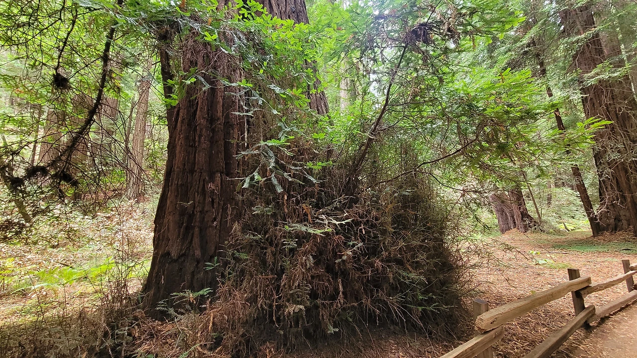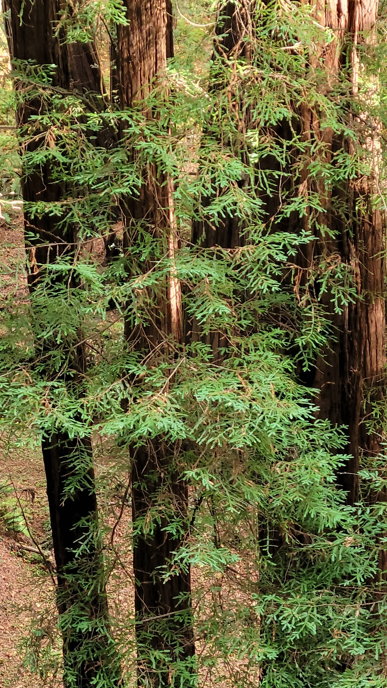거목들 사이로 자라는 나무들도 있다. 일반적으로 큰 키 나무인데도 이곳에서는 죄다 관목 수준으로 보인다. 낙엽이 수북하게 쌓인 바닥에는 양치식물이 자란다. 햇볕이 잘 들지 않아 생육환경이 불리할 텐데 잘 자라고 있는 것이 참 씩씩하게 보인다. 캘리포니아는 건조지대로 강수량이 많지 않은 곳이다. 건기에 레드우즈는 캘리포니아 해변의 안개를 통해 수분을 공급받는다. 레드우즈의 뿌리는 30 센티 정도로 얕지만 30미터 까지 퍼진다.