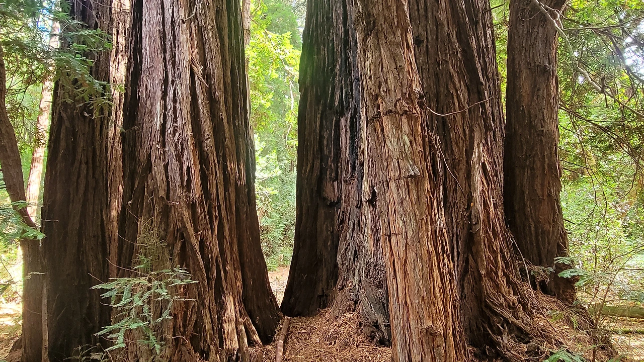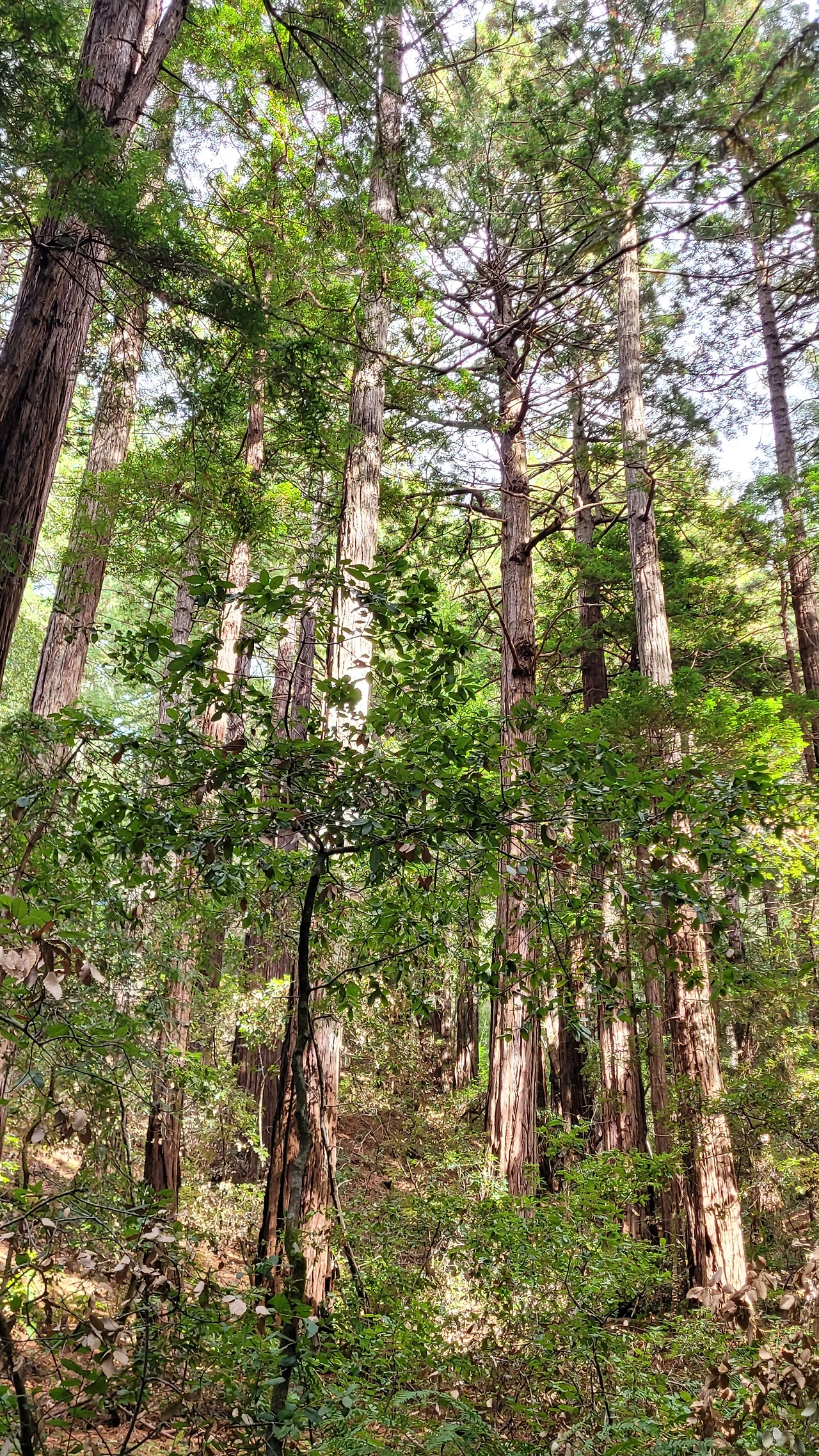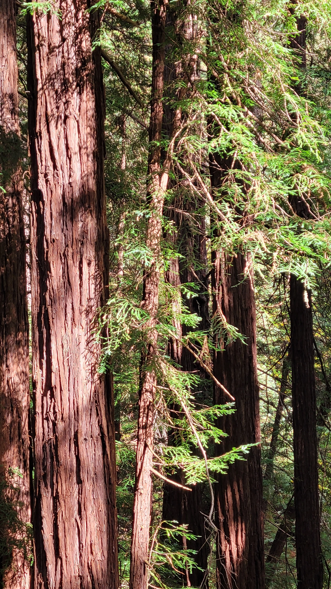 거목들 사이로 자라는 나무들도 있다. 일반적으로 큰 키 나무인데도 이곳에서는 죄다 관목 수준으로 보인다. 낙엽이 수북하게 쌓인 바닥에는 양치식물이 자란다. 햇볕이 잘 들지 않아 생육환경이 불리할 텐데 잘 자라고 있는 것이 참 씩씩하게 보인다. 캘리포니아는 건조지대로 강수량이 많지 않은 곳이다. 건기에 레드우즈는 캘리포니아 해변의 안개를 통해 수분을 공급받는다. 레드우즈의 뿌리는 30 센티 정도로 얕지만 30미터 까지 퍼진다.