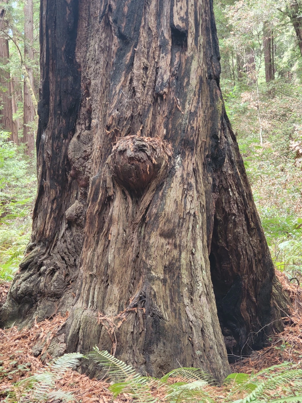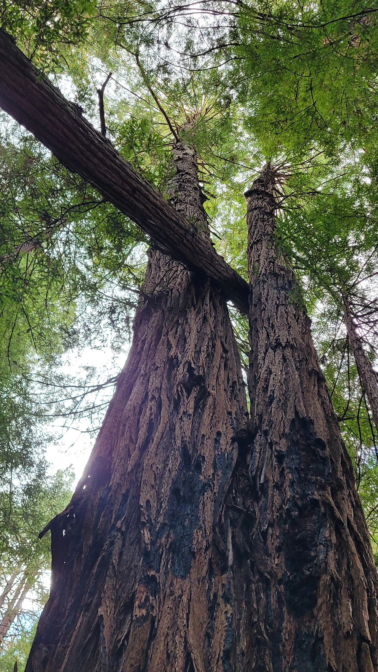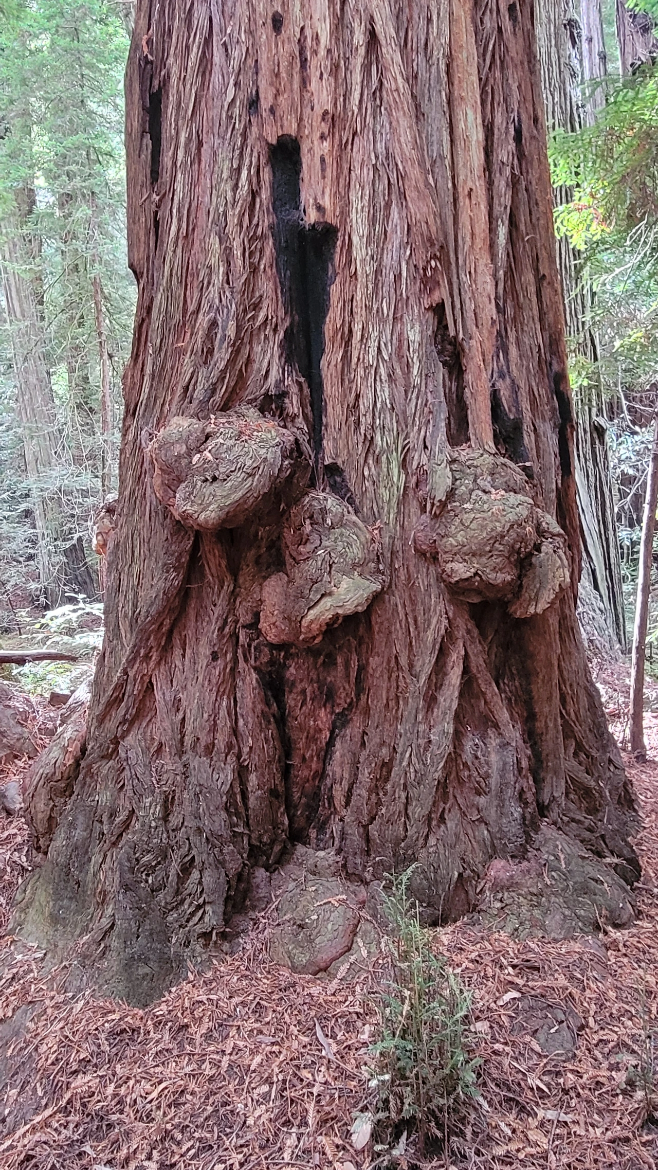 레드우즈 수피에 불탄 자국이 많이 보인다. 레드우즈는 수피가 두껍고 해면 같은 껍질을 지니고 있을 뿐 아니라 탄닌성분을 포함하고 있어 화재를 견딜 수 있다. 산불은 자연적으로 발생하는 데 역설적으로 레드우즈의 성장에 꼭 필요하다고 한다. 저강도의 산불은 썩은 식물들을 제거하여 씨앗이 토양 속에 뿌리내리도록 돕고 씨앗을 죽이는 균류와 박테리아를 파괴한다. 재난을 기회로 삼는 놀라운 식물의 지혜가 아닐 수 없다.