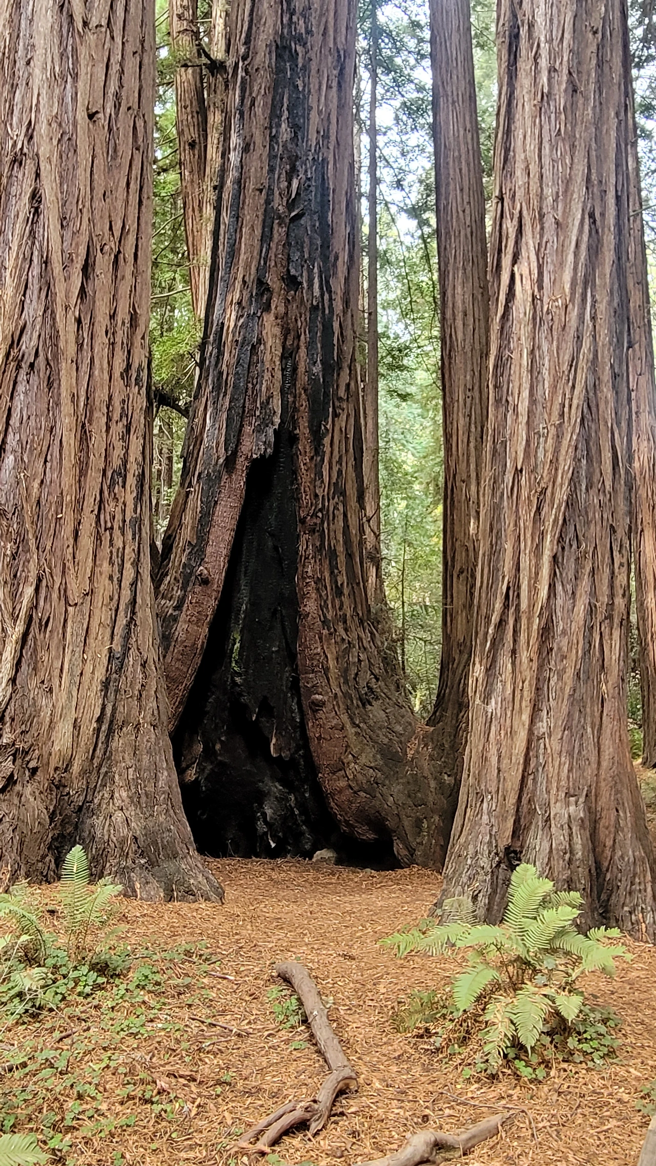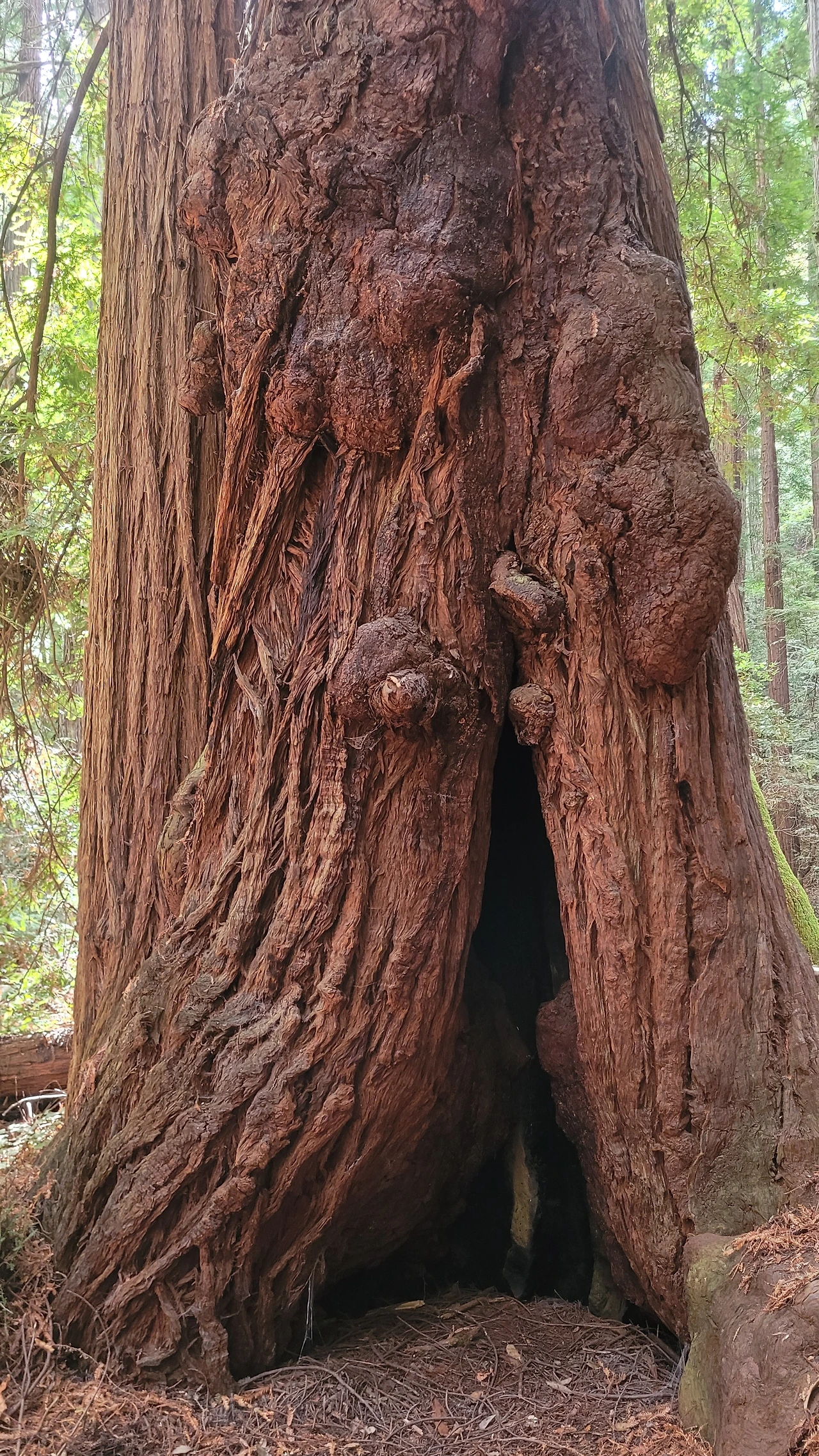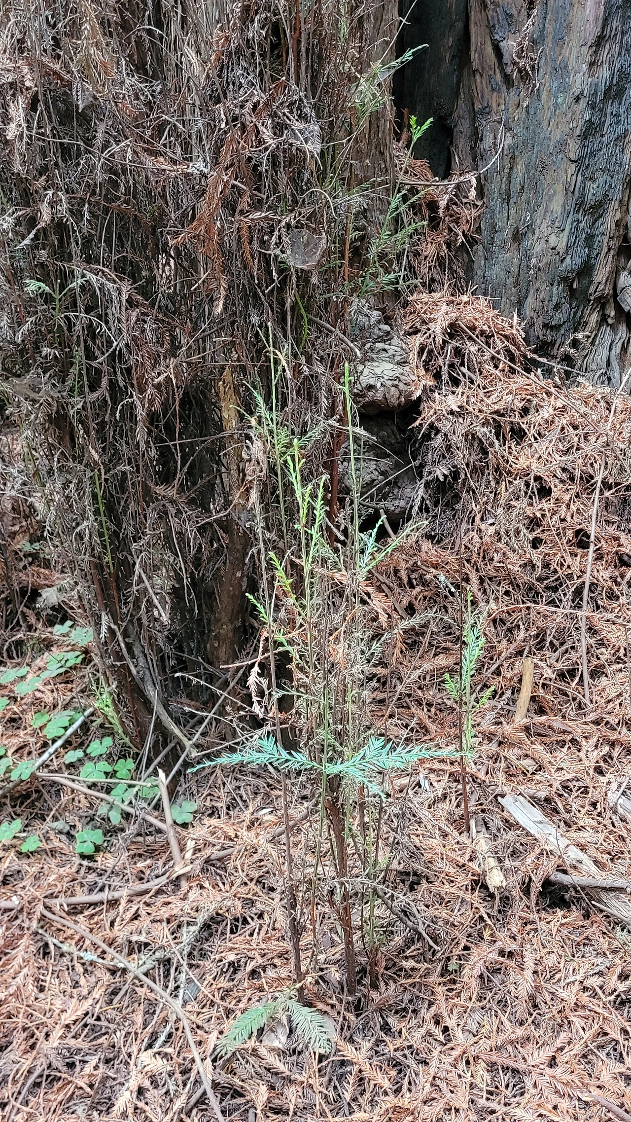 레드우즈 수피에 불탄 자국이 많이 보인다. 레드우즈는 수피가 두껍고 해면 같은 껍질을 지니고 있을 뿐 아니라 탄닌성분을 포함하고 있어 화재를 견딜 수 있다. 산불은 자연적으로 발생하는 데 역설적으로 레드우즈의 성장에 꼭 필요하다고 한다. 저강도의 산불은 썩은 식물들을 제거하여 씨앗이 토양 속에 뿌리내리도록 돕고 씨앗을 죽이는 균류와 박테리아를 파괴한다. 재난을 기회로 삼는 놀라운 식물의 지혜가 아닐 수 없다.