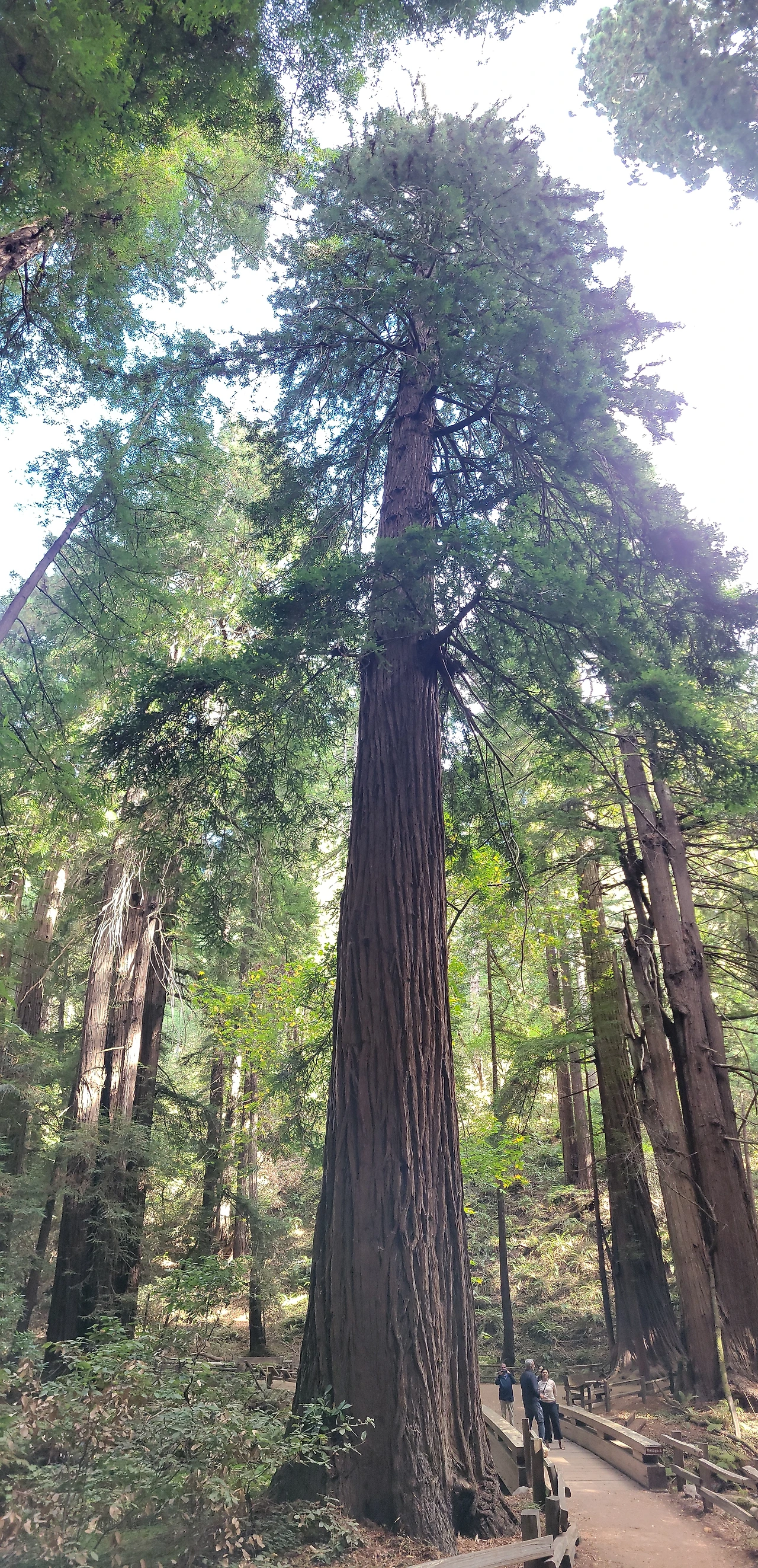 미국을 여행하면서 가장 크게 느낀 점 하나는 여러모로 큰 나라라는 것이다. 규모와 크기면에서 특히 압도적이다. 자연에서도 다를 바 없다. Muir Woods National Monument에서 만난 California Redwoods는 어마어마했다. 나무의 둘레도 대단했지만 높이가 경이로웠다. 해안 삼나무라고도 불리는 Coast Redwoods는 지구상에서 가장 큰 생명체다. 그중 하이페리온이라고 불리는 세계에서 가장 큰 나무의 크기는 35층 건물 높이와 맞먹는 115.55미터 높이다. 이 나무는 캘리포니아 레드우즈 국립공원 경내에 있다. 뮤어 우즈의 가장 큰 나무는 약 80미터로 23층 높이다.ods Nation