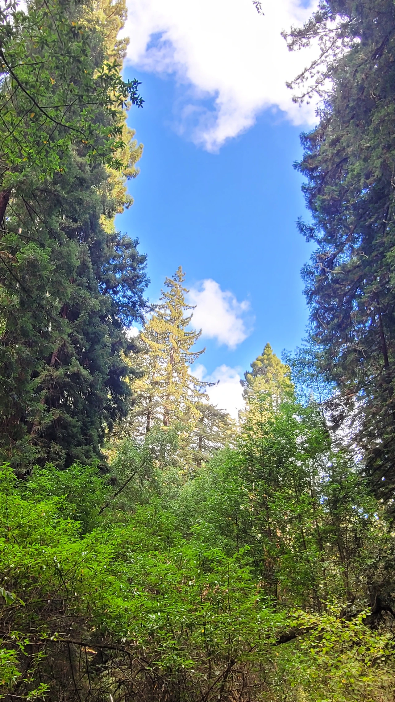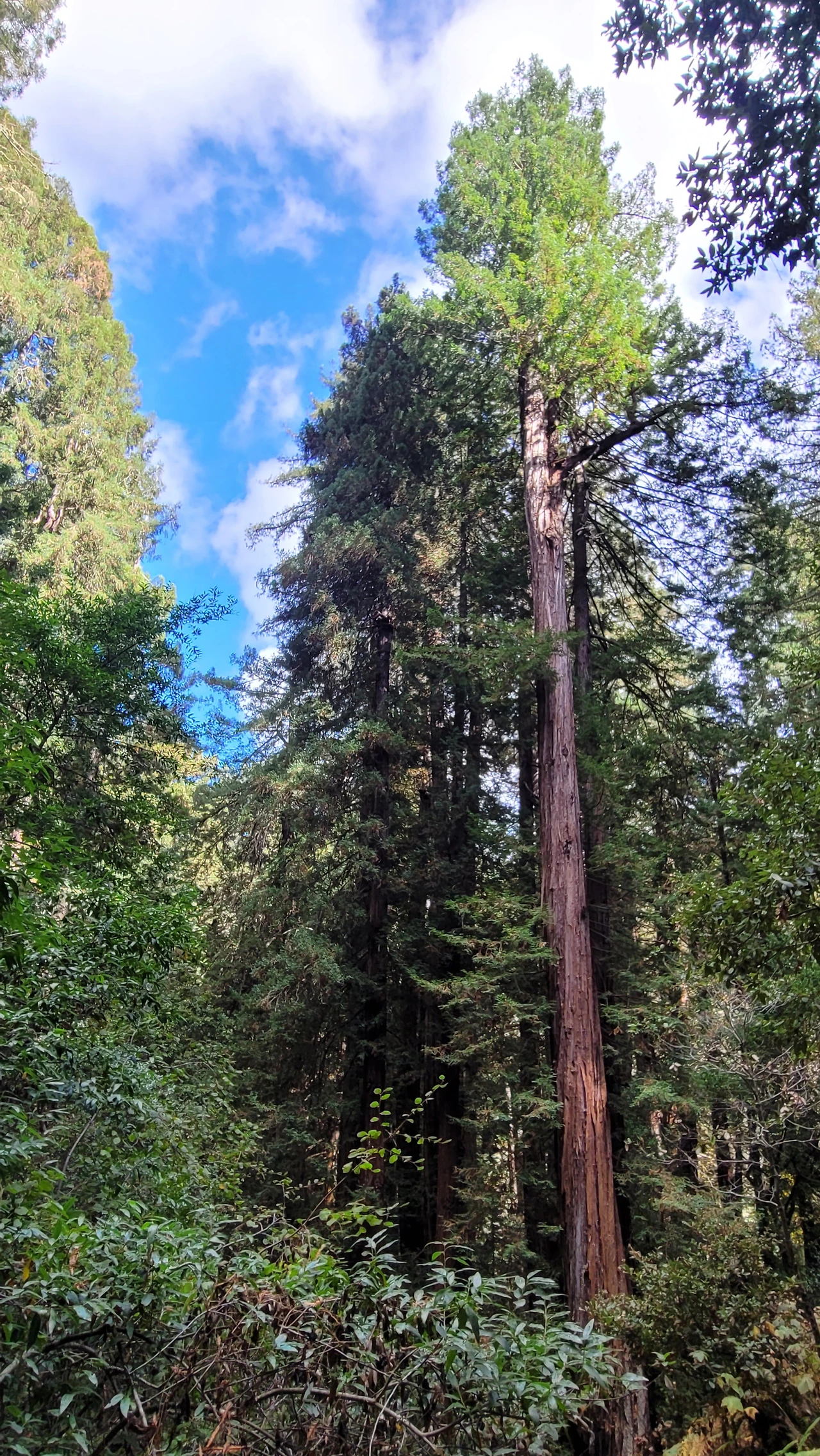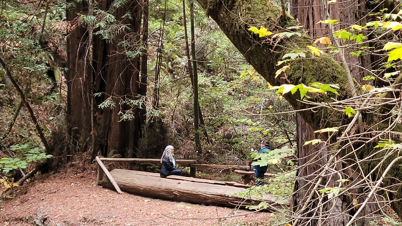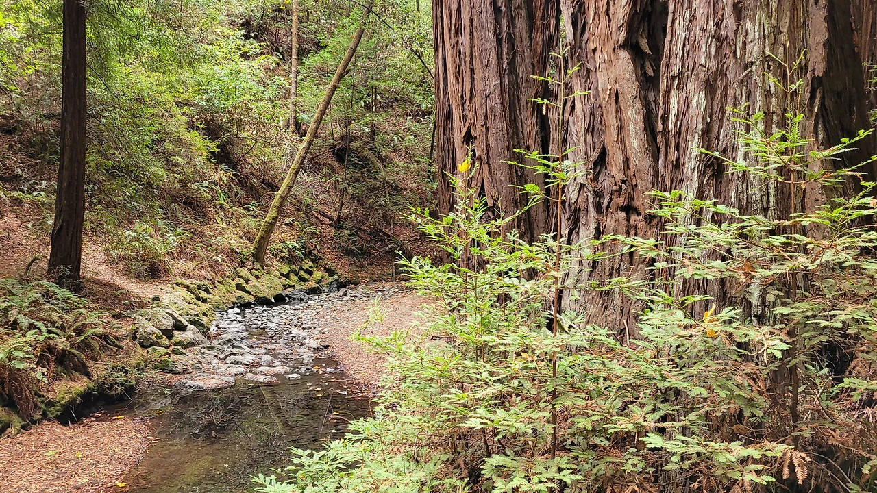 숲을 도는 길은 위아래 길이 있어서 자연스럽게 한 바퀴를 돌게 된다. 오르는 길은 낮은 길로 가다 돌아오는 길은 상대적으로 높은 곳에서 아래를 바라보며 산책하게 되어 레드우즈를 다양하게 관찰할 수 있어 좋다. 물이 부족한 지역답게 숲에는 물이 많지 않다. 하류에 겨우 시내가 흐르는 정도다. 수량이 풍부하지 않음에도 장대하게 자라는 나무들의 생명력이 경이롭다.