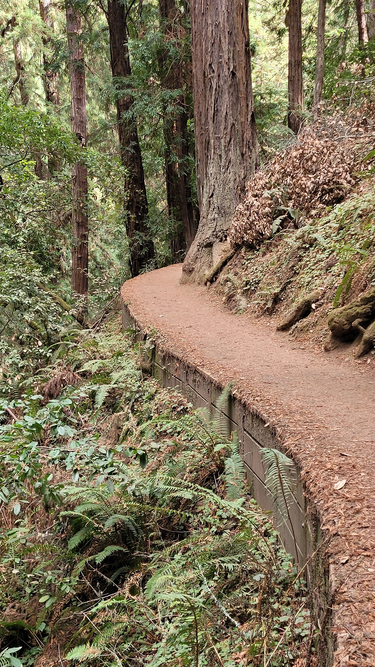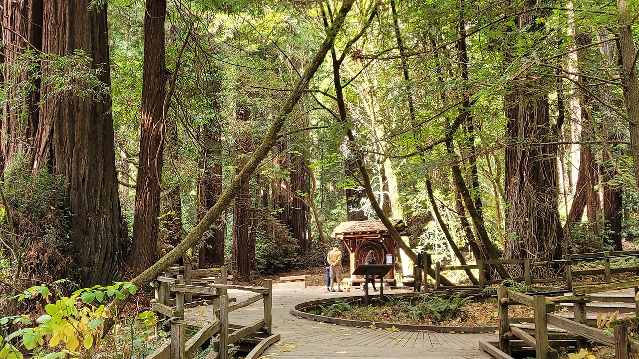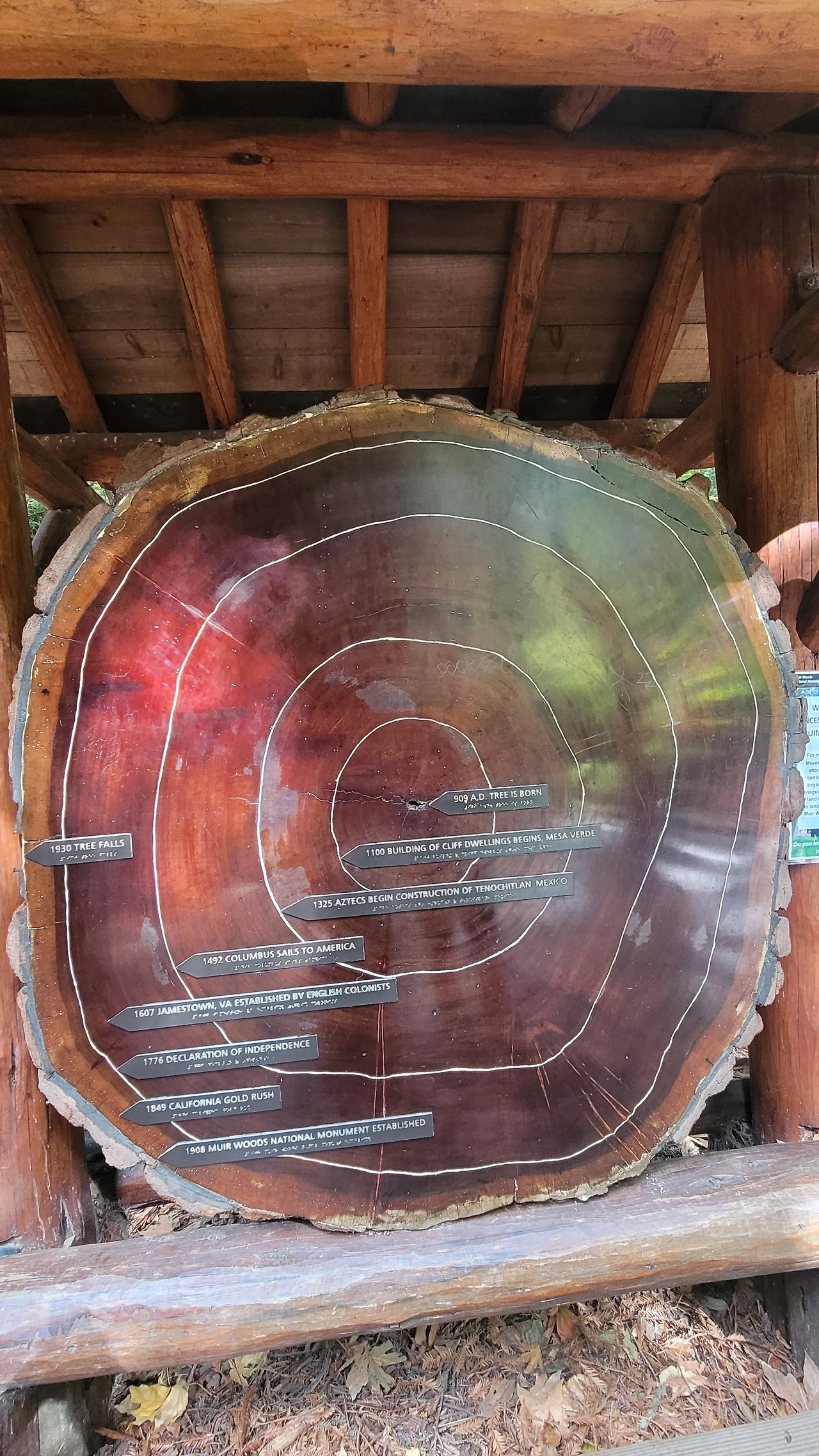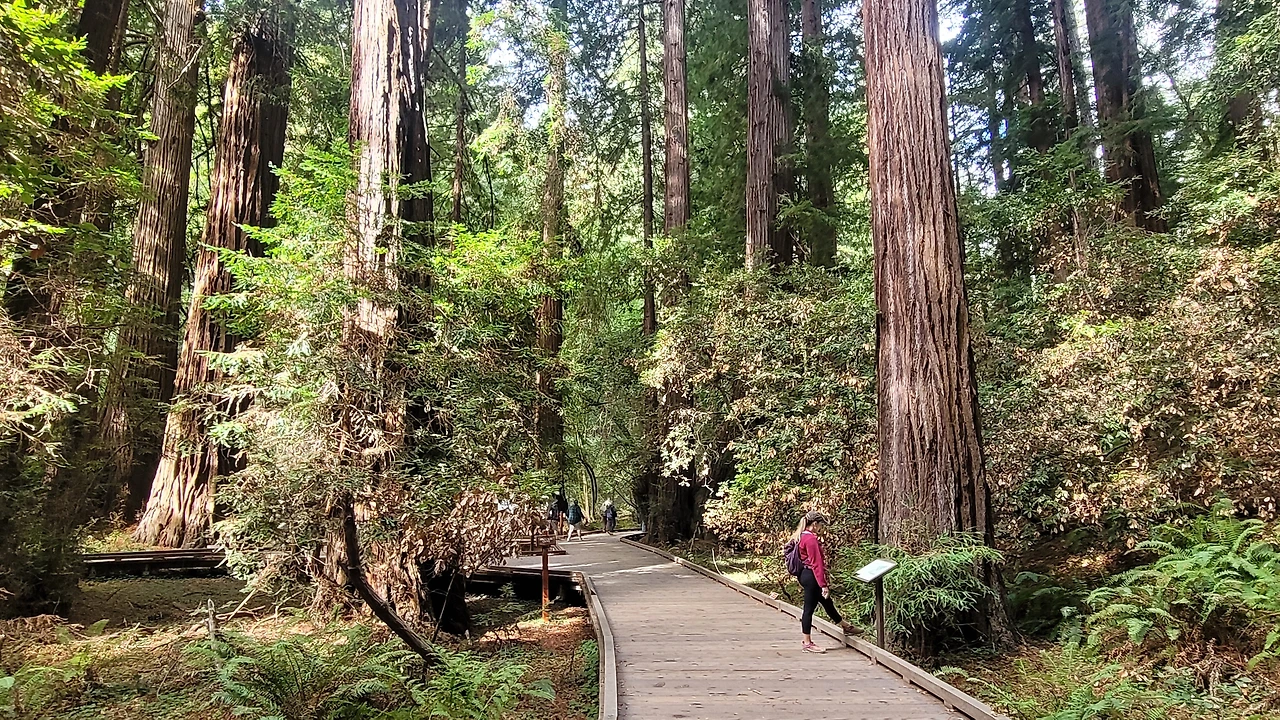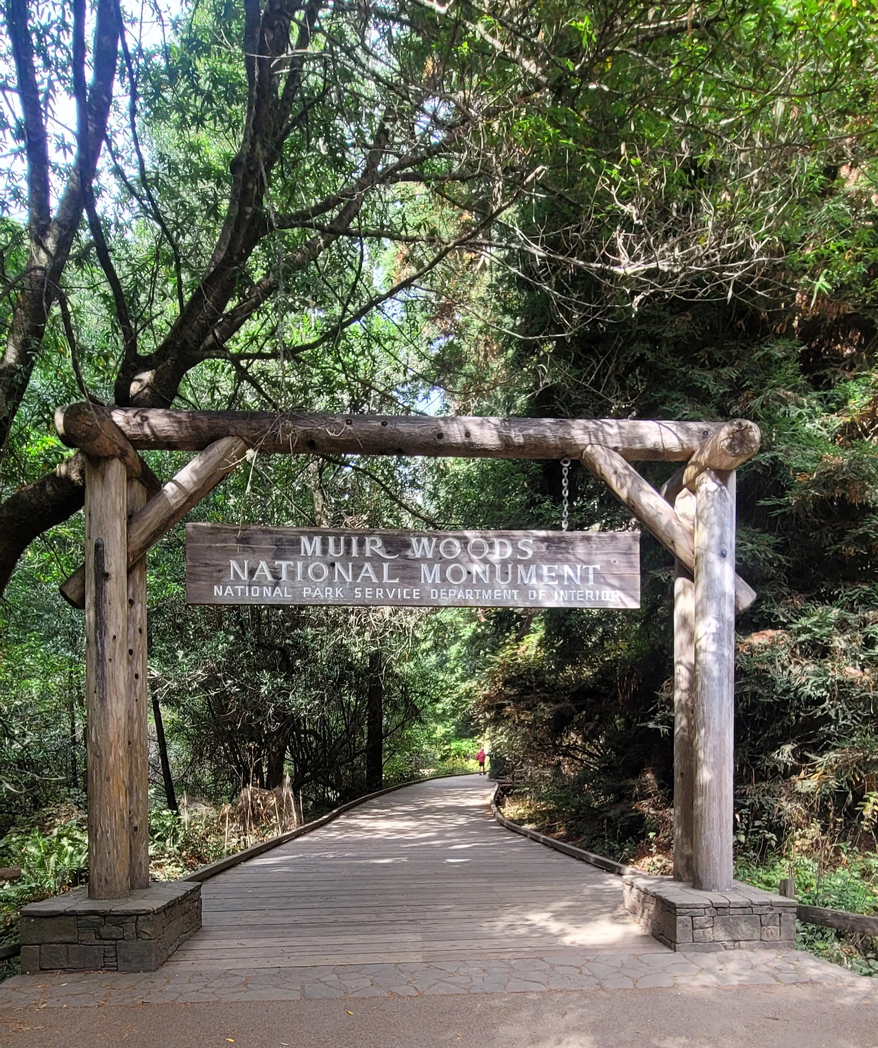 레드우즈 국립공원을 가고 싶었지만 너무 멀었다. 그곳은 가기 힘들어서 대신 레드우즈를 볼 수 있는 샌프란시스코에서 가까운 Muir Woods National Monument를 찾았다. 이곳에 정착하는 이들은 골드러시에 이어 또 다른 금을 발견했다. 요새, 주택 및 기타 구조물에 쓰이는 목재로써 더할 나위 없이 좋은 목재가 레드우즈다. 1,900년 초에 대부분 벌목되었지만 이 협곡은 사유지라 보호가 되었다. 이곳의 거목들은 대부분 수령이 600년에서 800년 사이로 1000년이 넘은 나무도 있다. 이곳의 역사는 1908년에 Willam and Elizabeth Kent가 작고 오래된 레드우즈 숲을 대중들을 위해 기부했고 루스벨트 대통령이 국립기념물 지역으로 선포함으로 Muir Woods National Monument가 탄생했다.