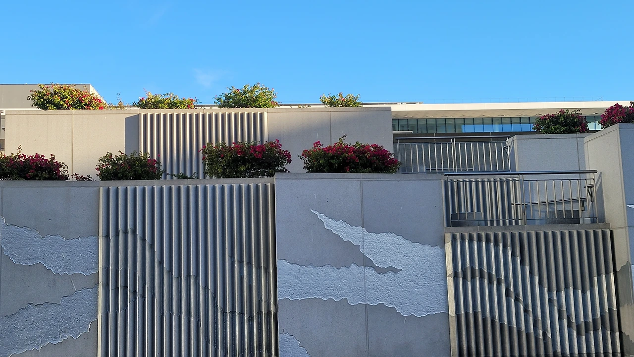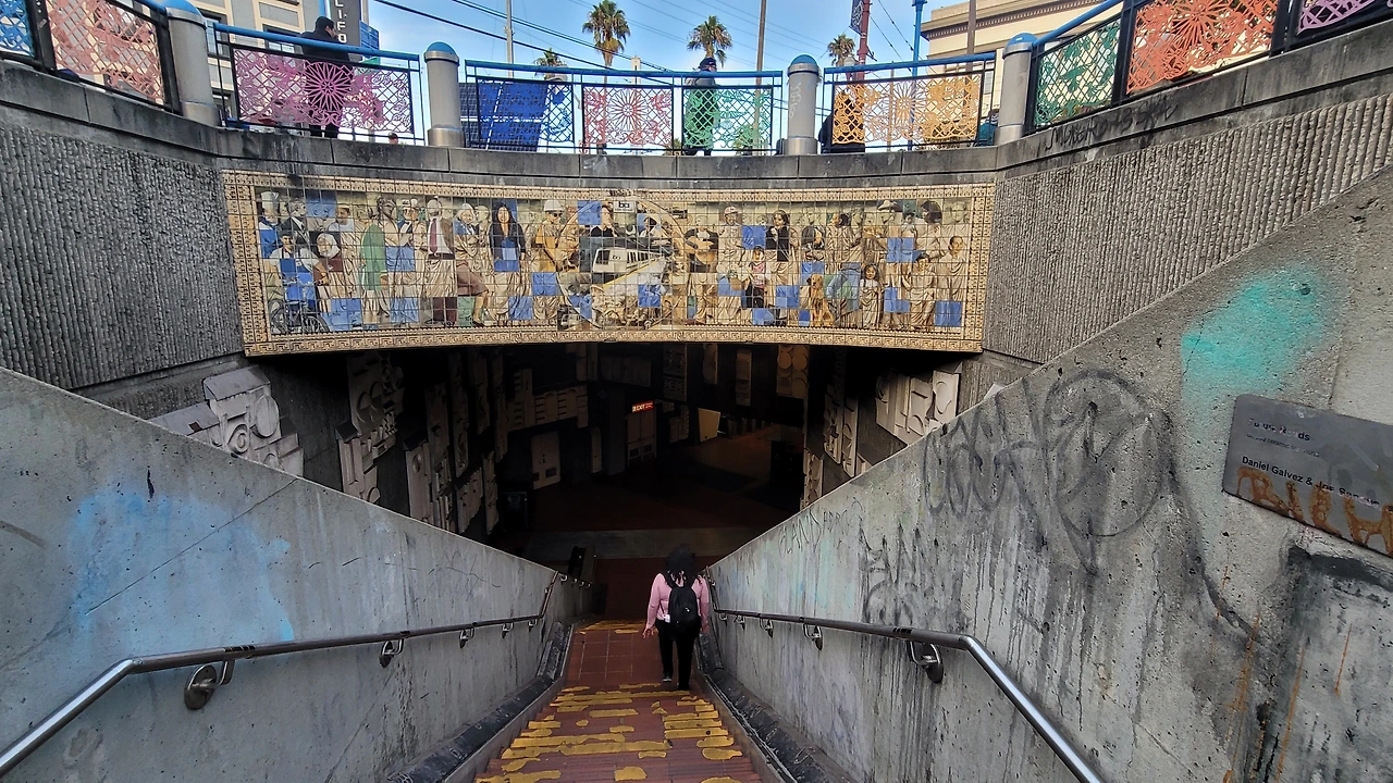 누이들과 함께 한 미국여행의 막바지다. 누이들은 그간 미루어둔 쇼핑을 하기로 했고 나는 홀가분하게 샌프란시스코도심을 돌아보기로 했다. 미국에 와서 대중교통을 처음으로 이용하게 되었다. Hayward 전철역까지 누나가 차로 데려다주었고 이후는 알아서 가야 했다. 전철역은 한가했고 건너편에 멋진 조형물이 있었다. 입구에 꽃이 피어 반가웠다.
