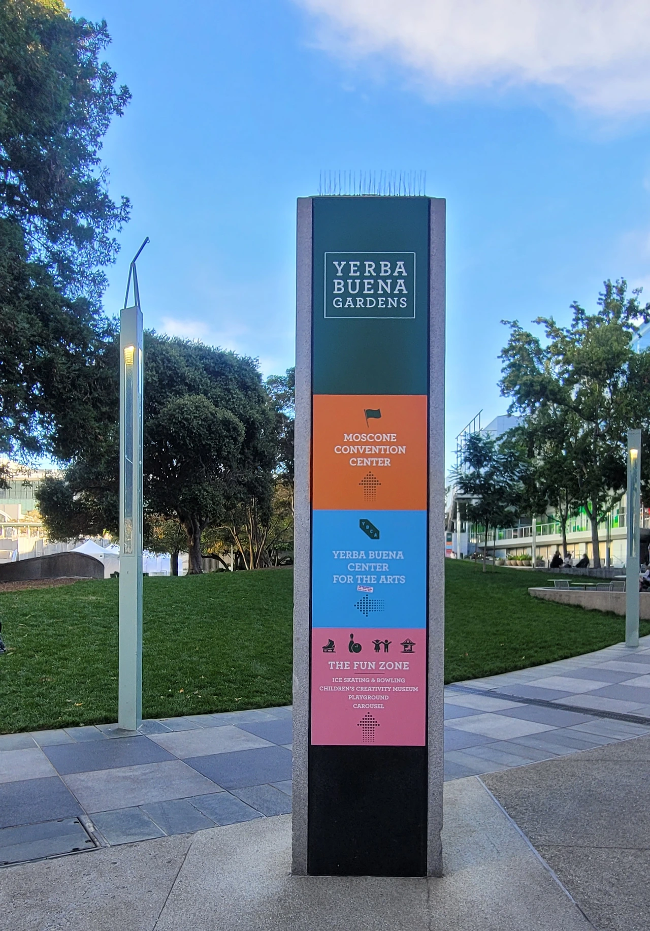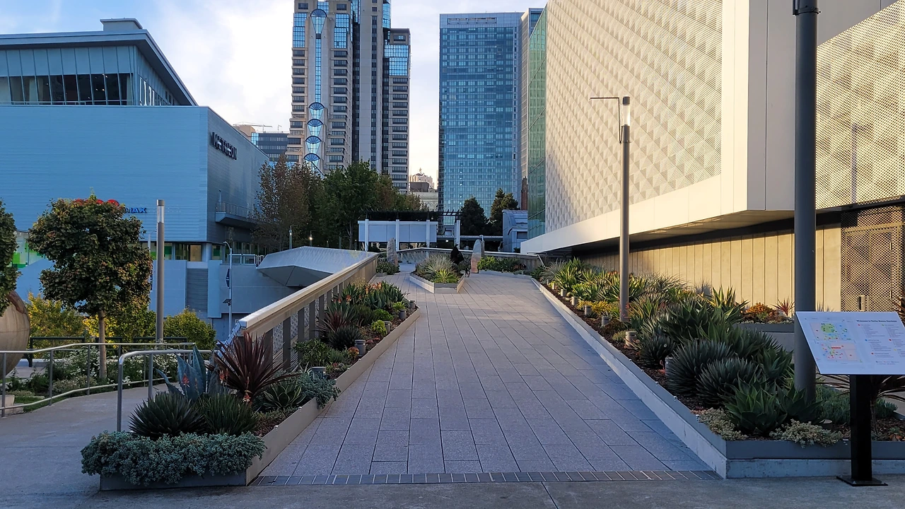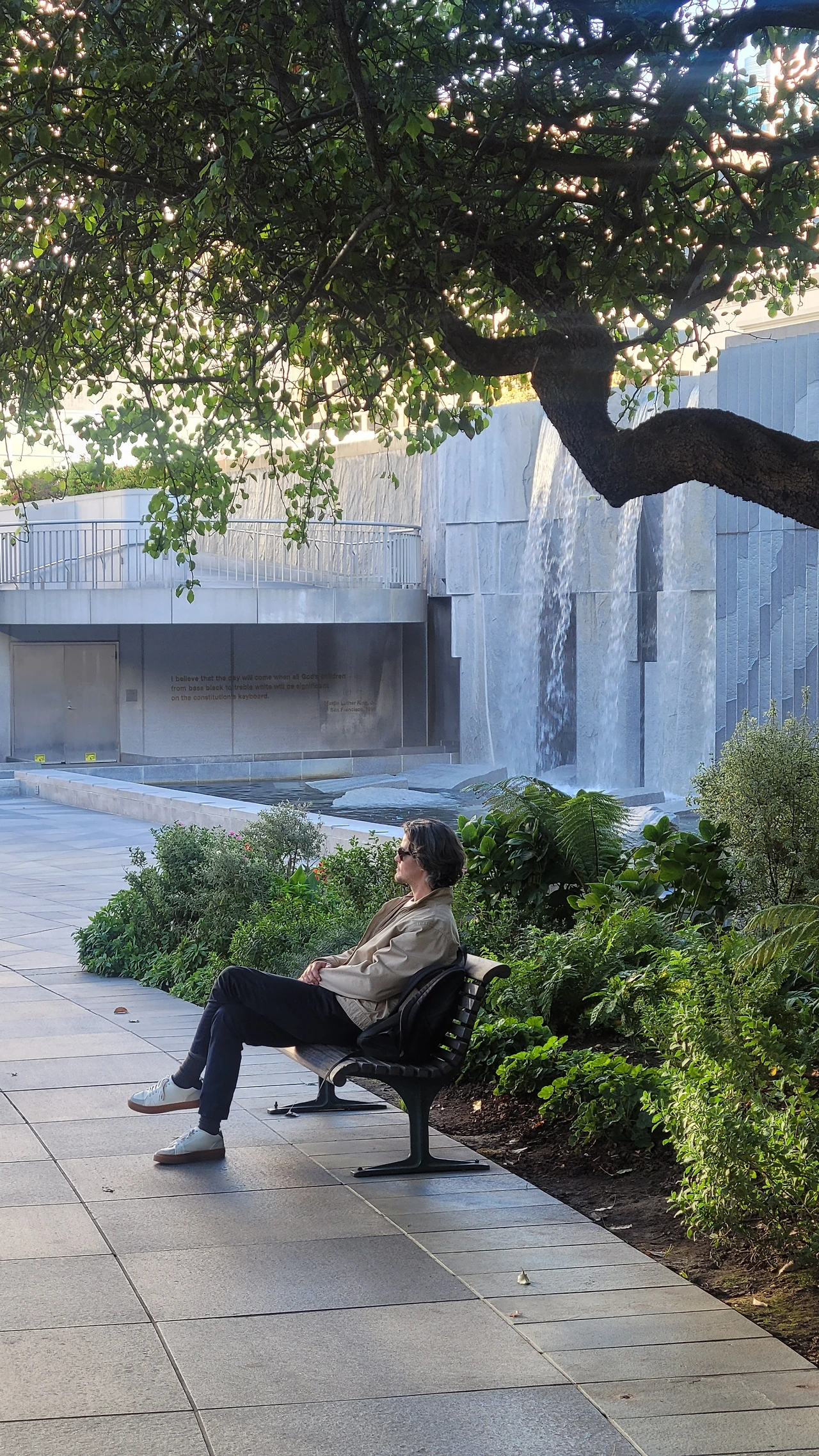 샌프란시스코의 옛 이름이기도 한 Yerba Buena는 좋은 풀이라는 의미를 가진 스페인어다. 단순한 공원인 줄 알았는데 이곳은 예술 관련 복합 광장이었다. 특히 이곳은 흑인 인권운동가인 마틴 루터 킹 목사의 많은 기념관 중 3번째로 큰 곳으로 알려진 마틴루터킹 폭포가 있었다.