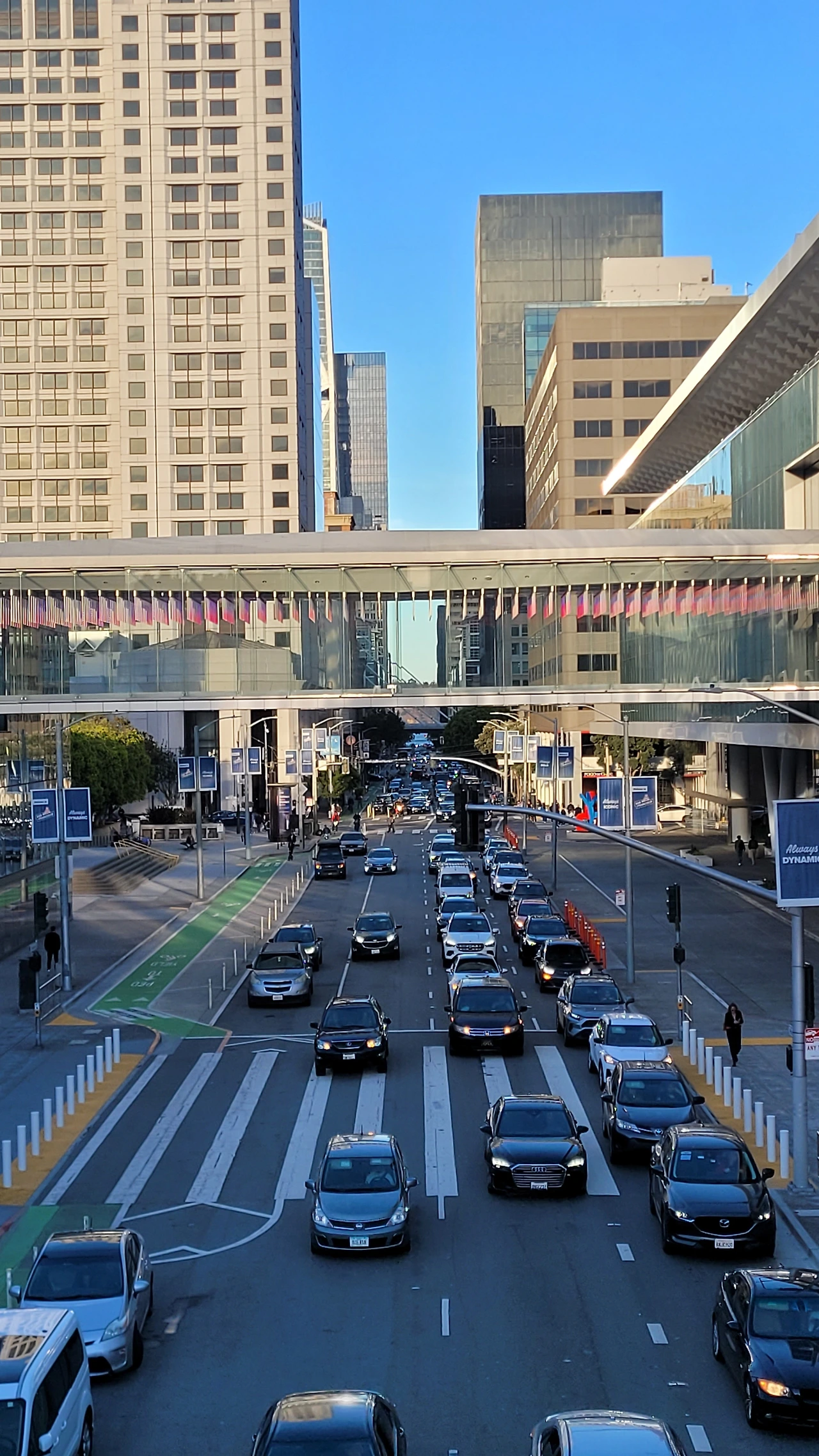 다리 위에서 바라보이는 샌프란시스코 도심이다. 퇴근 시간이 가까운 탓인지 차들이 길게 줄지어 서있다. 미국 도심에서는 운전하기가 쉽지 않았다. 신호등은 많지 않은데 교차로마다 Stop 표지판이 서 있고 반드시 3초 정차룰이 있다. 들어온 순서대로 이동해야 하는데 이 점이 생각보다 만만치 않았다.