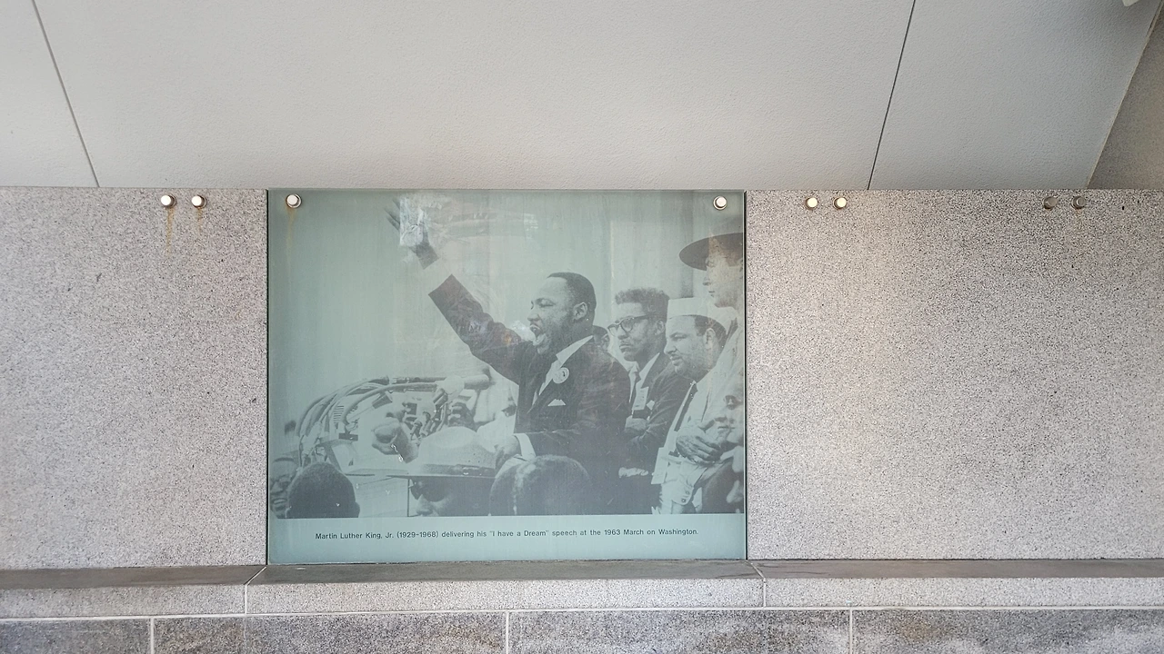 성경을 인용하여 정의와 공의가 물처럼 거대한 강물처럼 흐르기까지 결코 만족하지 않을 것이라는 문구다.