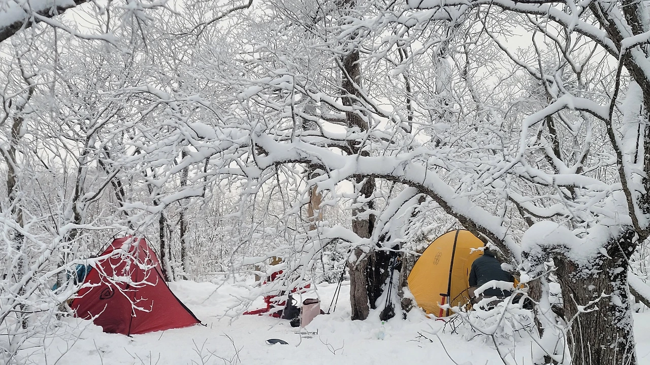 무채색의 숲 속에 붉고 노란 텐트가 유독 눈에 들어온다. 한겨울 야외의 눈 속에서 숙박을 하는 이들이다. 누구나 쉽게 따라 할 수 없는 그들의 패기가 부럽다. 극한의 자연의 품에 안겨 춥고 길고 어두운 밤을 지내는 일은 아주 특별하고 기억에 남는 멋진 추억이 될 것은 틀림이 없다.