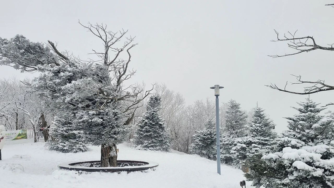 용평으로 여행을 와서 스키의 짜릿함은 누릴 수 없었지만 눈이 선사하는 즐거움을 충분히 만끽하는 시간이었다.해발 1,458미터 높이의 발왕산 정상에 올라 만개한 눈꽃 세상을 만난 것이다.