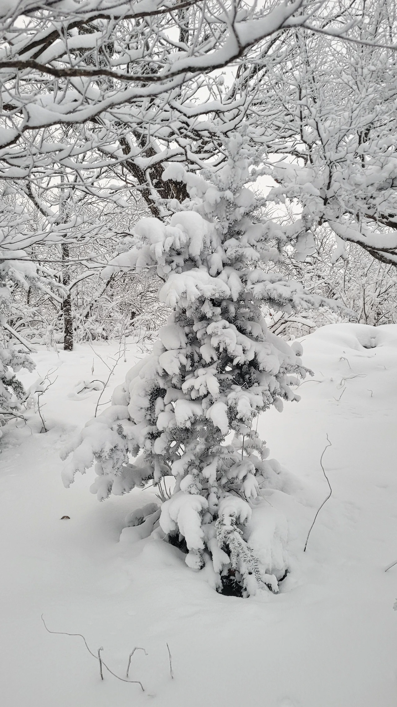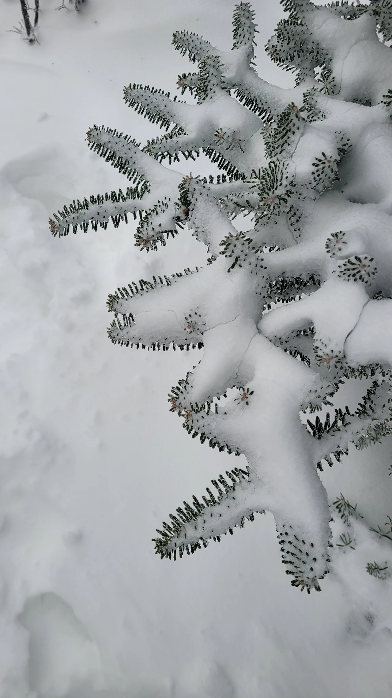 내려가는 길이 마치 미지의 세계로 들어가는 입구 같다. 하산길에 만난 당당하게 서있는 주목 한 그루가 돌아가는 길을 배웅한다. 우직하고 당당한 모습이 듬직하다. 눈을 마치 두꺼운 솜이불을 덮고 있는 듯 귀여운 어린 주목은 함께 놀자고 손 벌리는 개구쟁이 같다.