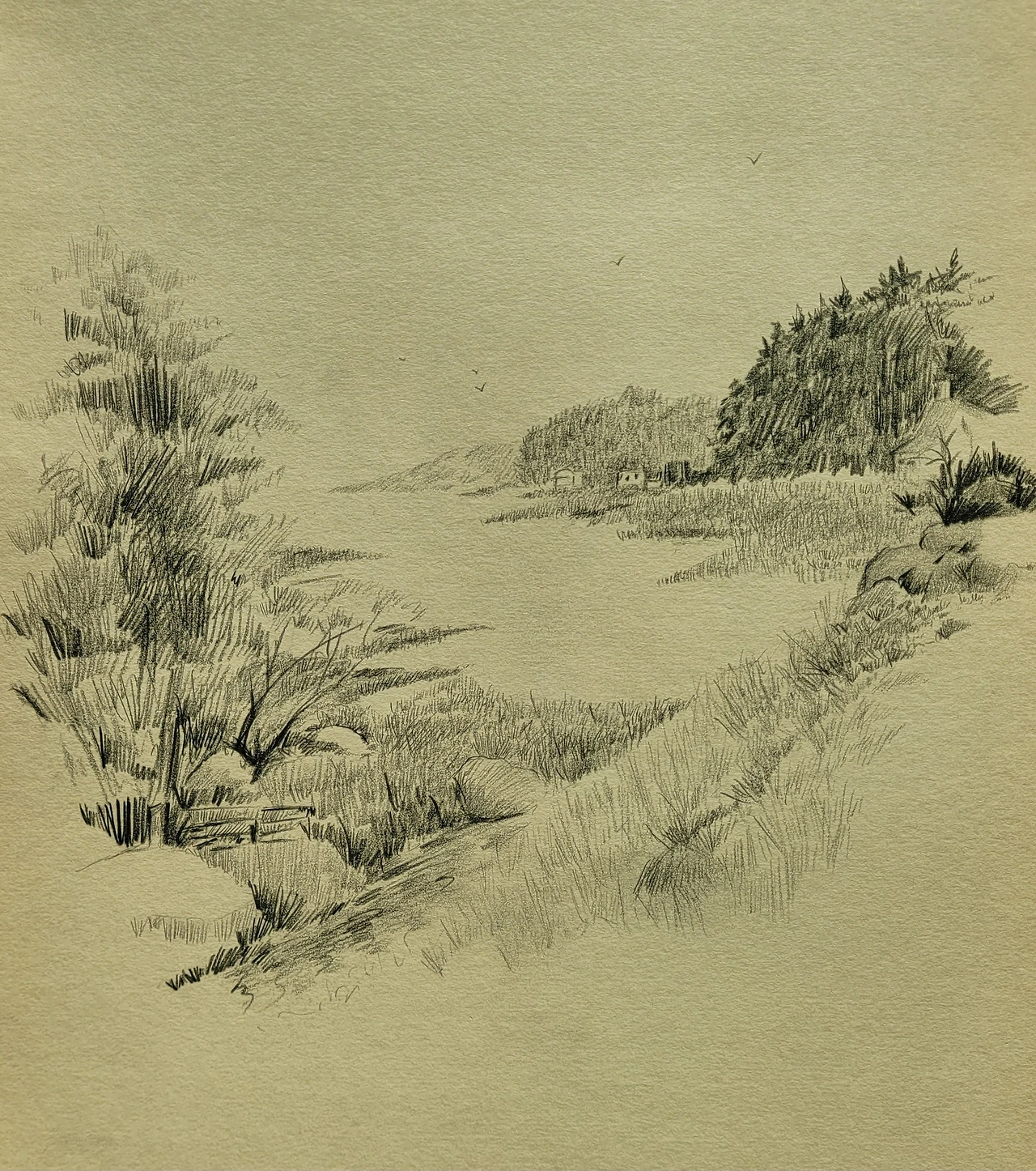 그림자를 그릴 때 가장 공을 들인다. 진하게 그려야 하기 때문이다. 동료들이 그린 그림을 보니 선이 투박하여 그림의 맛이 덜 나는 것 같다. 그림에도 정성이 필요하다. 세심하게 선을 쓸수록 부드러운 음영이 깊이 있게 보인다.