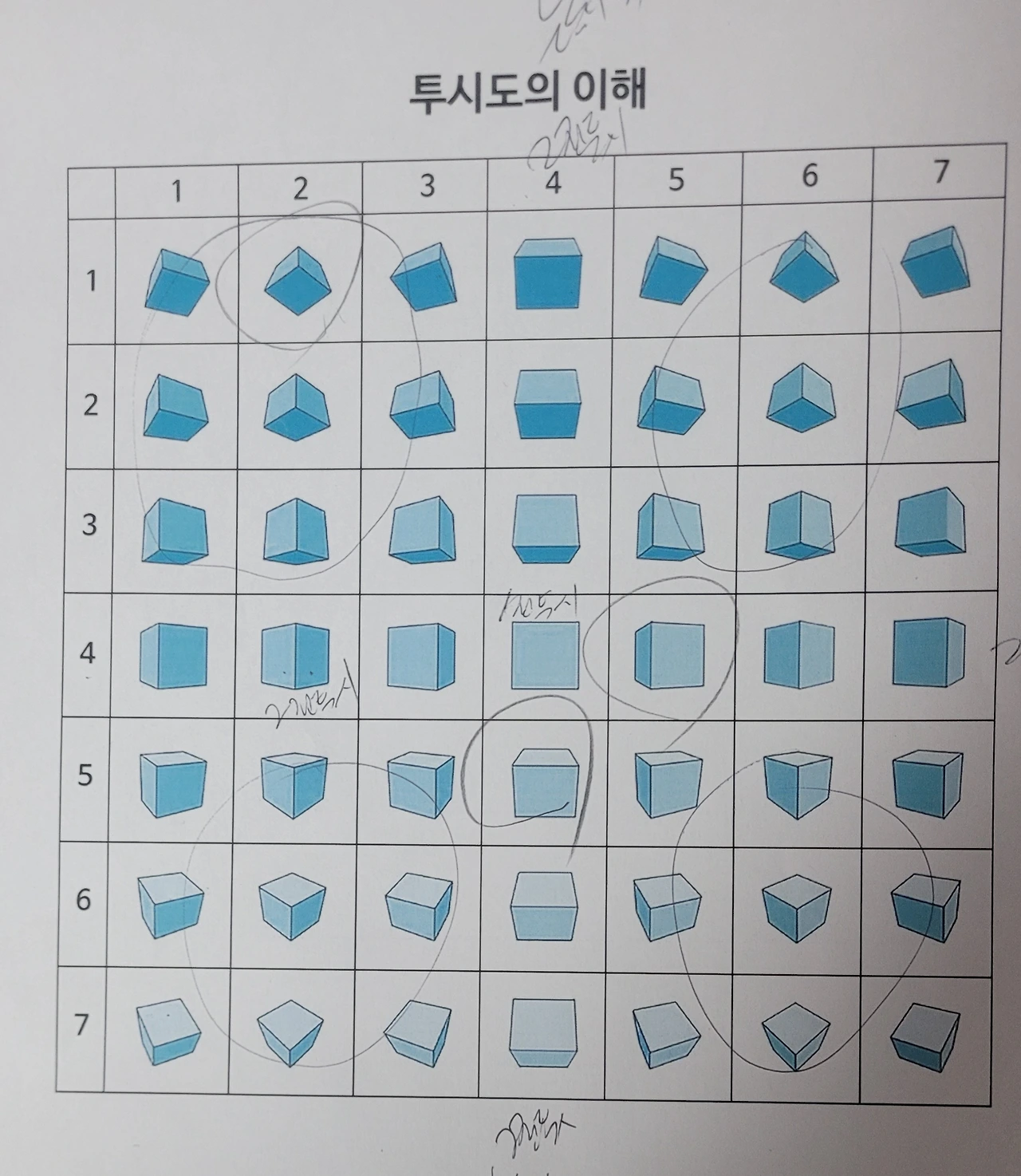 수업이 끝나고 맥이 다 빠졌다. 실망이 되긴 했지만 차차 나아질 것으로 기대해 본다. 수업 후 겸허한 마음으로 선긋기 연습을 했다. 기본을 다지는 것이 필요해졌다. 투시도 그리는 연습을 했는데 딸이 보자마자 틀렸다고 한다. 소실점이 없단다. 전문가의 눈은 다르다.