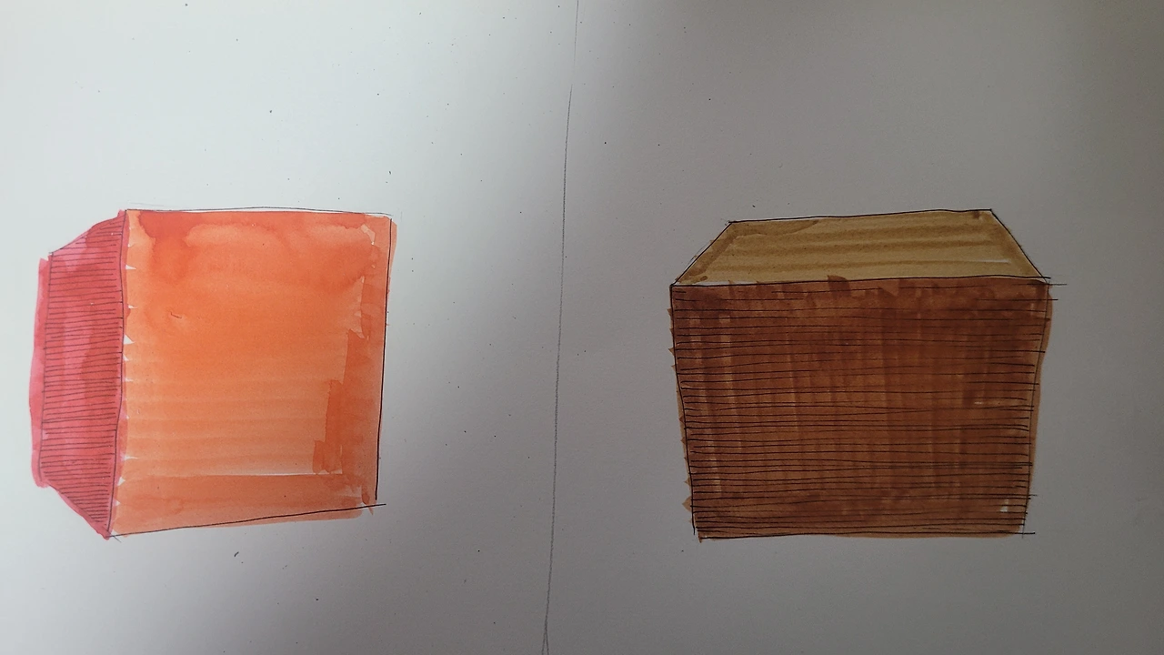 그간 시립대 스케치 과정을 두 달 남짓 받은 덕분으로 수업을 잘 따라왔다. 선긋기부터 음영 연습까지는 수월했다. 덕분에 자신감도 넘쳤다. 그런데 4주 차 수업에서 그 치솟았던 자신감이 꺾였다. 투시도를 그리는 시간에 선도 삐뚤빼뚤 엉망이고 물감 색칠은 더 했다. 마치 초등학생이 그린 그림 같다. 처음 수채 물감을 사용하는 데 쉽지 않다. 물감을 붓에 개어 팔레트에 농도를 맞추고 칠하는데 얼룩덜룩 초보티가 팍팍 난다. 겸손이 저절로 내게 찾아든다.