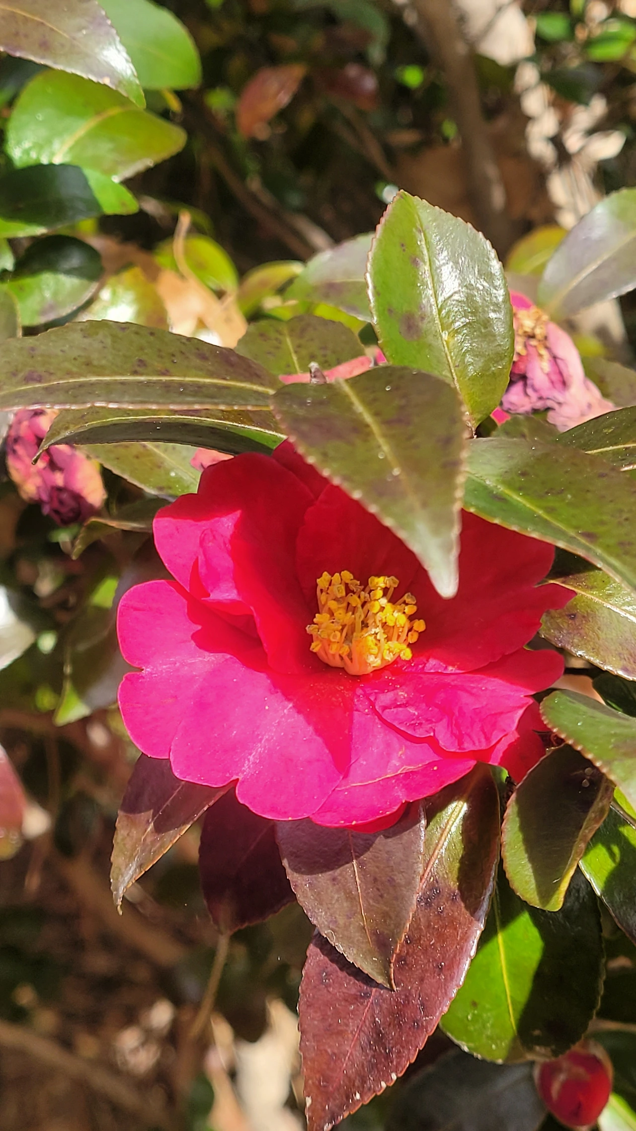 먼 곳에 빼앗긴 시선을 거두고 주위를 살핀다. 초록이 반짝이는 동백나무 군락에 새초롬하게 핀 꽃이 나를 부른다. 선명한 붉은색이 강렬하다. 고난을 지나온 승리의 당당한 외침이다. 지금은 겨울이지만 봄을 막을 수 없다는 확고한 선언이다.