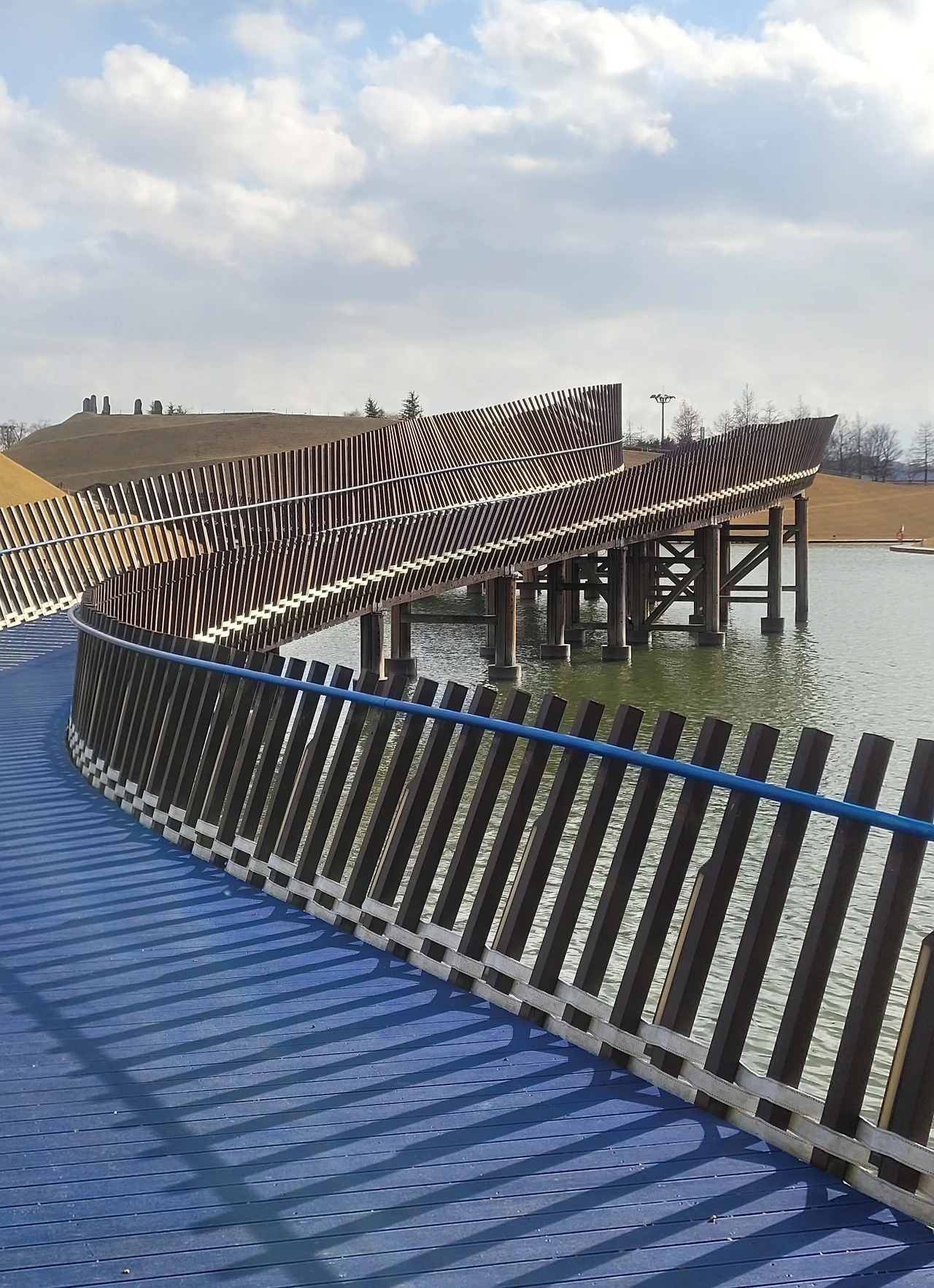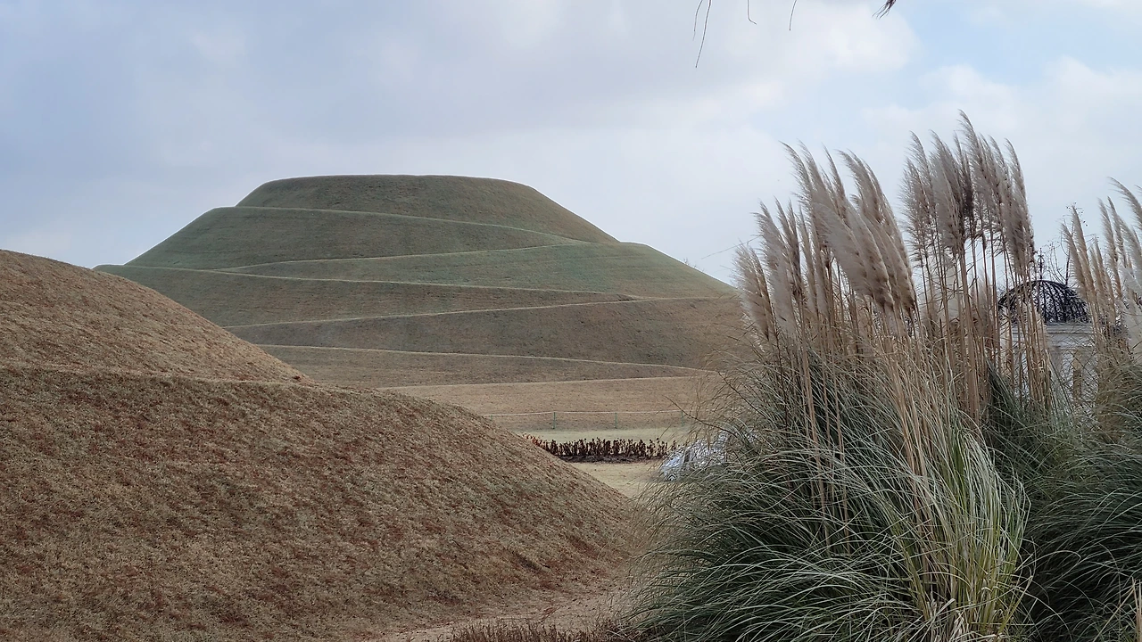 순천만 정원의 가장 아름다운 곳은 봉화언덕이다. 왕릉을 닮은 높은 언덕이 뛰어난 조형미를 선보인다. 둥근 선과 사선의 기하학적인 선이 매력적이다. 둥근 봉분을 닮은 언덕도 사랑스럽다.